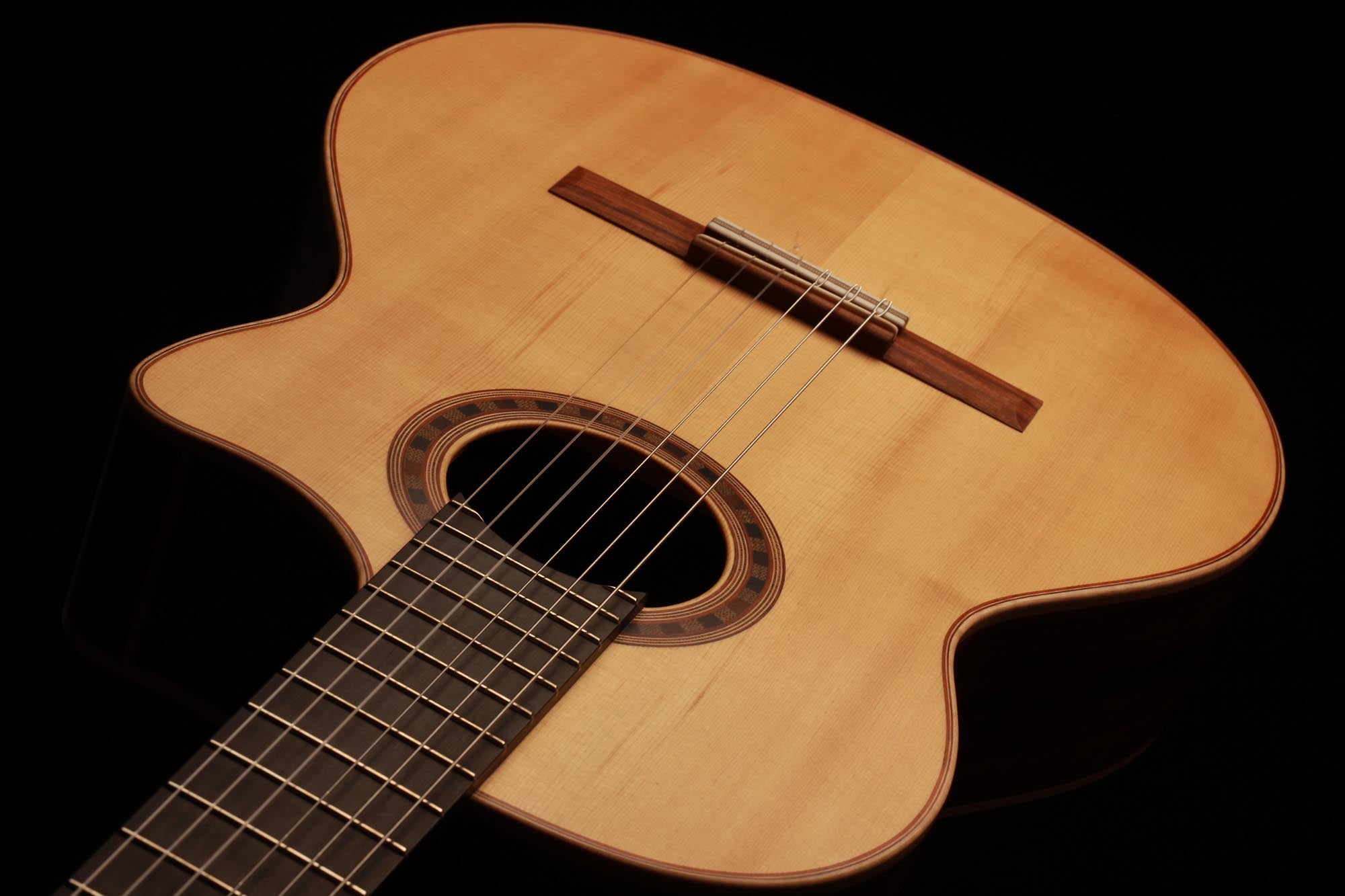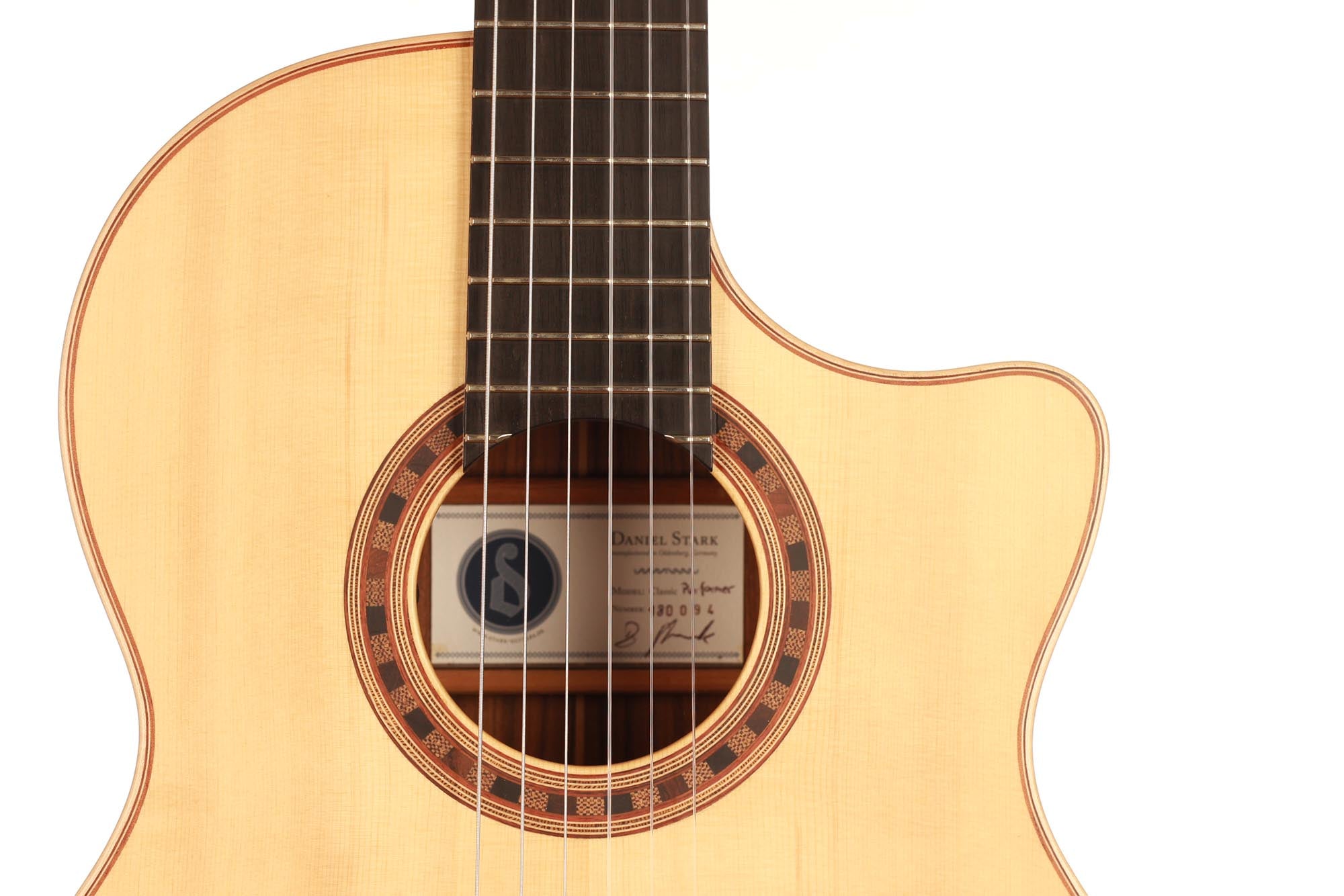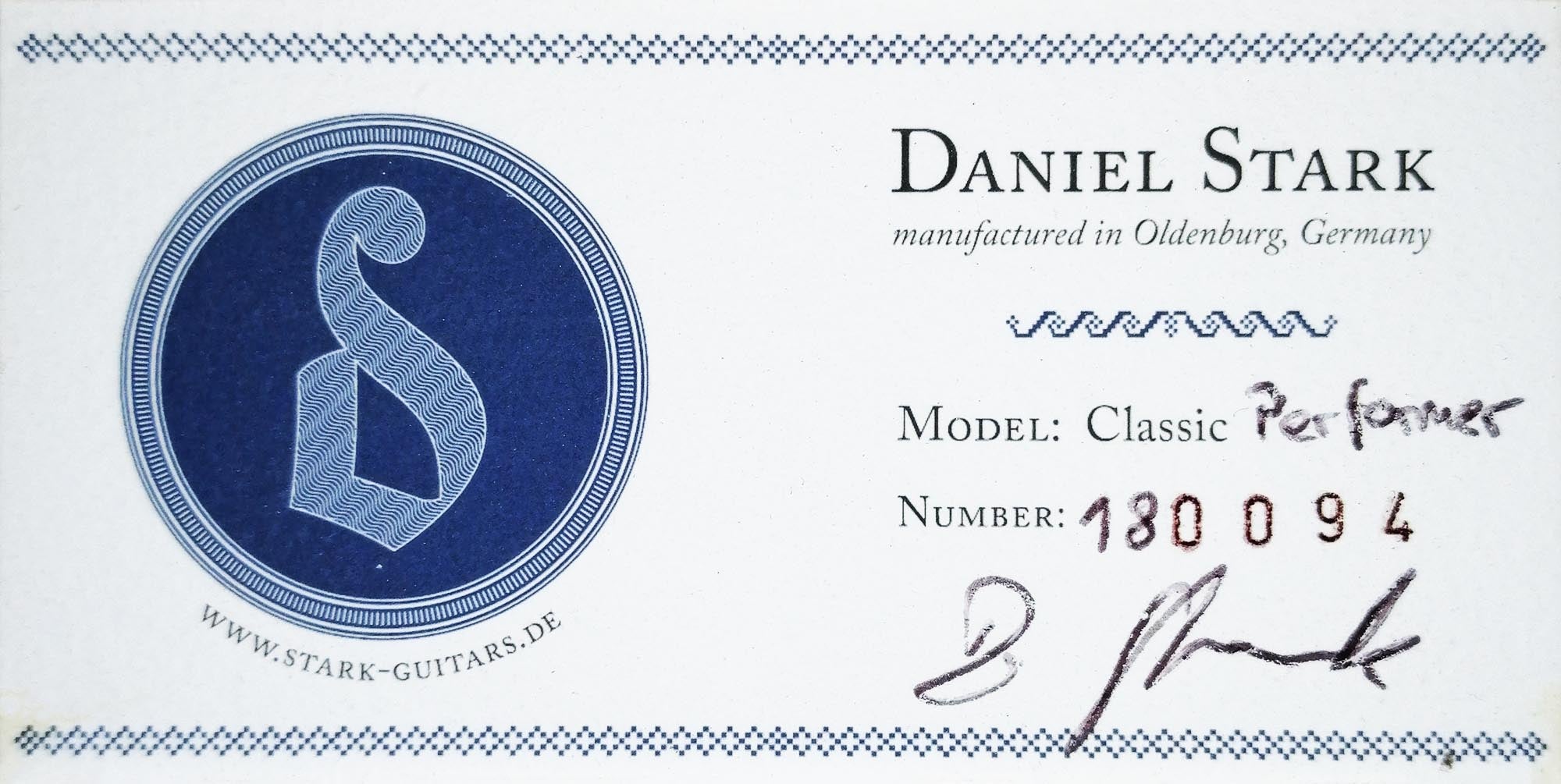 Daniel Stark is a German guitar maker who is known for his modern guitars. His instruments are played all over the world and have been recorded on more than 25 CDs. They are very powerful and refined guitars.