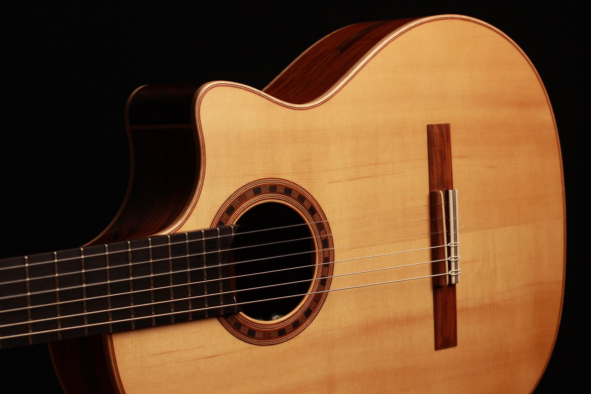This "Performer" fusion model is ideal for various music styles with or without amplification. The guitar has a slightly thinner neck than traditional classical models, which makes it possible to play chords with the thumb. The 64 cm scale increases the playing comfort of this all-round guitar.