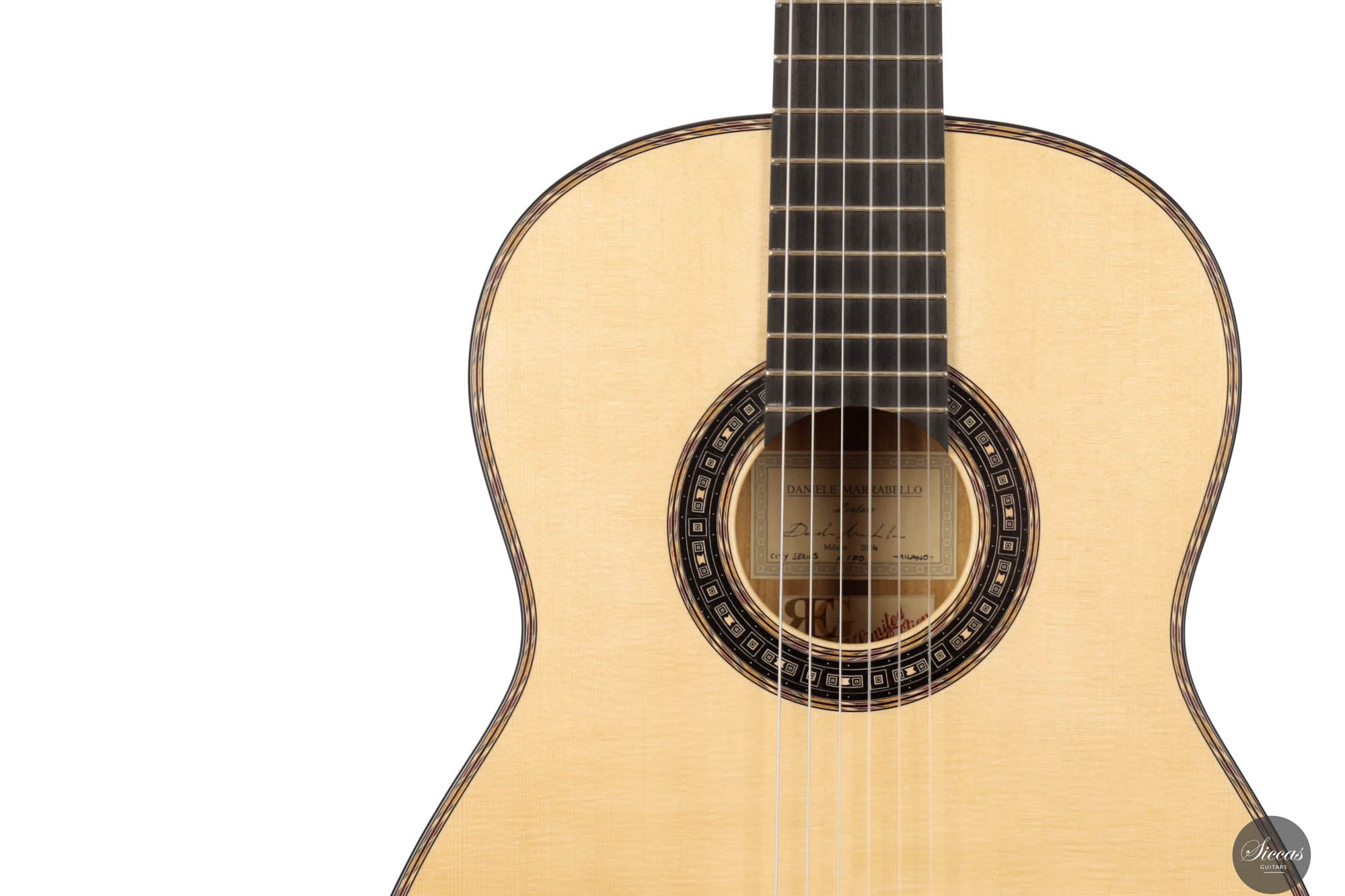 Daniele Marrabello is one of the most sought-after Italian luthiers. After his guitar-making studies at the Civica Scuola di Liuteria in Milan, he became Enrico Bottelli’s pupil and deepened his woodworking skills, aesthetical identity, and sound personality under the guidance of the esteemed maestro. Daniele Marrabello opened his personal workshop in Vimodrone, on the outskirts of Milan, in 2012.