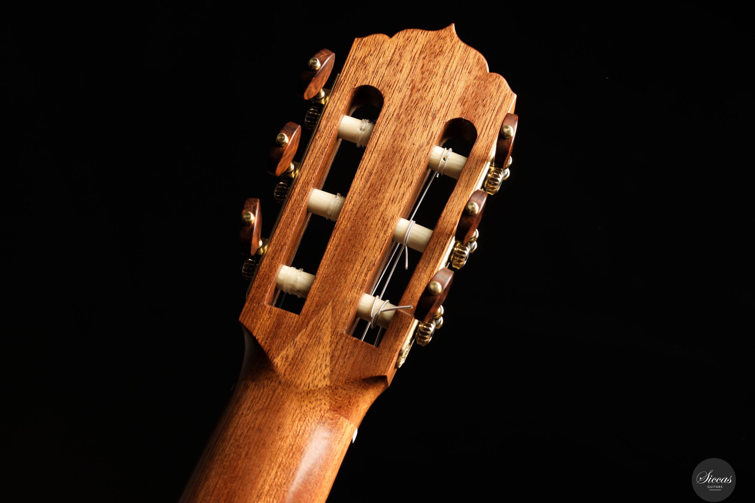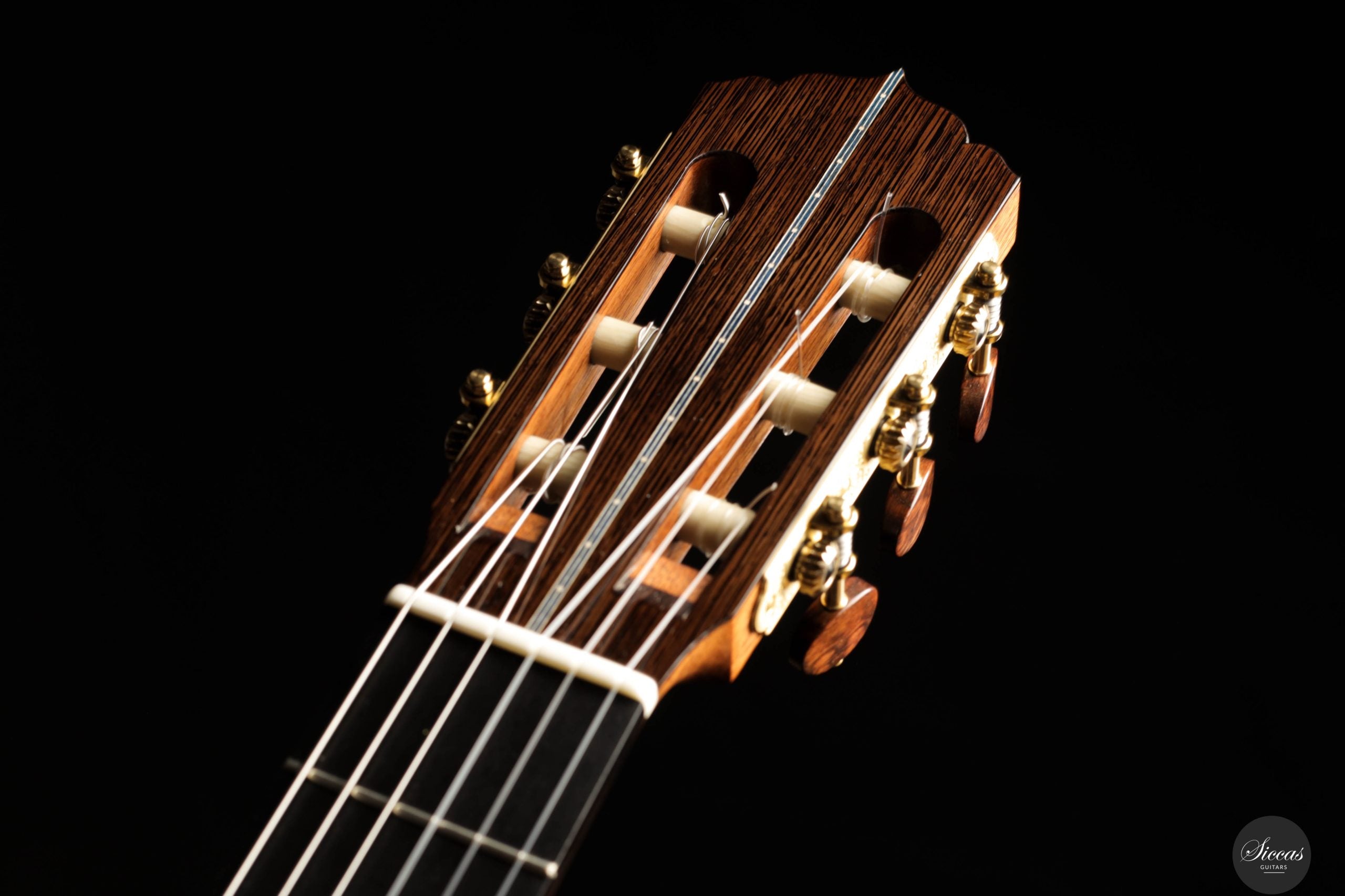 It delivers crystal-clear trebles with balanced, focused basses, providing a sound that is both refined and powerful. The choice of wengé for the back and sides significantly enhances the projection and overall volume of the instrument, giving it the strength and presence required for concert performance. This guitar responds beautifully to polyphonic repertoire, allowing complex musical textures to be articulated with clarity and depth. In addition, it offers a remarkably organic timbre that feels natural and pleasing to the ear.
