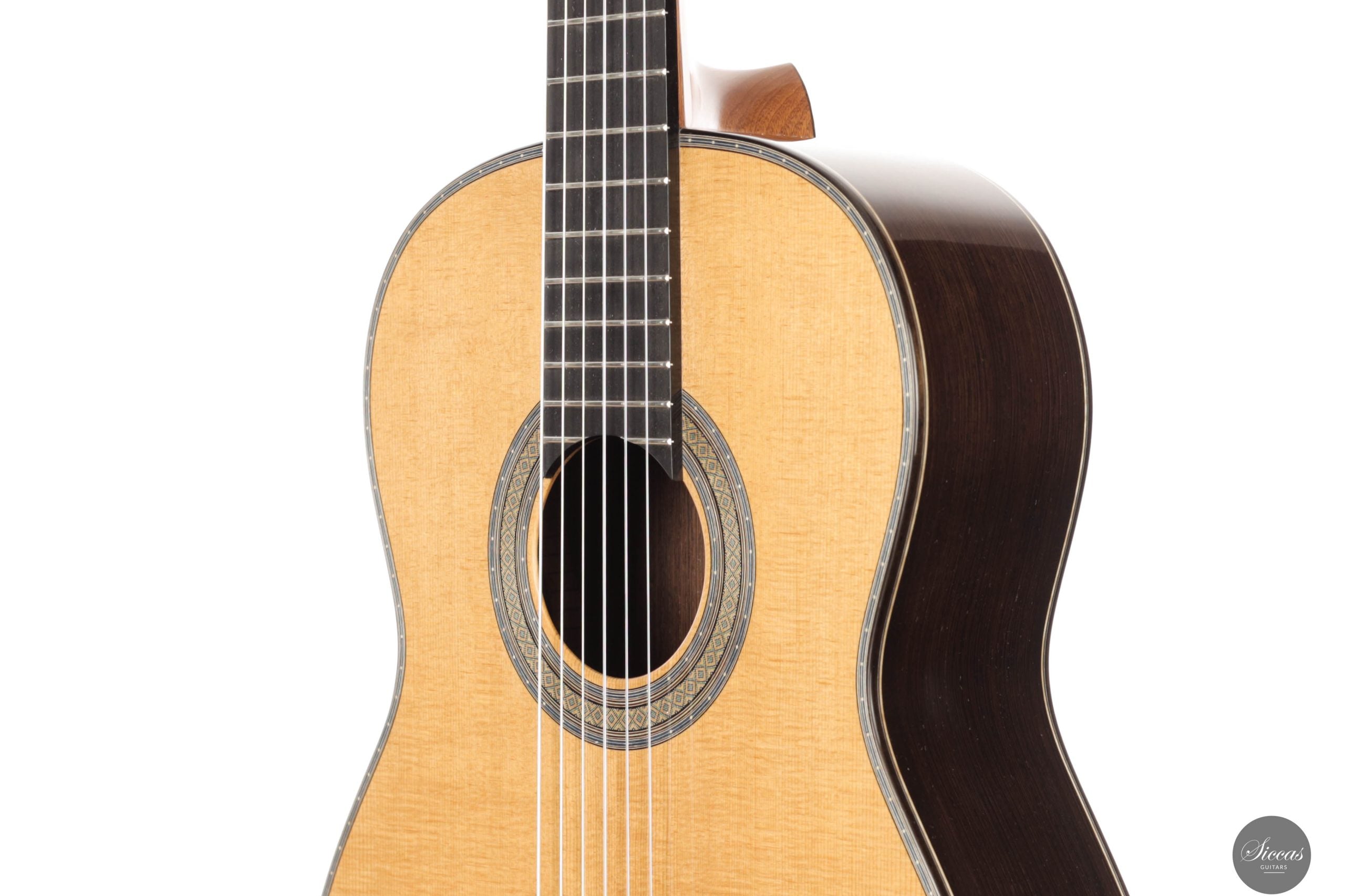 The classical guitar, with its soft nylon strings and characteristic timbre, has become a symbol of chamber music, Spanish tradition, and concert repertoire. Its modern form was shaped by Antonio de Torres in the 19th century, setting the standard for the body, fan bracing, and the 65-centimeter scale length that are still used today. Instruments in this category open up a rich palette from the refined Romantic miniatures of Tárrega to the majestic concertos of Rodrigo. Here you will find guitars that preserve historical continuity and at the same time inspire new interpretations.