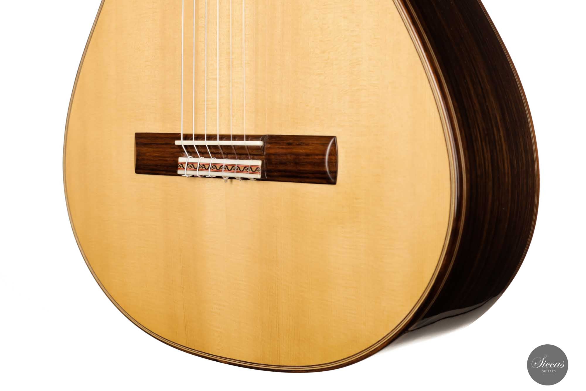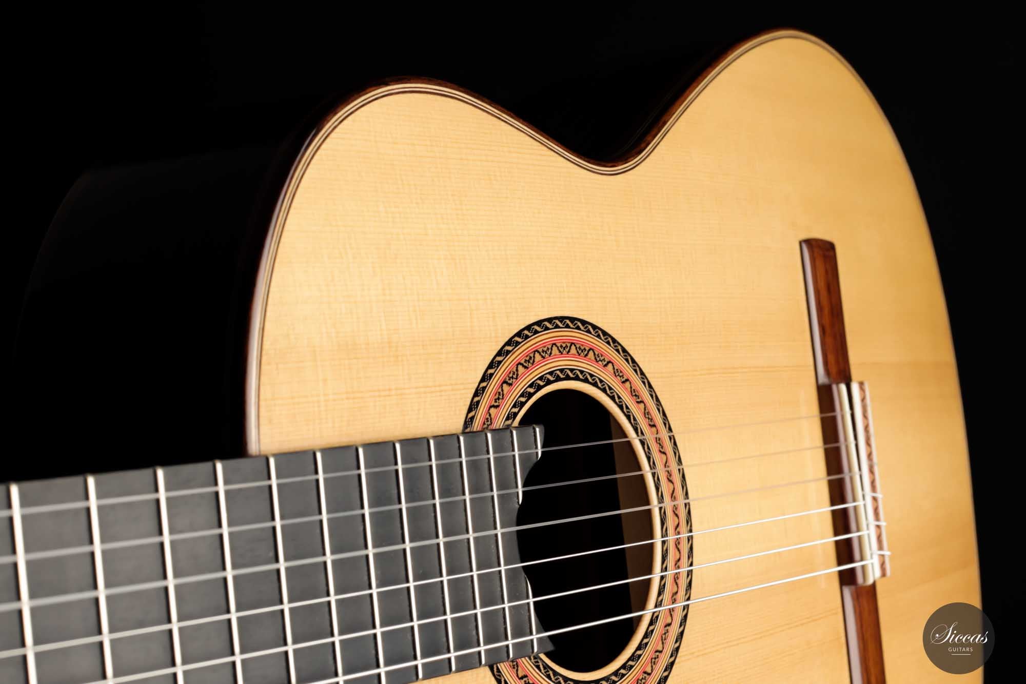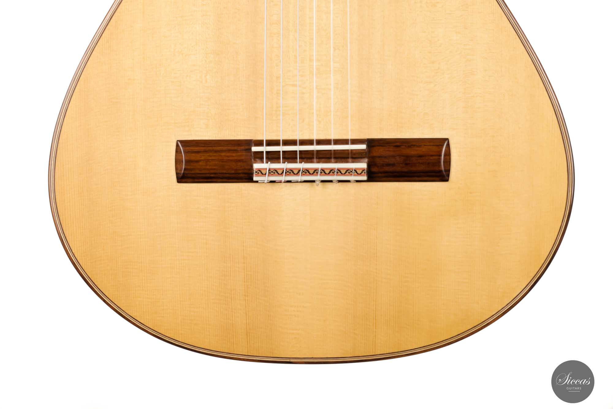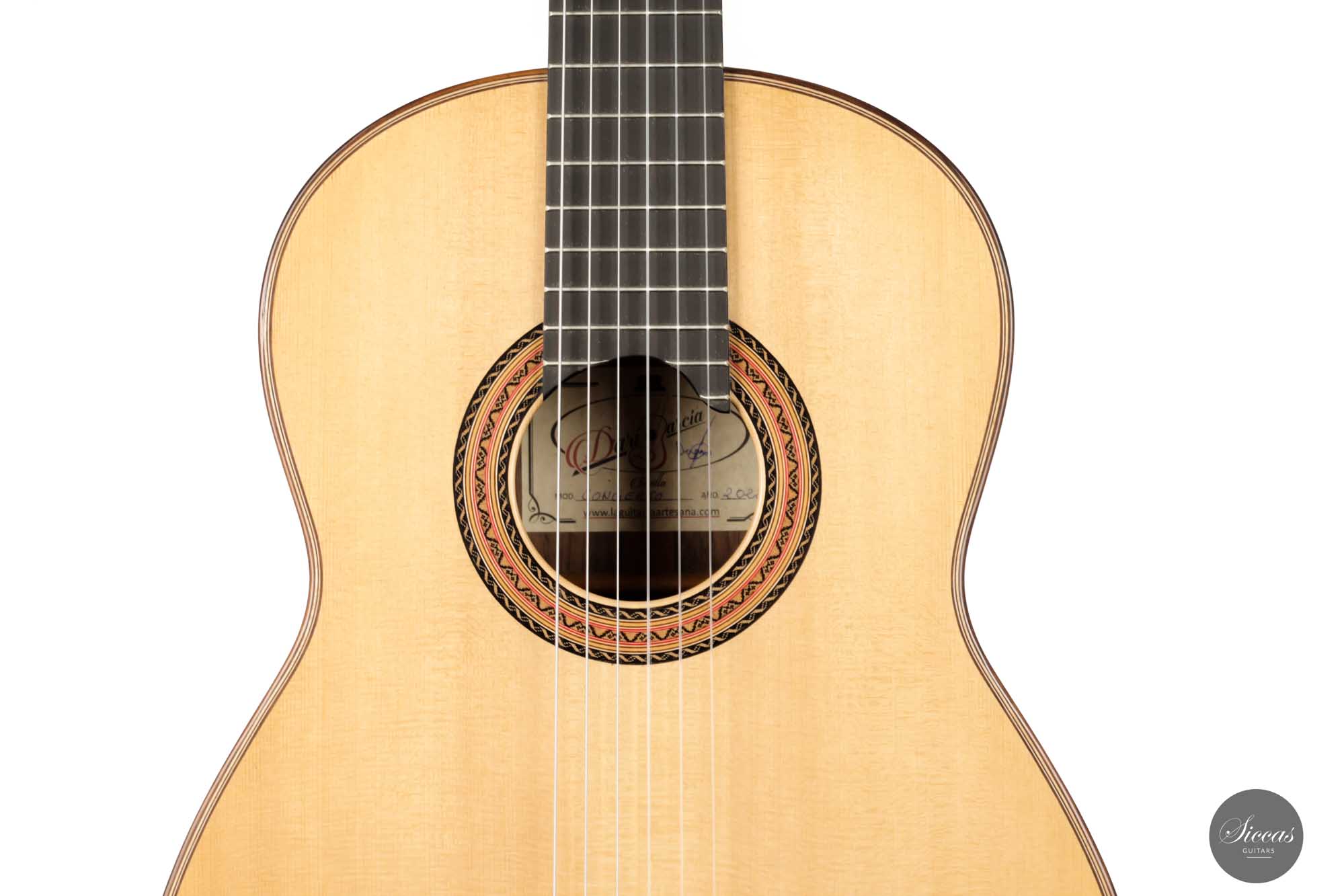 The guitars coming from his workshop all have a classical design that follows the Spanish tradition of the 20th century. Nevertheless, Dario García occasionally integrates modern features such as double sides to improve the projection and bearing capacity of the tone.