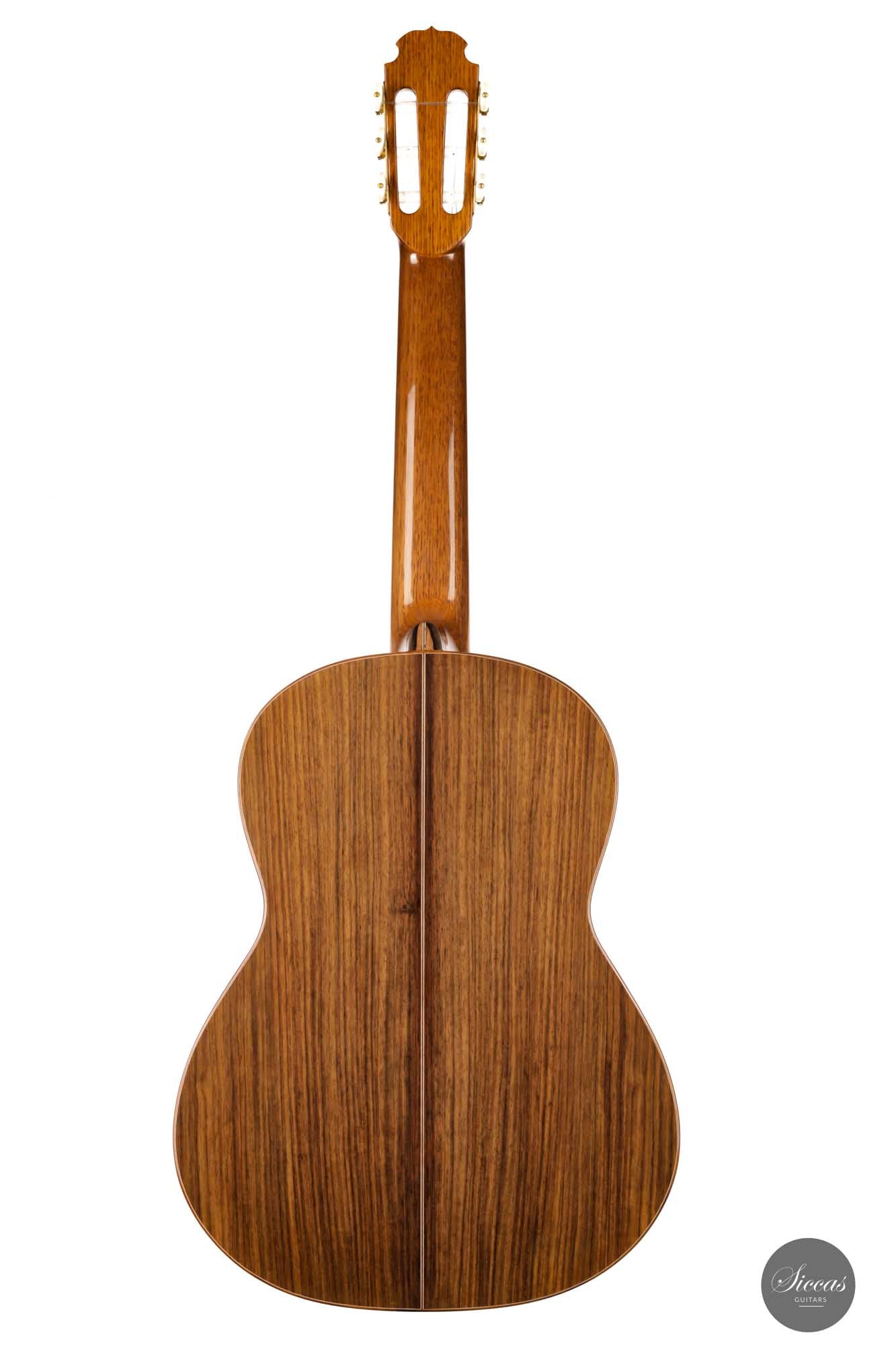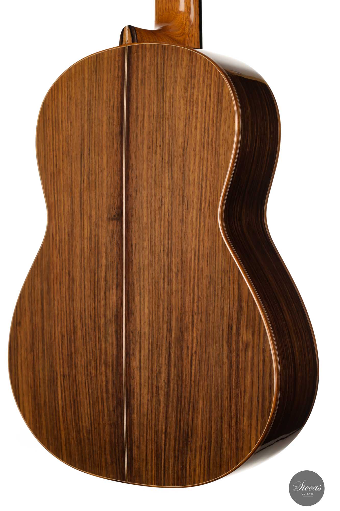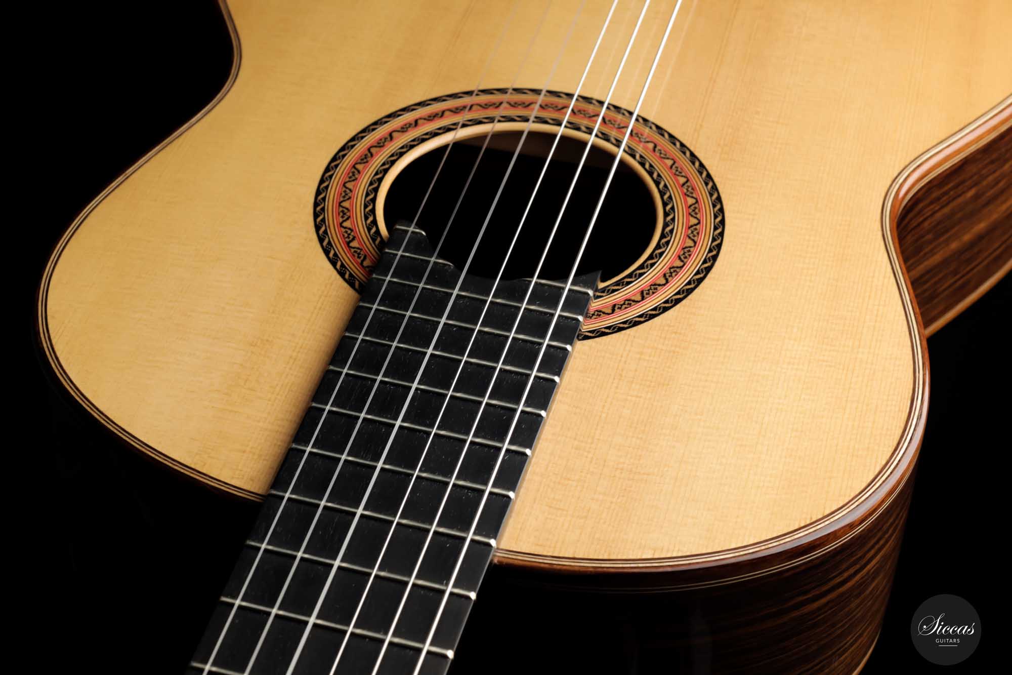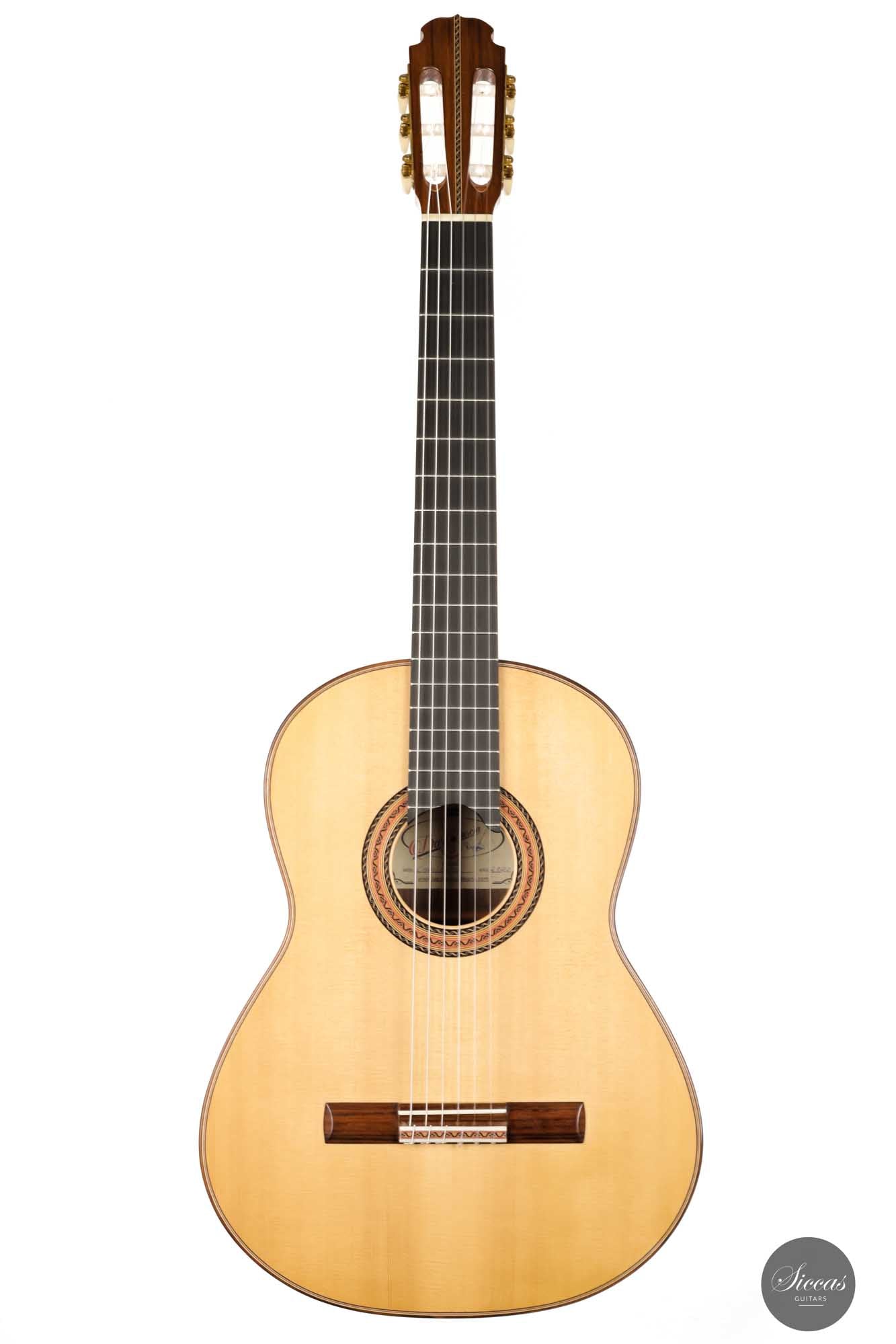 This beautiful modern concert instrument was built following the Spanish tradition yet incorporates modern features, such as double sides construction with a cypress inner layer. As a result, a guitar that has a significant volume and projection, and at the same time, remains faithful to its Spanish roots. The premium spruce soundboard and Indian rosewood back and sides have been chosen with the utmost care. The clear trebles sing lively, while the deep and punchy basses provide a solid sound foundation to this guitar. One will also note this guitar's exceptional playability, making it an instrument whose quality is definitely beyond its price tag.