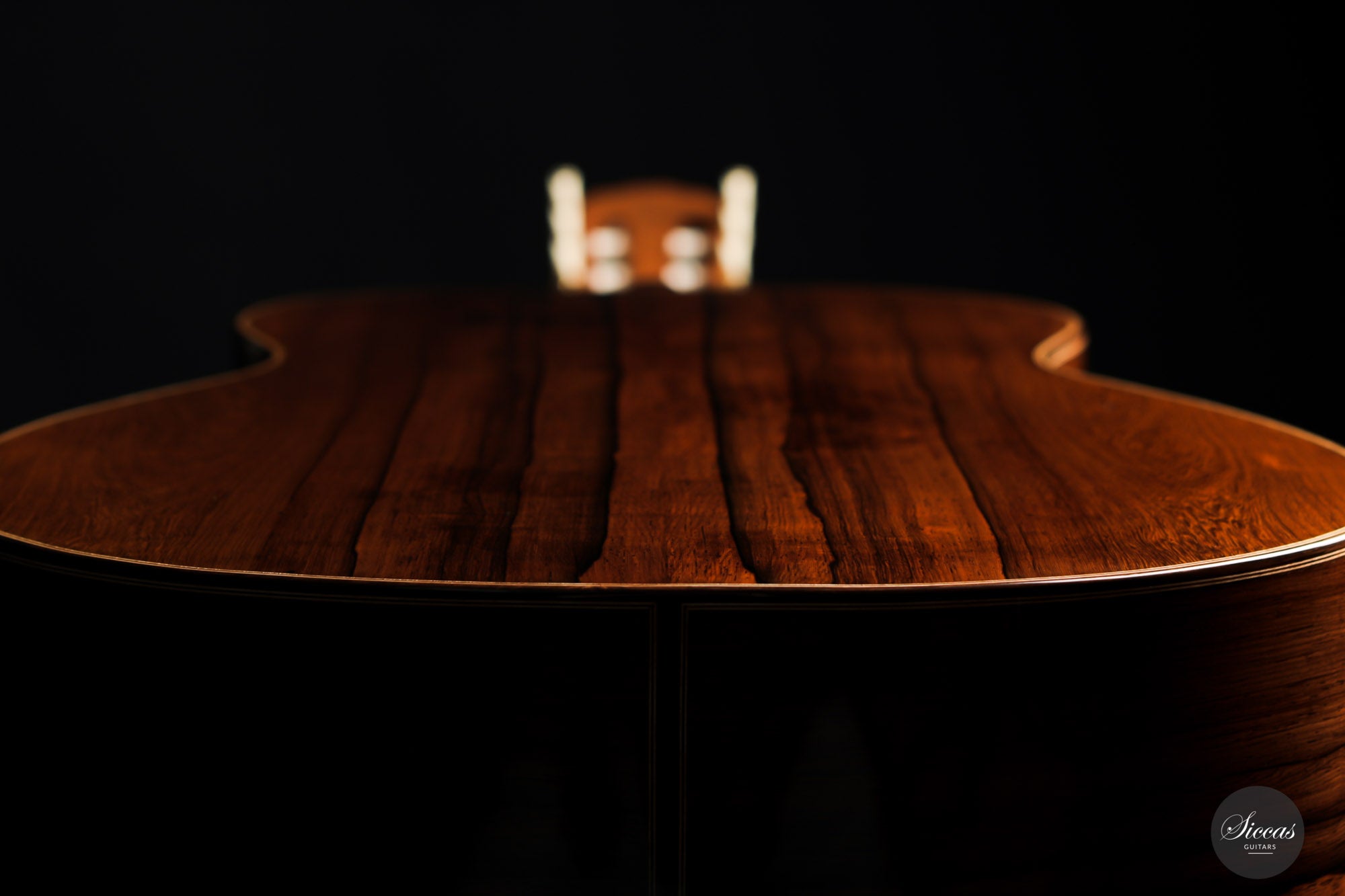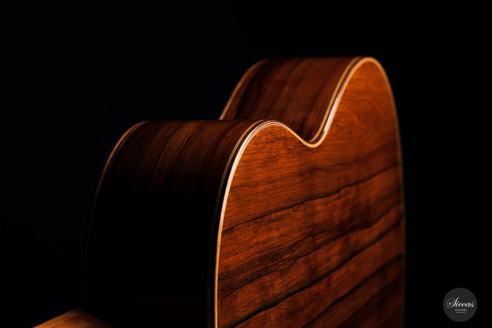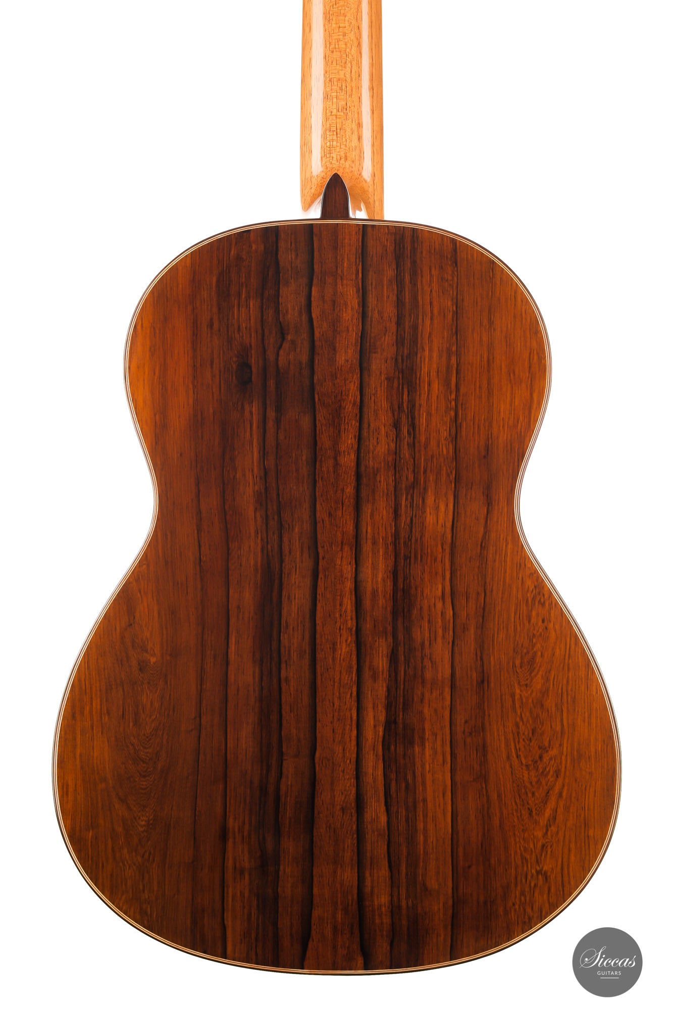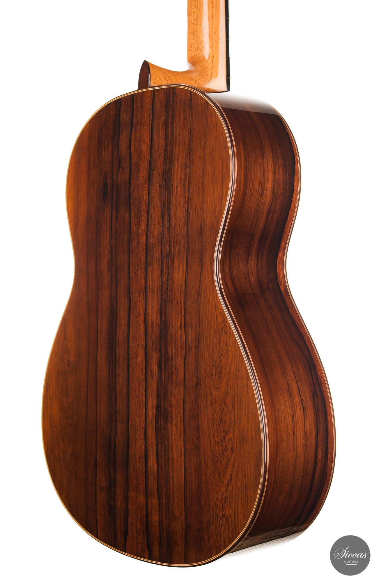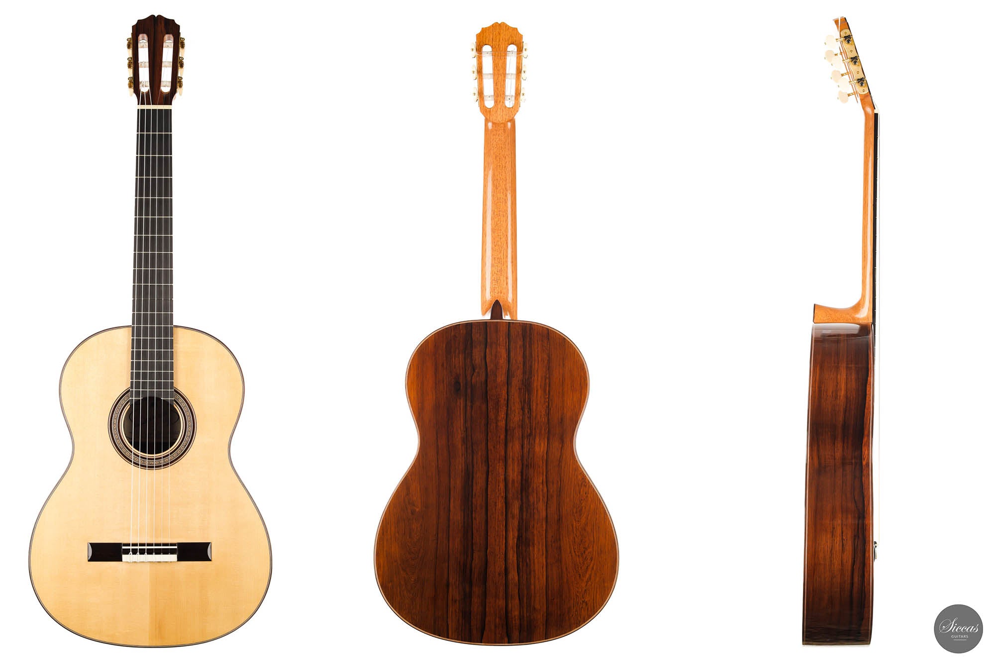 Darío García built this elegant guitar as a faithful copy of the Santos Hernández guitar from 1924, which belonged to Andrés Segovia and was donated by Segovia to the Victor Espinós Music Library in Madrid, where it is still preserved today. This beautiful instrument is made of fine spruce and stunning African rosewood. It is characterised by its light weight due to the thinly crafted woods. When playing, the sound of the instrument is surprisingly powerful with a present harmonic content. A truly inspiring guitar that has a charming vintage timbre that is rarely found in new instruments.