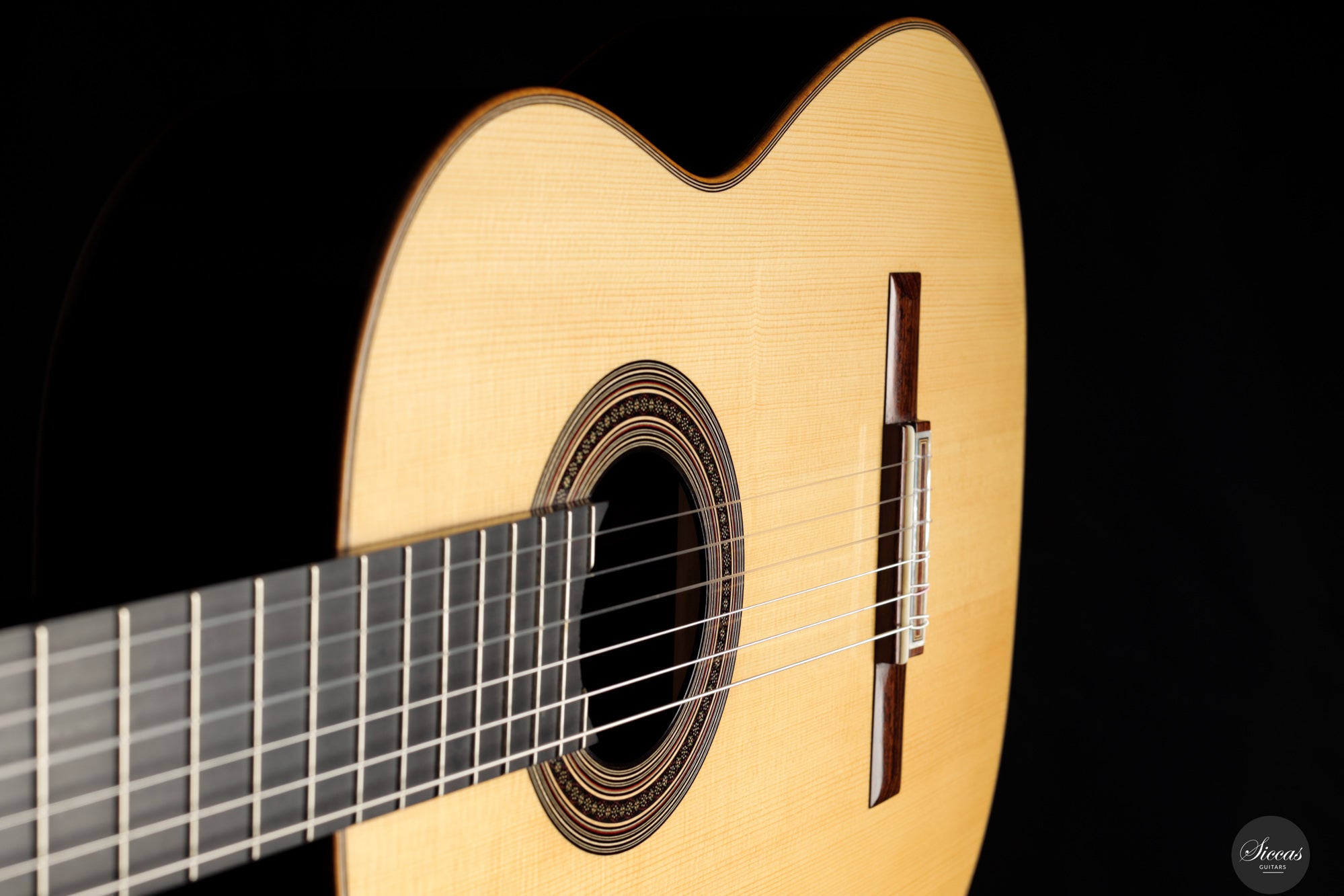 The sound is characterised by clarity and a gentle richness. The registers are shaped with care. The basses are present and supportive while the trebles carry a focused and crystalline voice. The guitar offers excellent separation of lines which allows polyphonic passages to unfold with precision. The sustain is long and even yet it never obscures articulation so the tone remains controlled even at broader dynamics. The overall balance is exemplary and the instrument projects its voice with ease while preserving a lyrical and highly expressive quality.