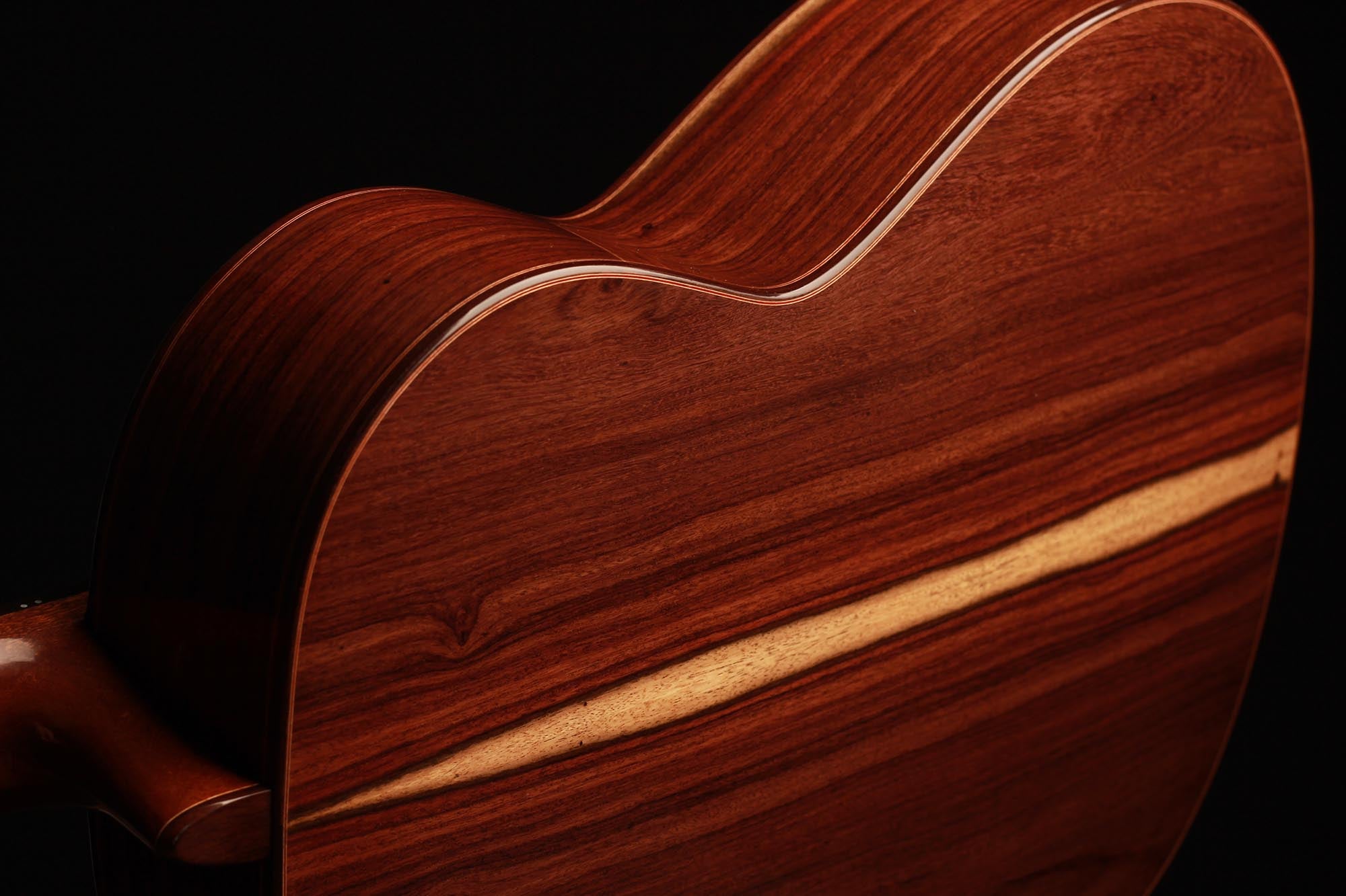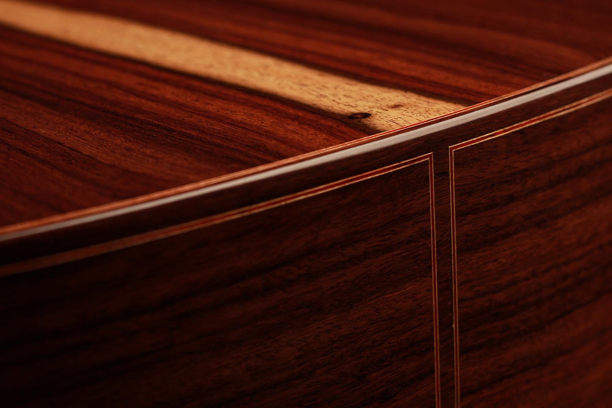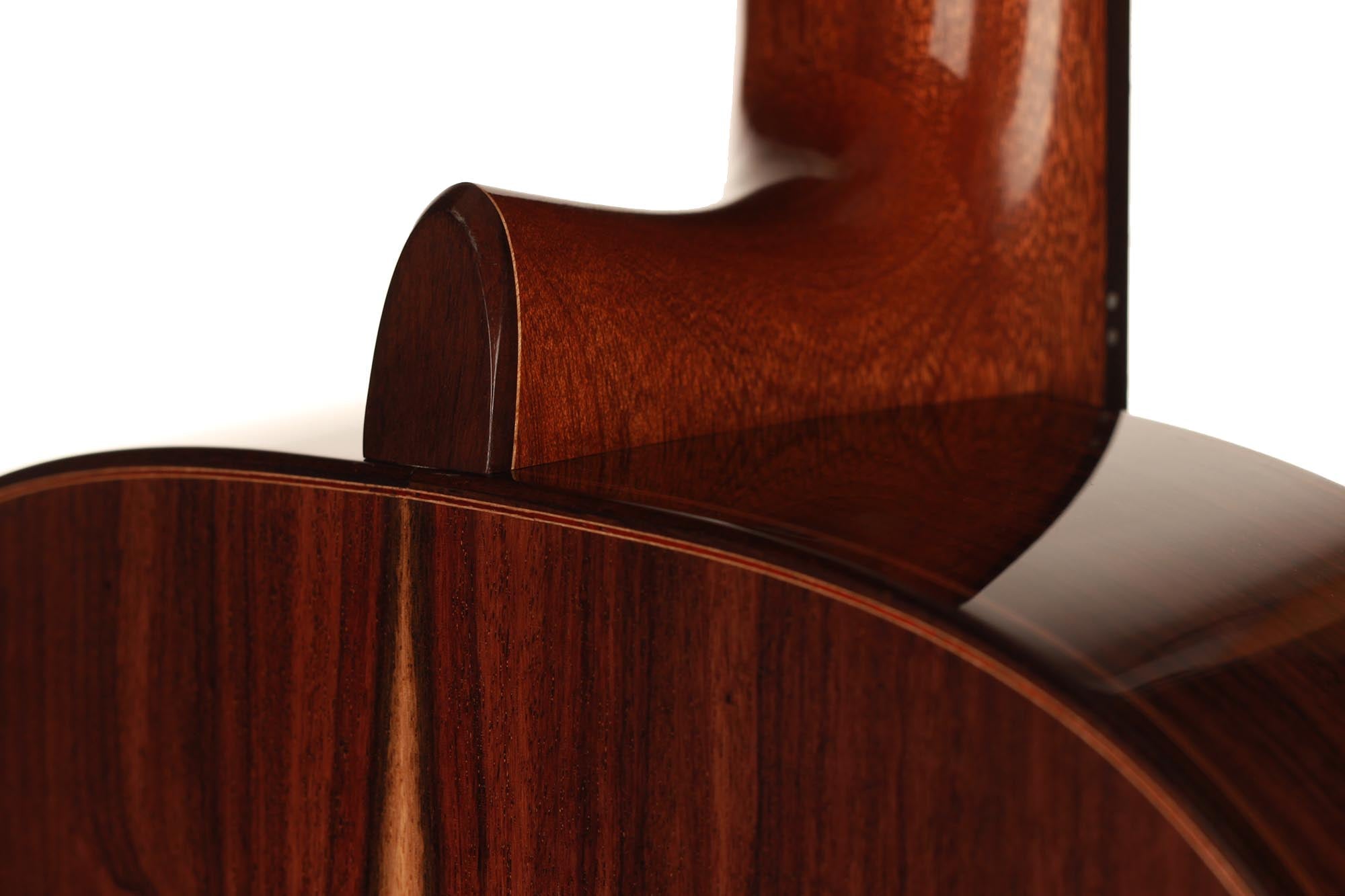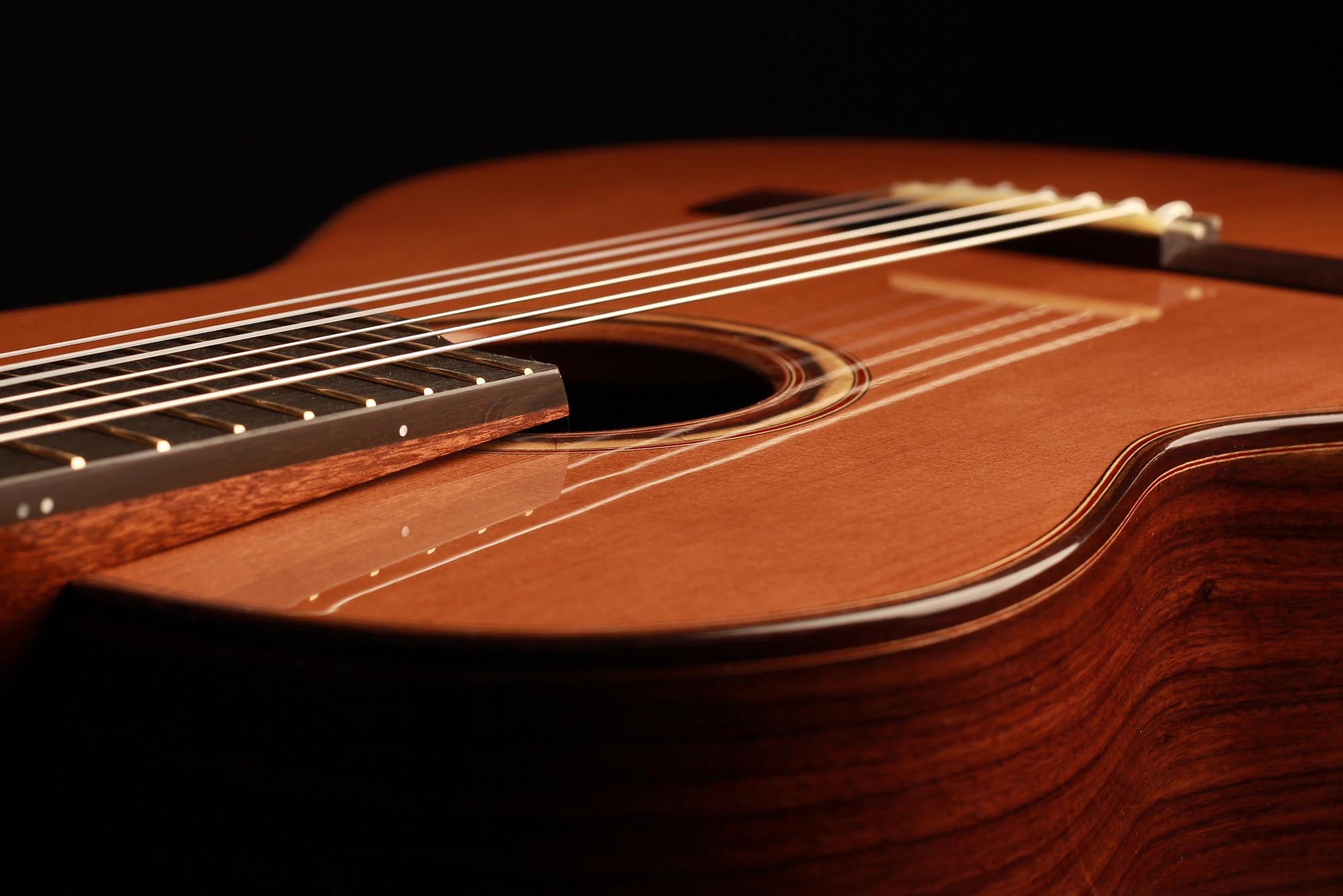 This very fine 2018 Cedar doubletop guitar is one of the easiest-to-play classical guitars that one can imagine. Thanks to its thin neck, the elevated fingerboard and the very sensitive doubletop, this instrument is suitable for guitarists, who particularly value a comfortable guitar or for players with smaller hands aiming for a true concert guitar. The doubletop’s inner core is made of feather-light Paulownia wood, in opposition to the usual Nomex composite. This gives the sound a “woody” timbre with a warm tone and a huge projection. The dynamic range, colour possibilities and amazing playability of this instrument make it a wonderful concert guitar.