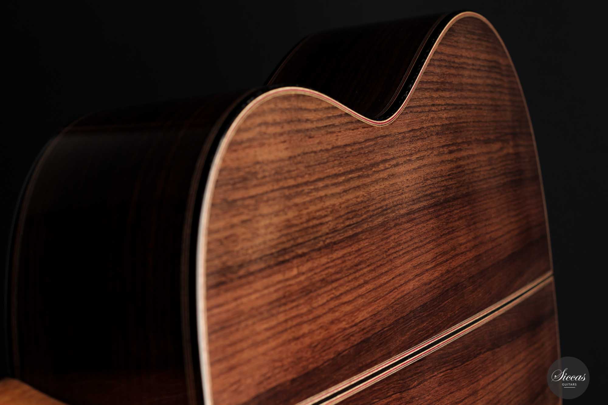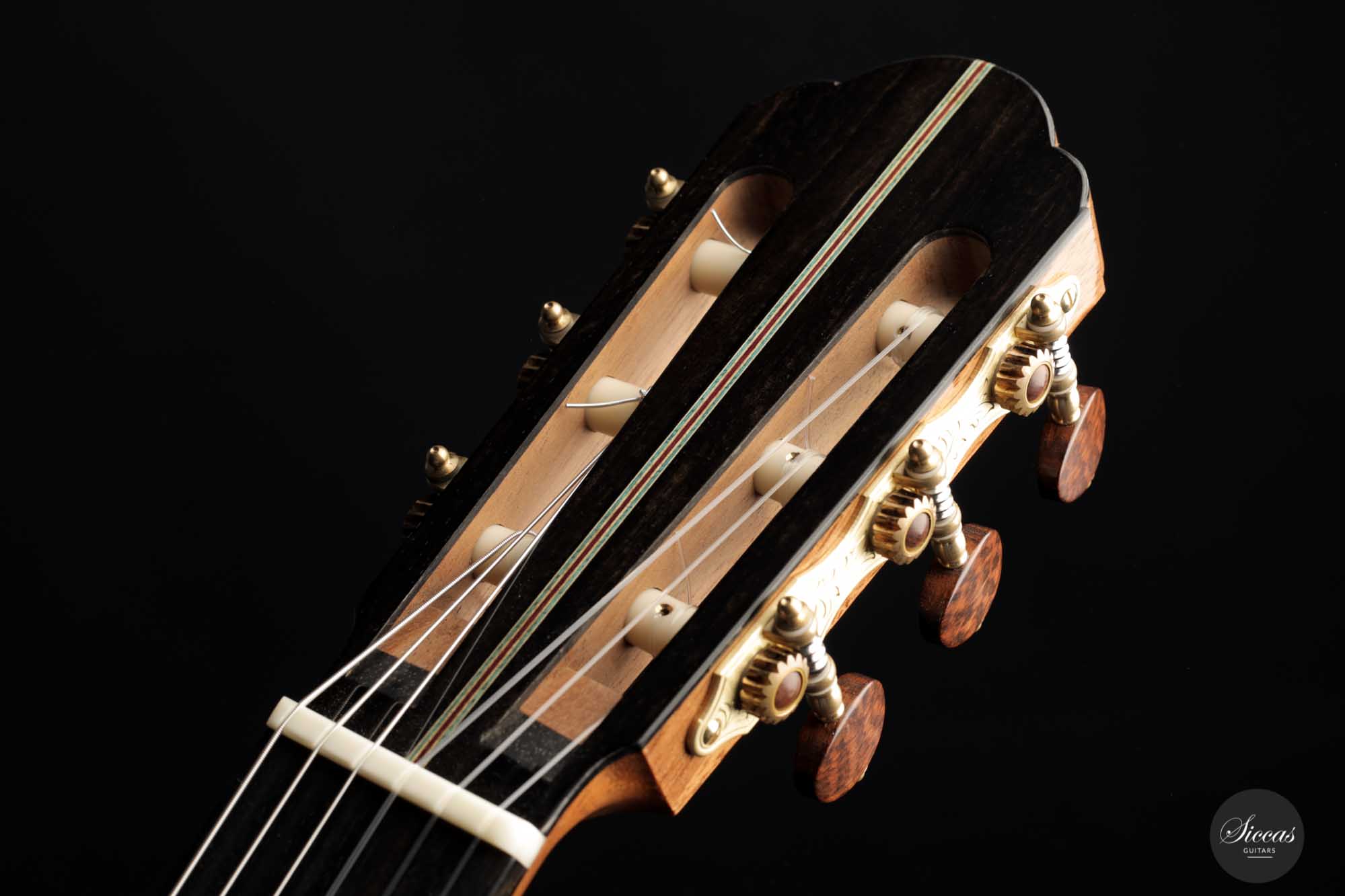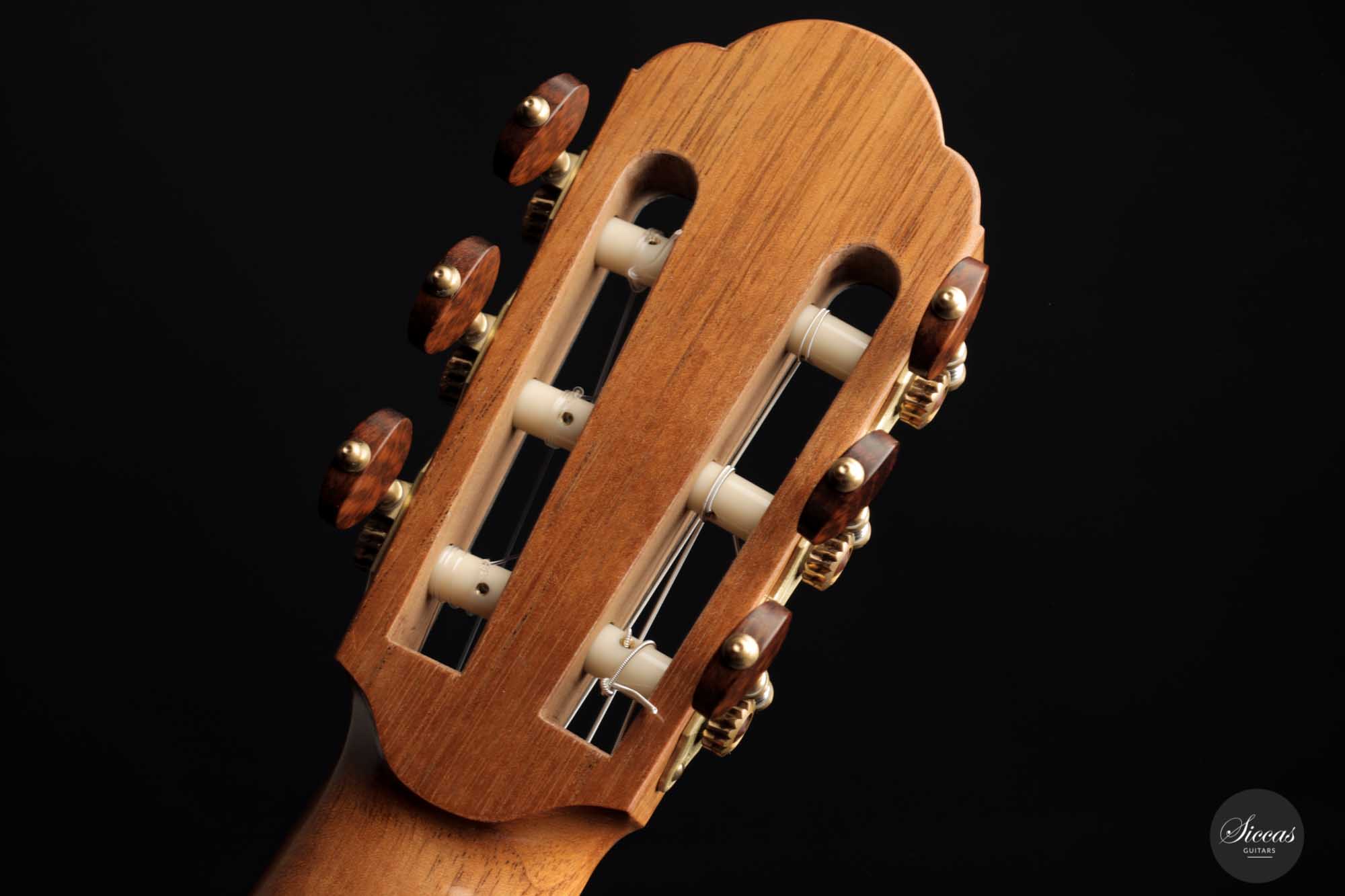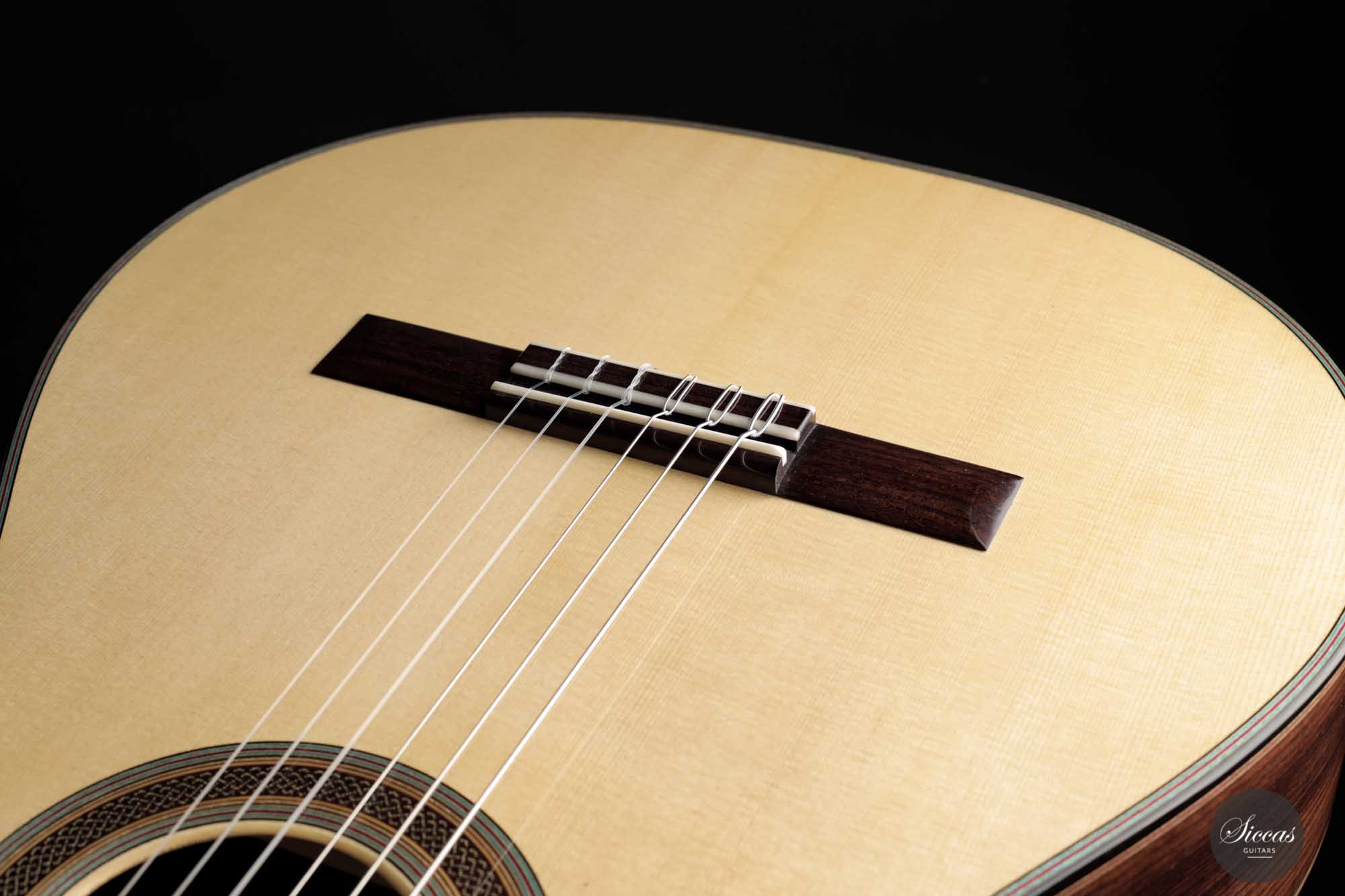 What an incredibly light and resonating guitar! The responsiveness and immediacy of tone are striking, and the maturity of this instrument is remarkable. It shows incredible potential, and if it already develops such a full tone as a brand new instrument, it will be monumental after a year of playing. Everything about this guitar meets high standards: woods, marquetry, tuners, french polish, sound, and playability. It is definitely a great guitar, especially in this price range.