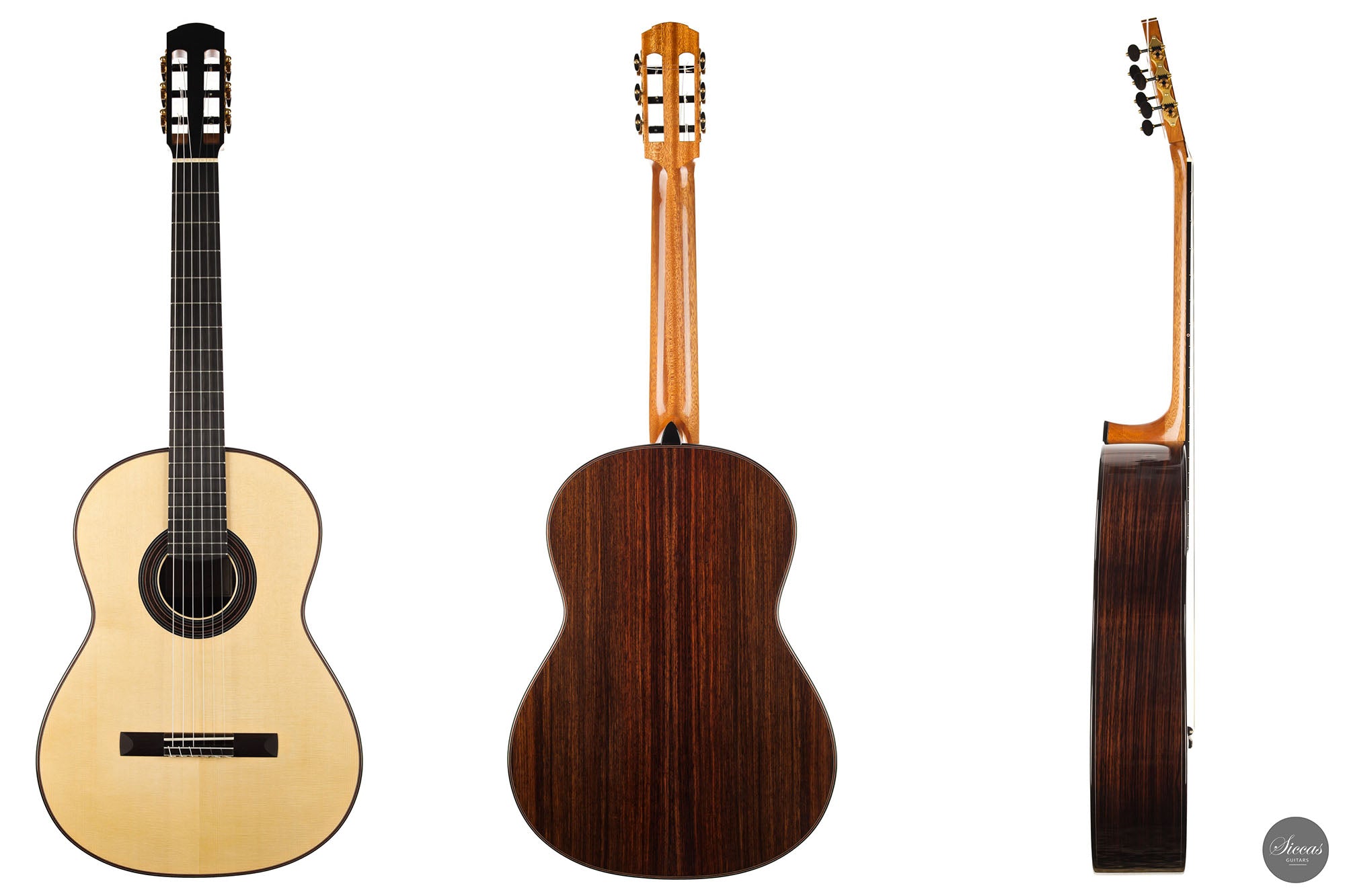 The classical guitar, with its soft nylon strings and characteristic timbre, has become a symbol of chamber music, Spanish tradition, and concert repertoire. Its modern form was shaped by Antonio de Torres in the 19th century, setting the standard for the body, fan bracing, and the 65-centimeter scale length that are still used today. Instruments in this category open up a rich palette from the refined Romantic miniatures of Tárrega to the majestic concertos of Rodrigo. Here you will find guitars that preserve historical continuity and at the same time inspire new interpretations.