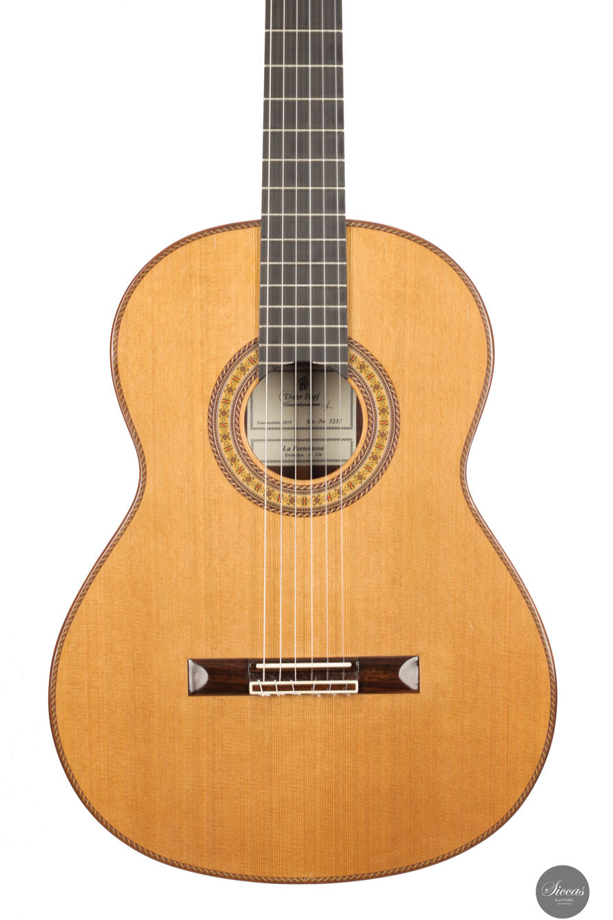 The 2019 Portentosa Evolución No. 120 by Dieter Hopf is a refined concert guitar that unites traditional craftsmanship with innovative design. Built with a cedar top and Indian rosewood back and sides, it produces a warm, full-bodied sound marked by depth, clarity, and richness of color. Its lattice-braced top, reinforced with carbon fiber, provides impressive projection and resonance while preserving precise note separation - making it highly effective for intricate repertoire. Light in construction and quick in response, it offers both comfort and expressive flexibility, performing equally well in intimate and large venues. Well preserved with only light playing wear, it represents both the strength of the Hopf tradition and the modern concert guitar at its best.