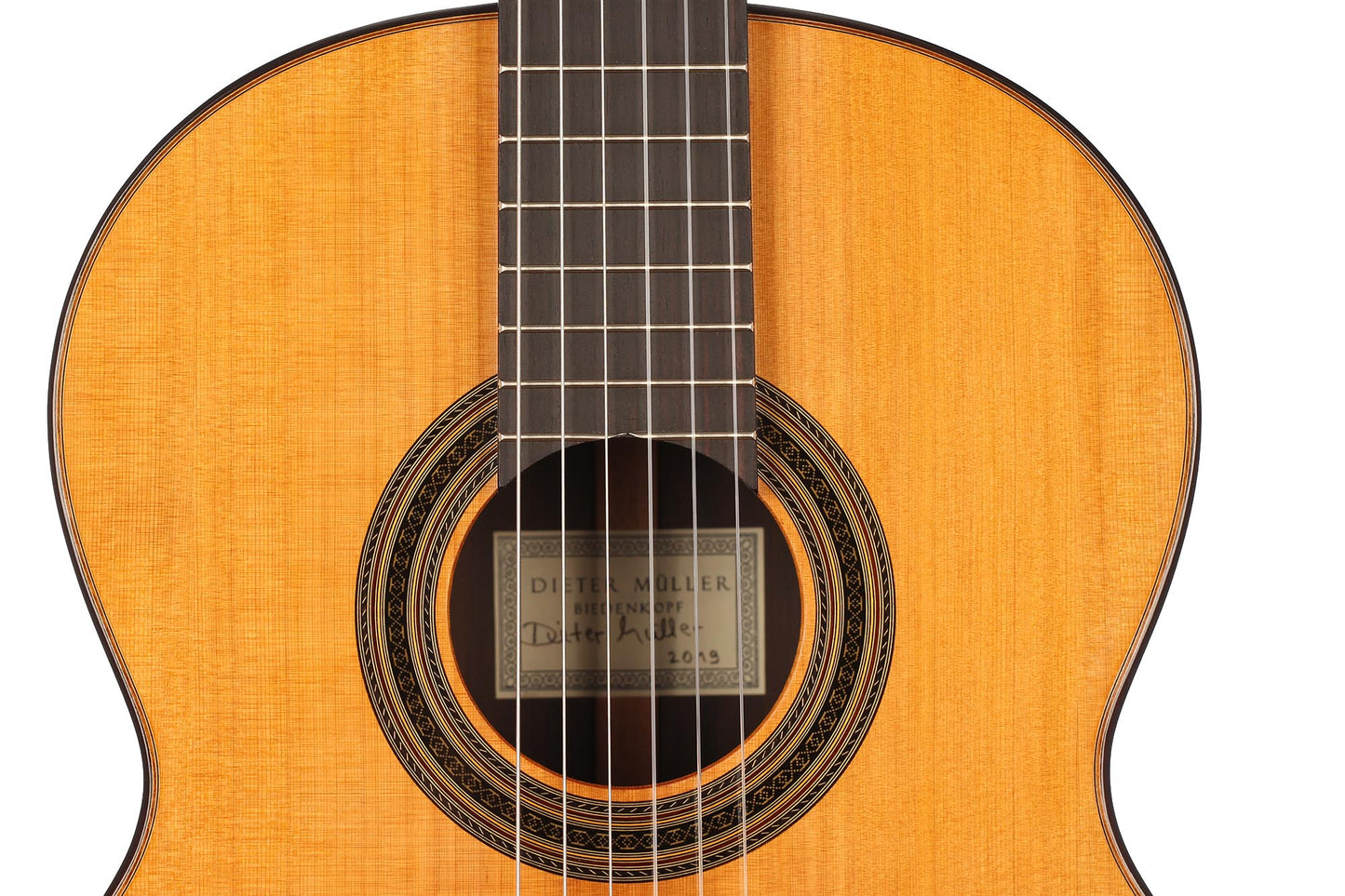 This guitar is light as a feather and reacts incredibly fast. Its dynamic possibilities are extraordinary, and what an impressive volume it produces. All these qualities support the guitarist in live performances and competitions when it comes to a 100% reliable instrument in terms of sound, volume and playing comfort. Dieter Müller’s guitars are definitely among the best German double top guitars of our time.