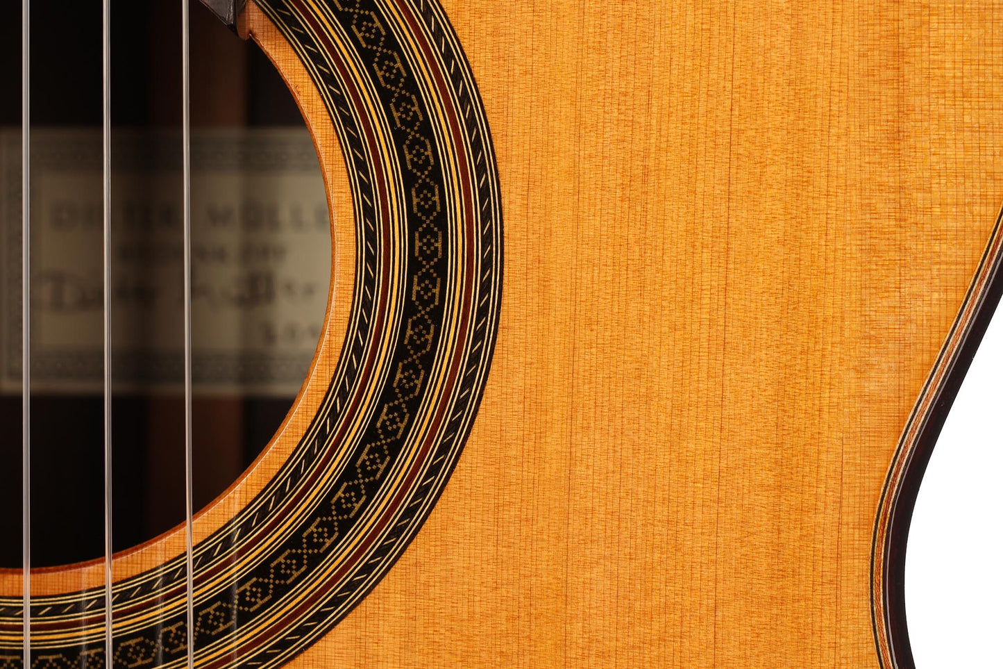 Dieter Müller is a respected German guitar maker who specializes in the construction of double-top guitars. Since Matthias Dammann, German guitar builders have been specialists in the field of double-top guitars. Dieter Müller's instruments are in demand above all because of their sound quality and sonority as well as their large sound volume. In addition, the craftsmanship is also at a very high level.