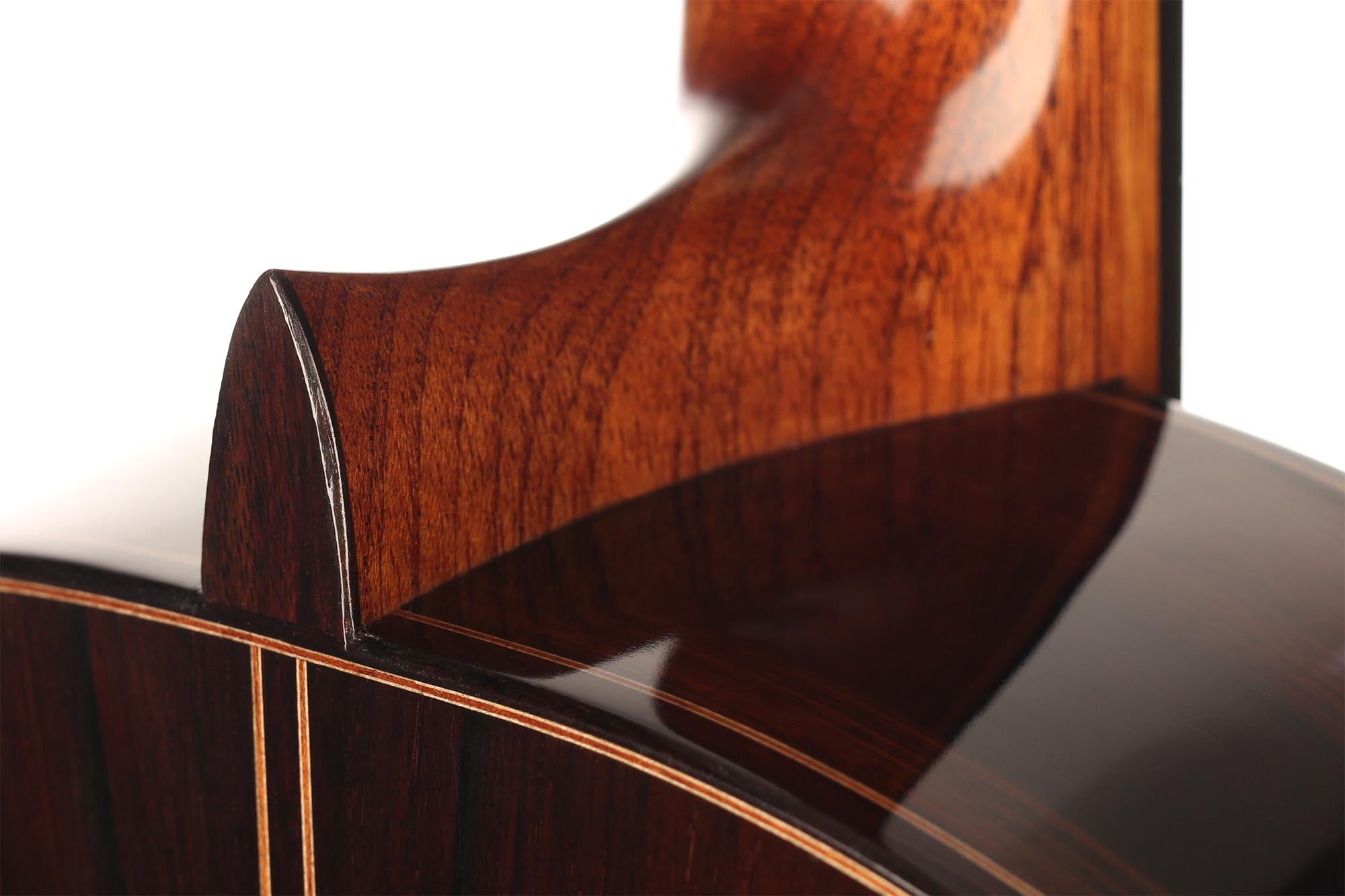This special edition was built with a marvellous CITES-certified Brazilian Rosewood which gives it a fantastic tone character and unique look. The fine dark rosette emphasizes the honey color of the lovely and rather bright cedar top. Dieter Müller's guitars are really unique and this instrument is characterized by highest quality and excellent sound wood. CITES-certified Brazilian Rosewood is very rare and only when it is handcrafted by a great and skilful luthier such as Dieter Müller it reaches its true full value.