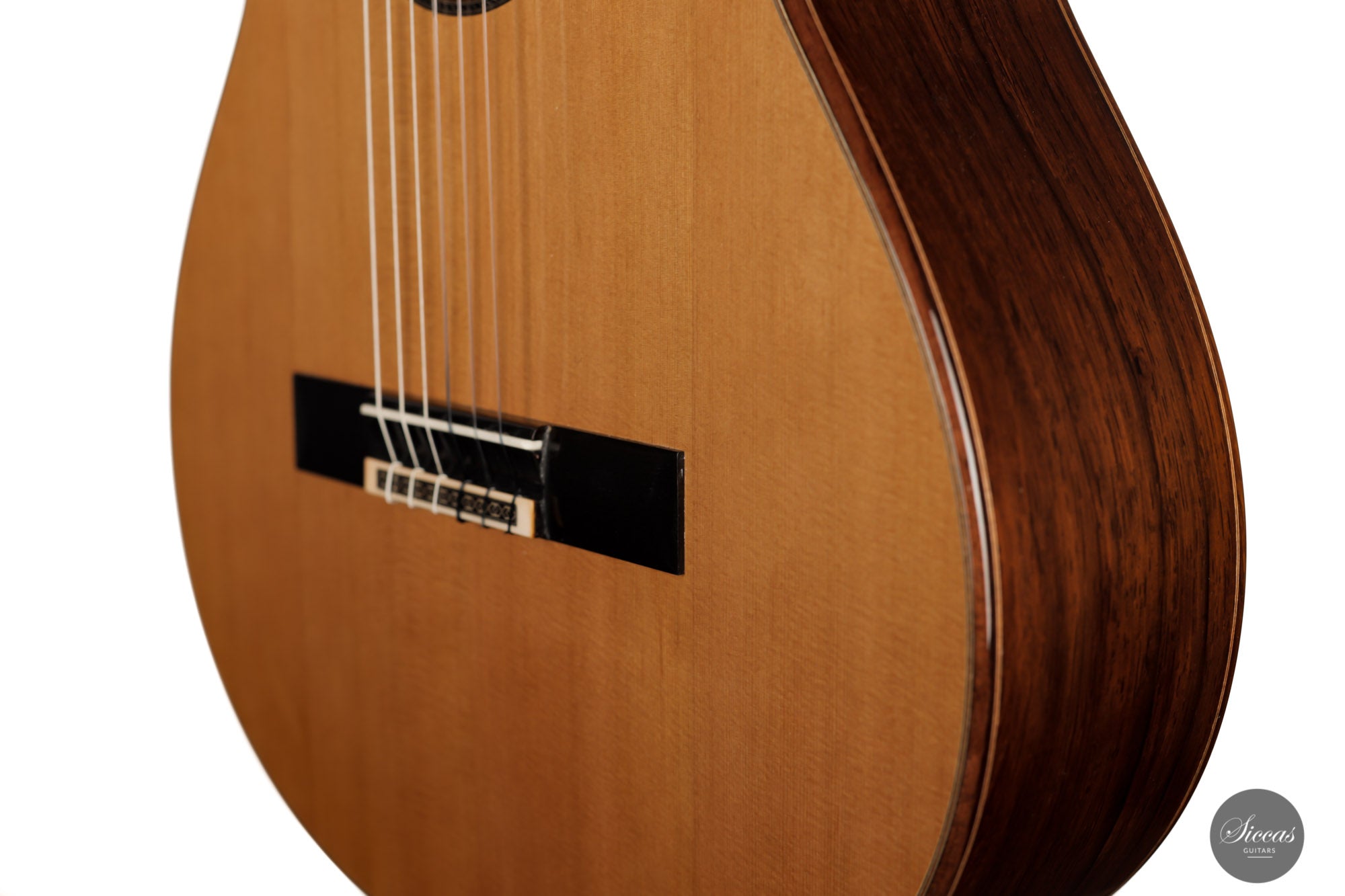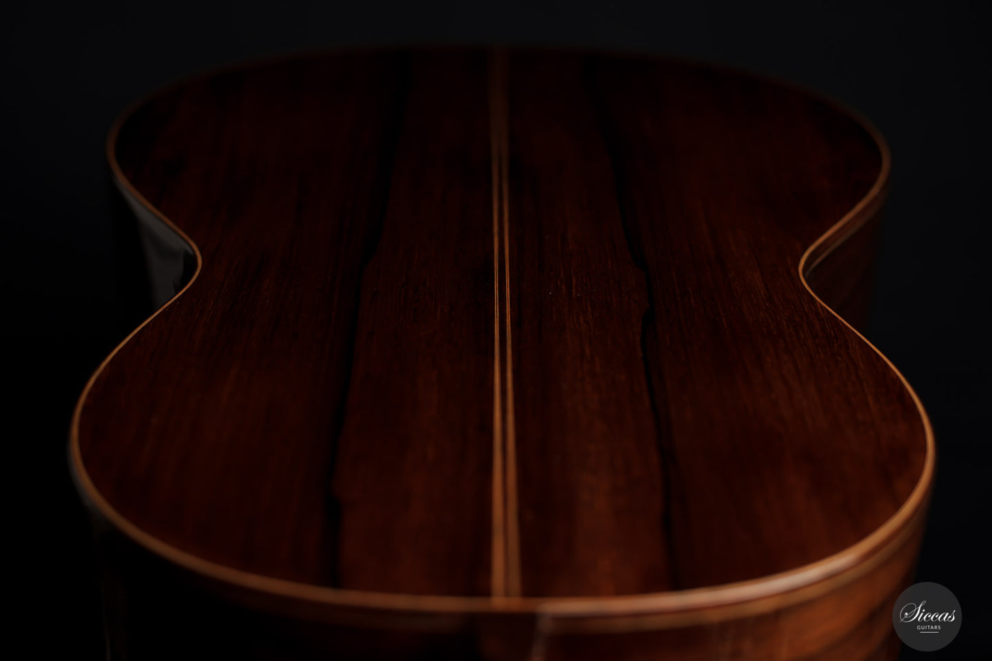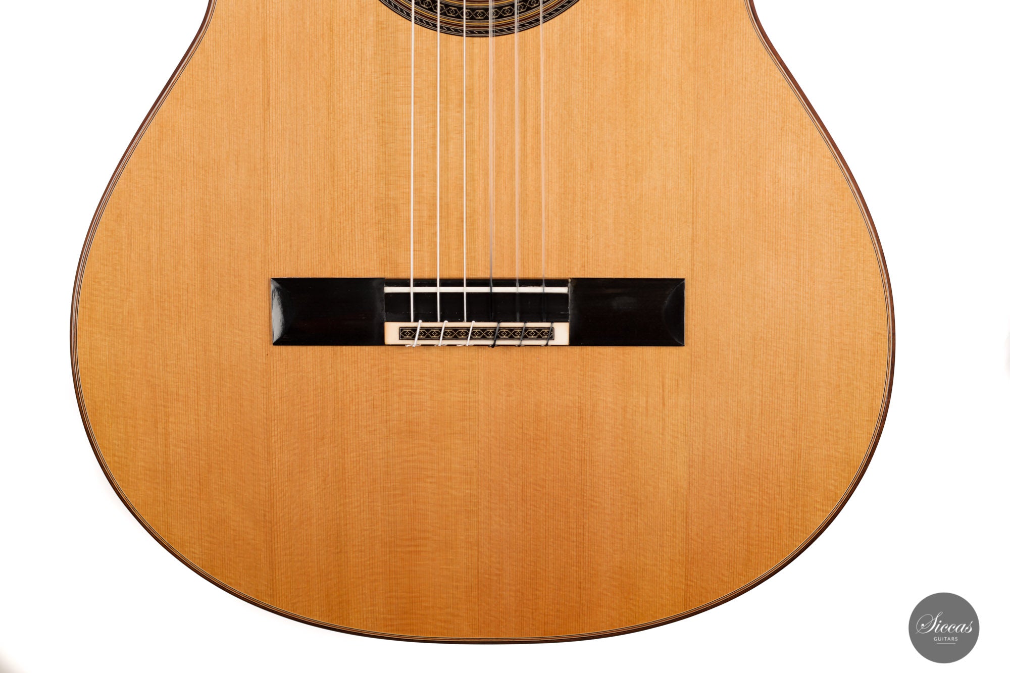 Wow, what a monster of a guitar! This lightweight and super responsive 2021 Dieter Müller comes straight from his workshop and already has a massive open sound. Interestingly enough, the musicality of this guitar and the ability of the first string to sing are astonishing. Wonderfully rounded, warm, and velvety tone provides the guitarist flawless control over the phrasing and sound quality. Moreover, a highly comfortable neck offers first-class playing comfort. Overall, a truly fantastic concert guitar with precise craftmanship from a prominent German luthier.