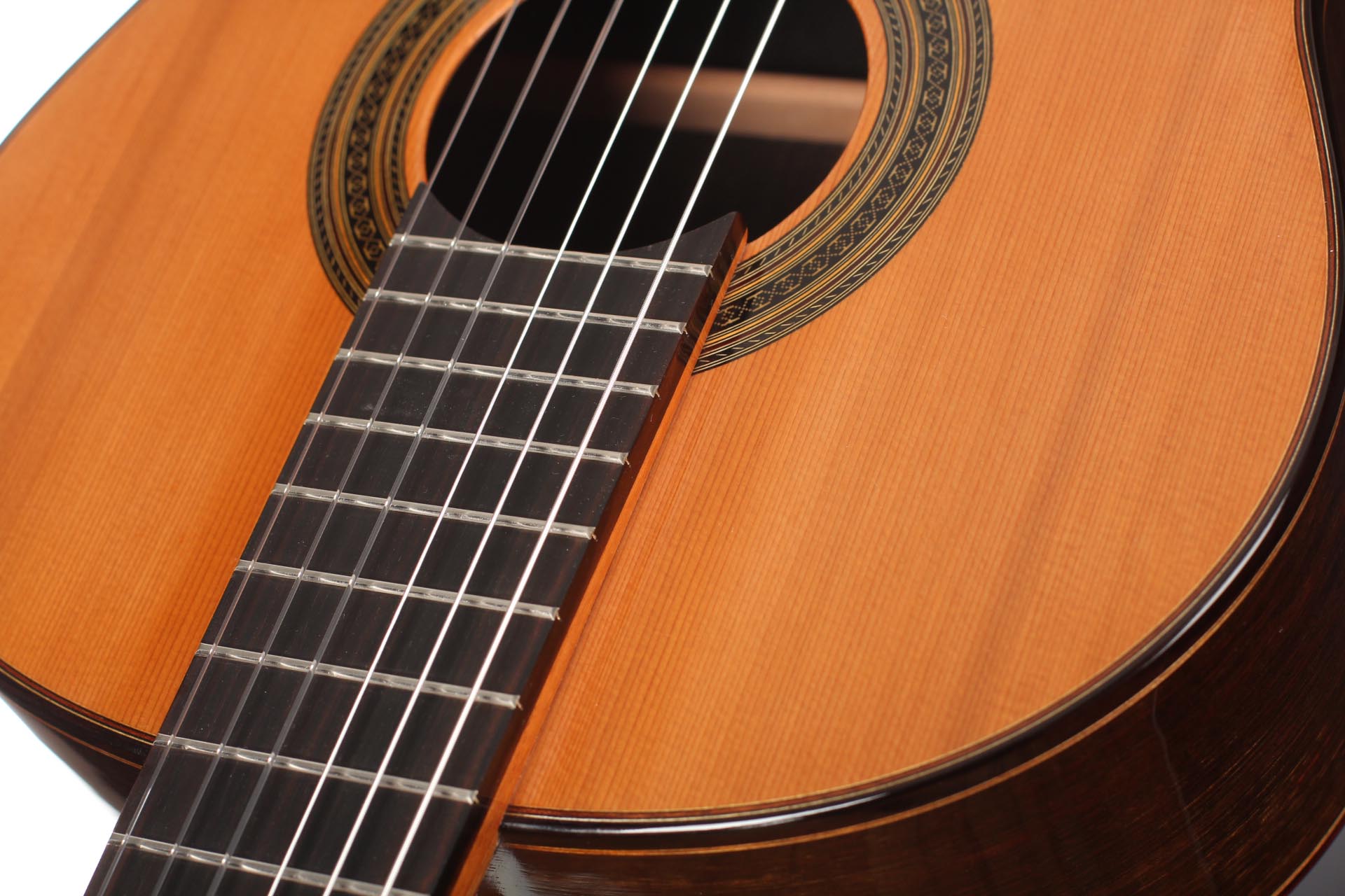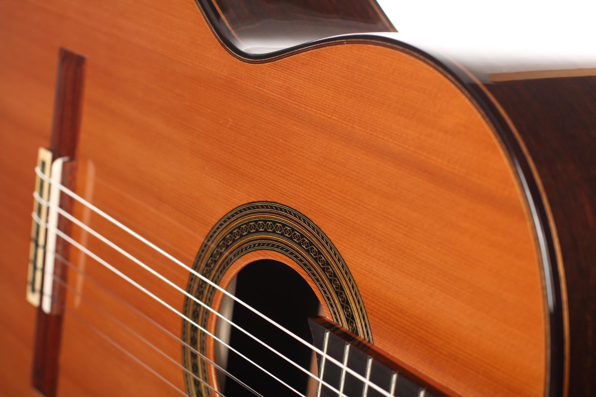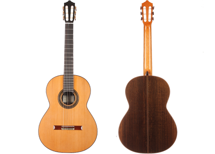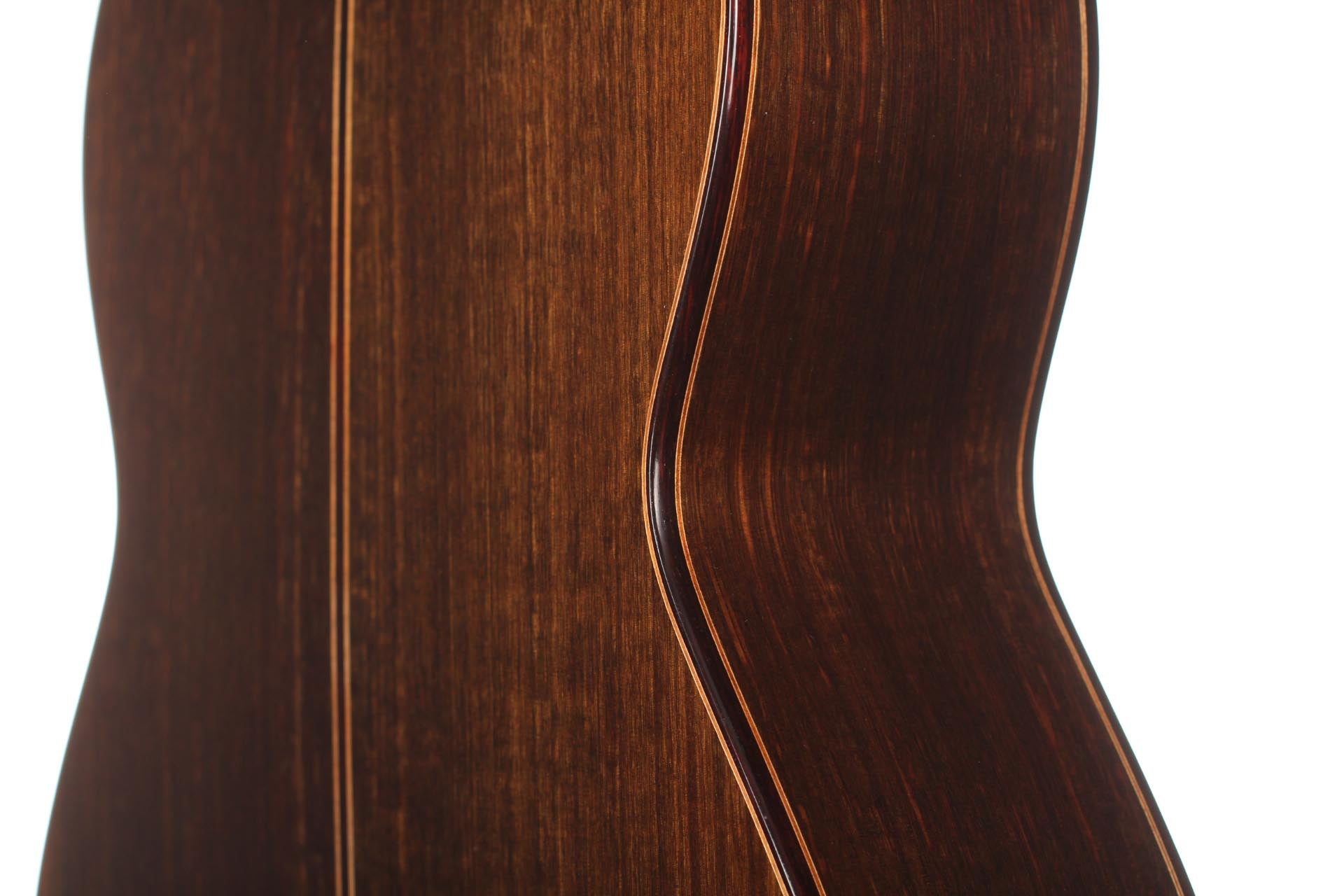 Dieter Müller is a highly regarded German guitar maker, specialized in Double-top guitars. Since Matthias Dammann, German guitar makers are specialists in term of double-topped guitars. Dieter Müller’s instruments are particularly thought after for their tone quality, richness of sound colours and huge volume. The craftmanship is brought to a very high level. The fine dark rosette emphasizes the honey colour of the light cedar top. Also, back and sides are made of dark Australian Blackwood that contrasts with the top to give an aesthetically perfectly balanced guitar. This guitar has a very strong character, is incredibly comfortable to play and has a very personal timbre. It is overall one of the best double top instruments of our time. The guitar is Cites-free.