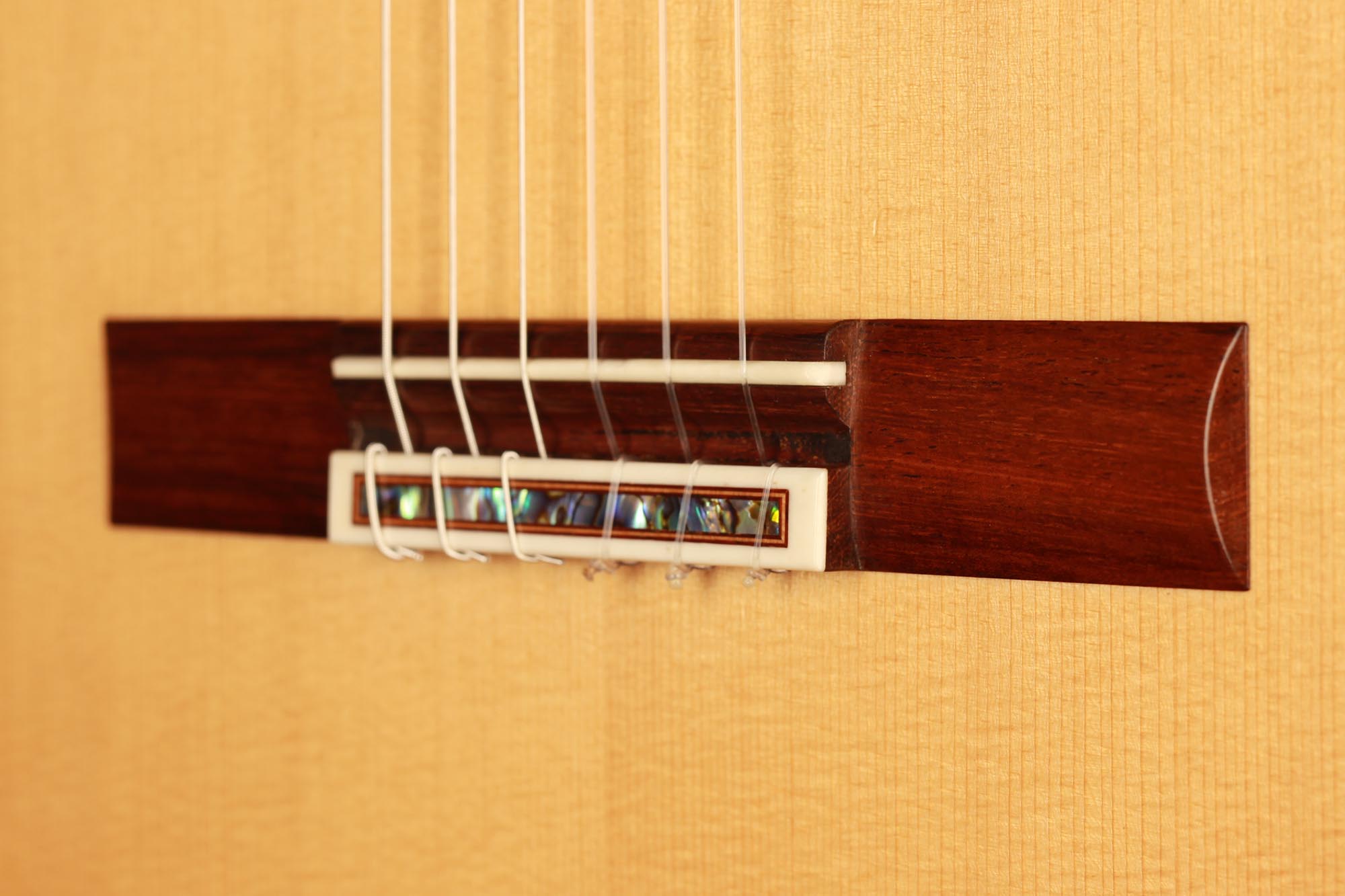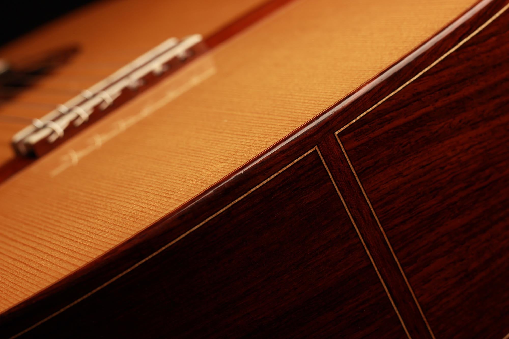It is a very comfortable guitar to play, with a low strings action and extreme responsiveness. The neck is thin and a pleasure for the left hand. Its directness in sound and the richness of its timbre make it a first-class concert instrument.