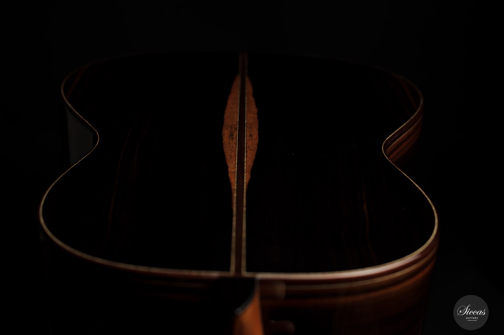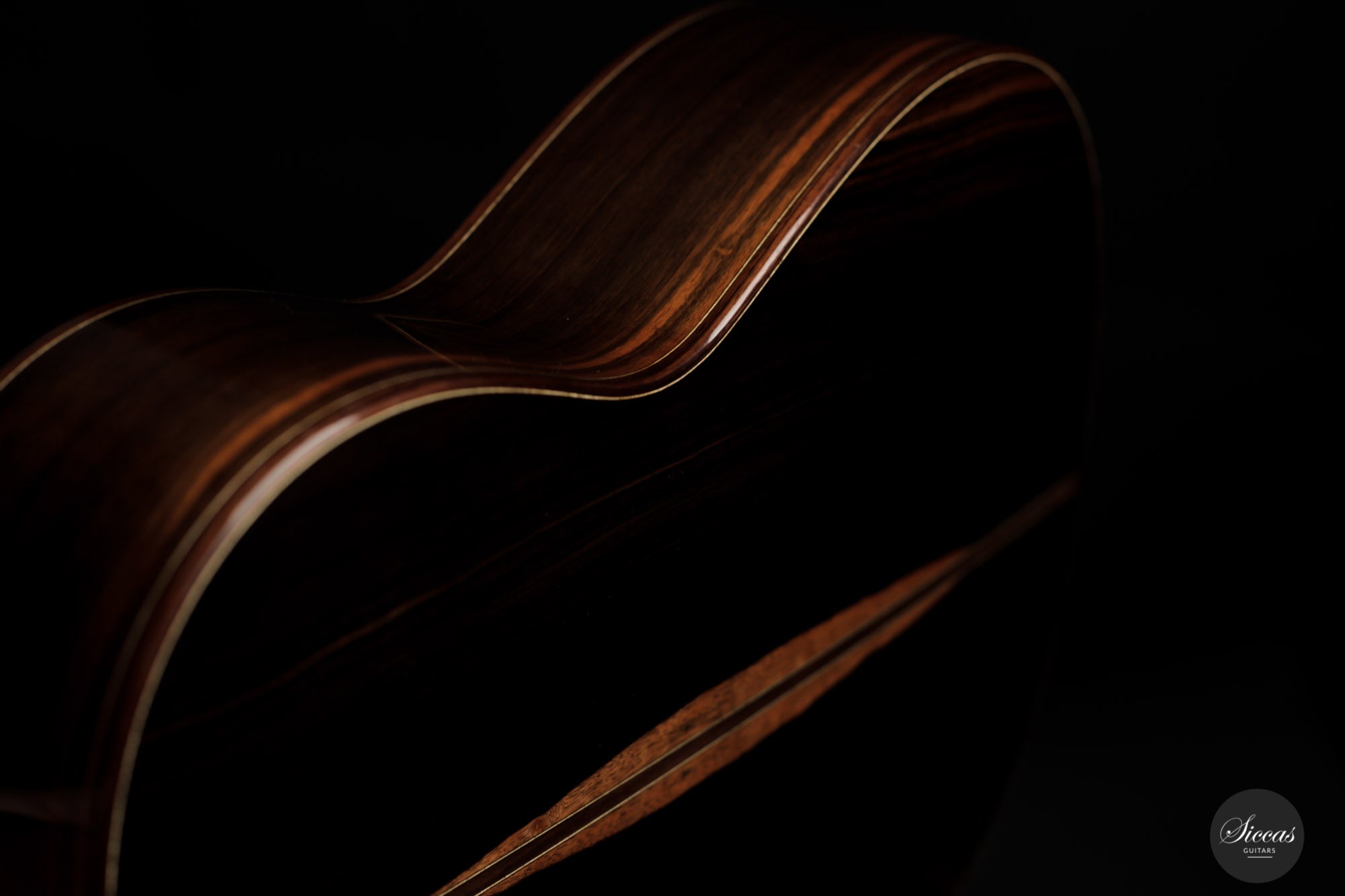To craft this extraordinary instrument, Dietmar Heubner decided to refrain from using machines and to get as close as possible to the wood. Using hand planes and scraper blades, he shaped the top as well as the back and sides. This masterly feat of craftsmanship allowed him to control the thickness of the wood, to adjust spontaneously to its characteristics, and to take advantage of the possibilities and opportunities inherent in any craft. This approach is perfectly in line with Dietmar's philosophy, emphasizing that traditional construction still offers unlimited possibilities for development in terms of sound aesthetics, projection, and everything else that makes the guitar such an exceptional instrument.