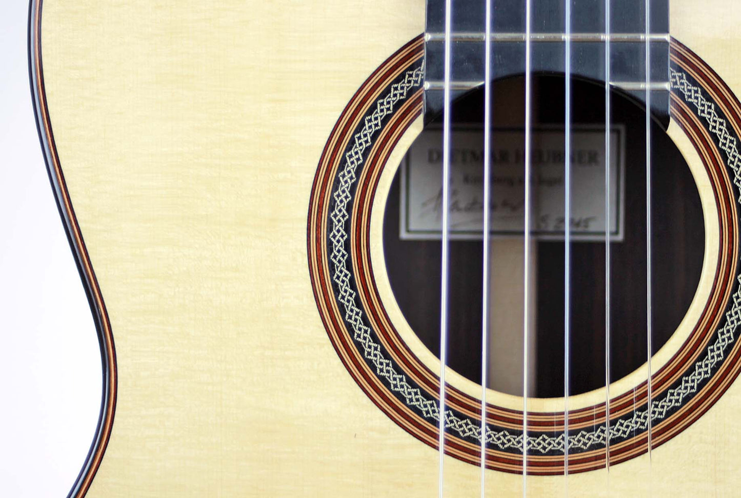 Since 25 years Dietmar Heubner is building traditional guitars with modern sound aesthetics. These instruments have a very warm sound and offer the guitar player plenty possibilities to express in a huge variety of timbres and dynamics. Dietmar started out as a cabinet maker, but soon after started building guitars in England. He gathered experiences and developed ideas by building violins.