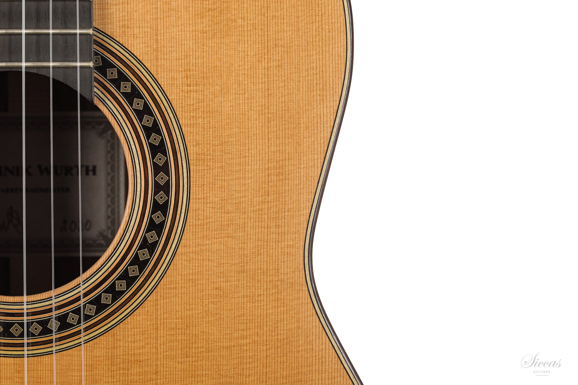 Dominik Wurth grew up in a small rural village located at the edge of the Black Forest in Germany. He discovered the guitar in his early twenties. After some time and technical progress he became dissatisfied with the sound of his beginner's guitar and needed a better instrument. To get a deeper insight into the differences in quality and to be better prepared to buy the right instrument, he started reading about guitar building. After reading several books, the idea of not buying a guitar but building one grabbed him and after a very long and hard ordeal he finished his first guitar. In order to give his chosen path a direction, he matriculated at the world's only university for string instruments in Zwickau and completed his studies in 2012. During this time he received the title "Master of the Plucked Instrument Maker's Handicraft".
