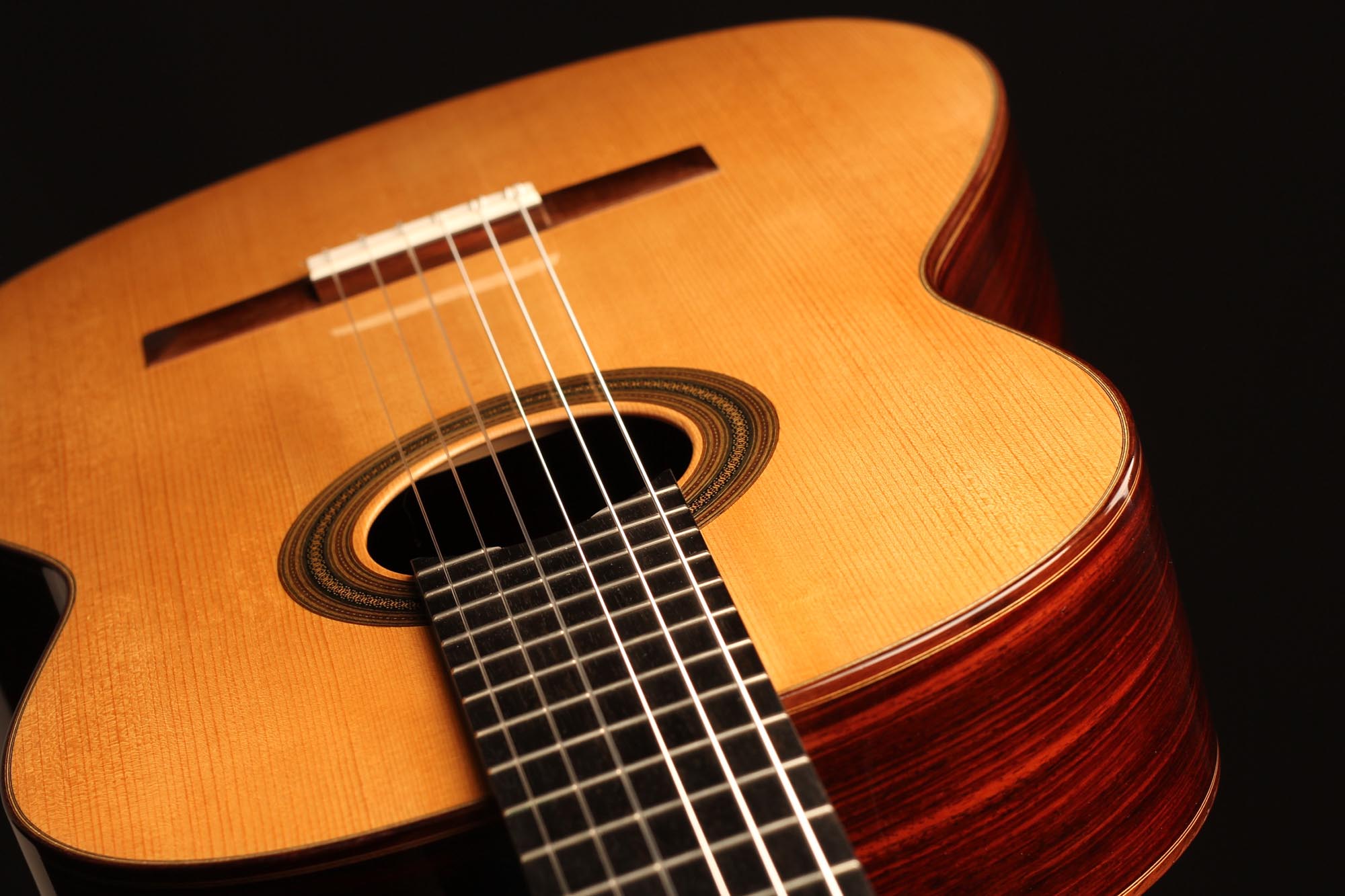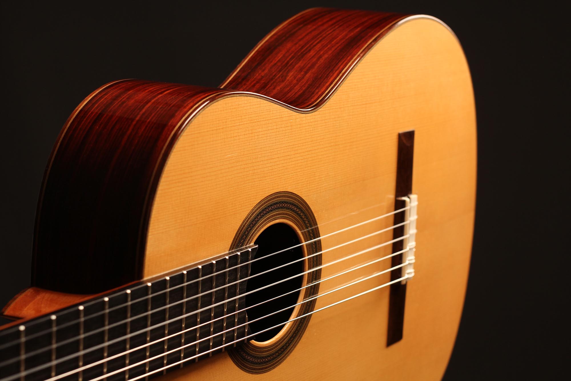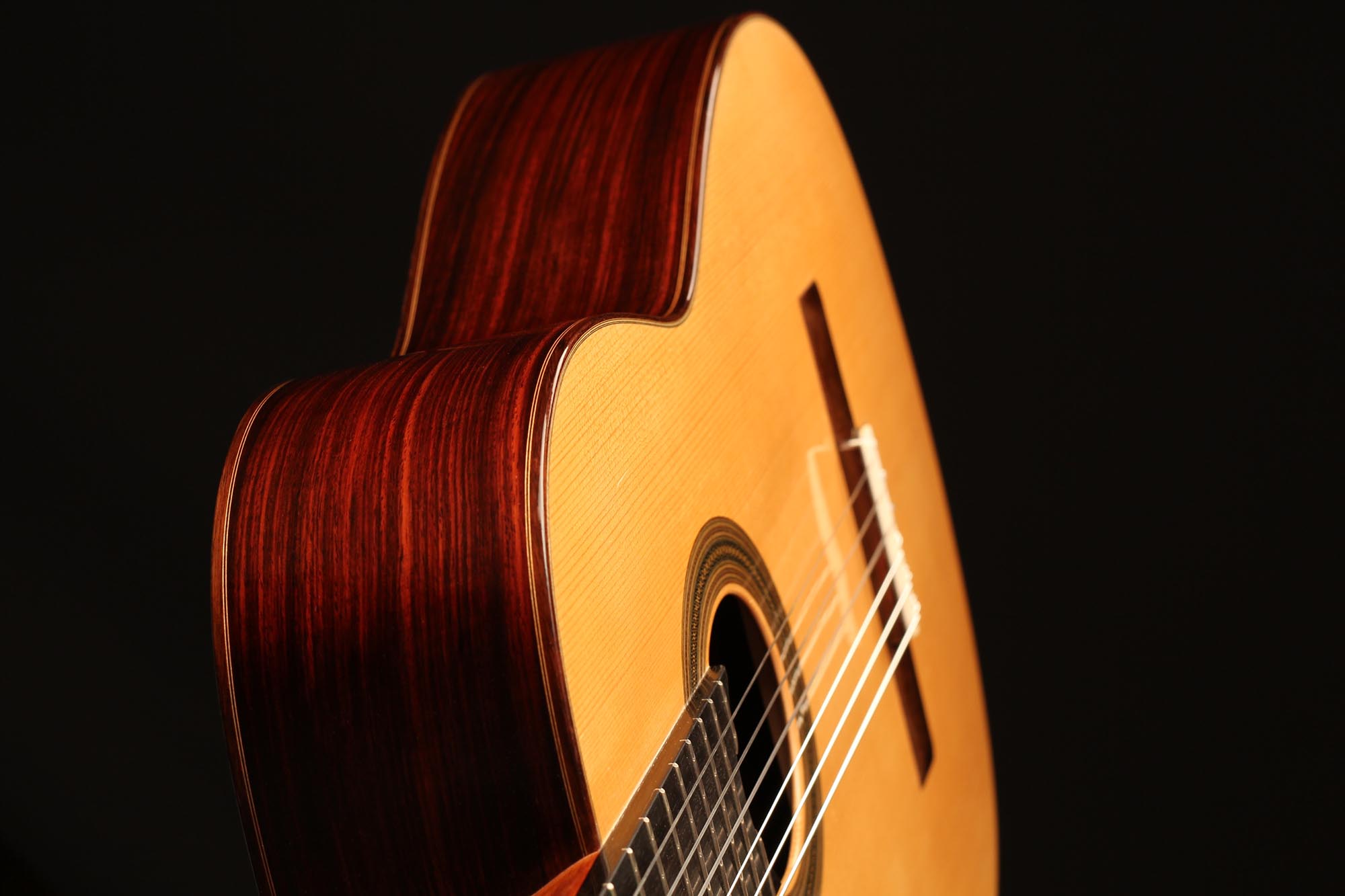 This instrument was built in 2001 and is in extremely good condition with no cracks nor repairs and only superficial playing marks on the top. This guitar’s sound is both incredibly charming and very powerful. The colours range, timbre possibilities and dynamic freedom are unique. It is definitely both a highly collectable instrument and a true concert guitar.