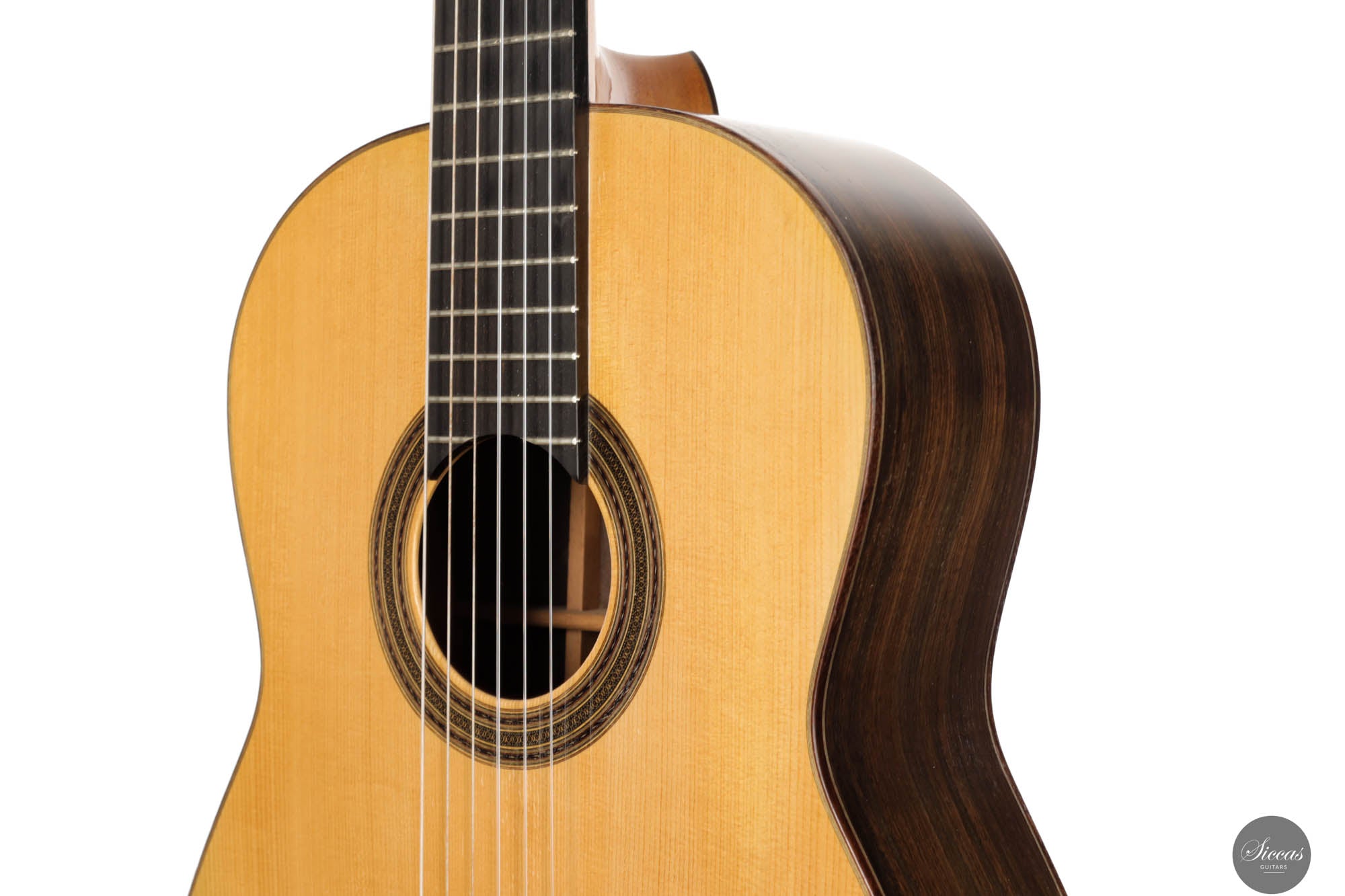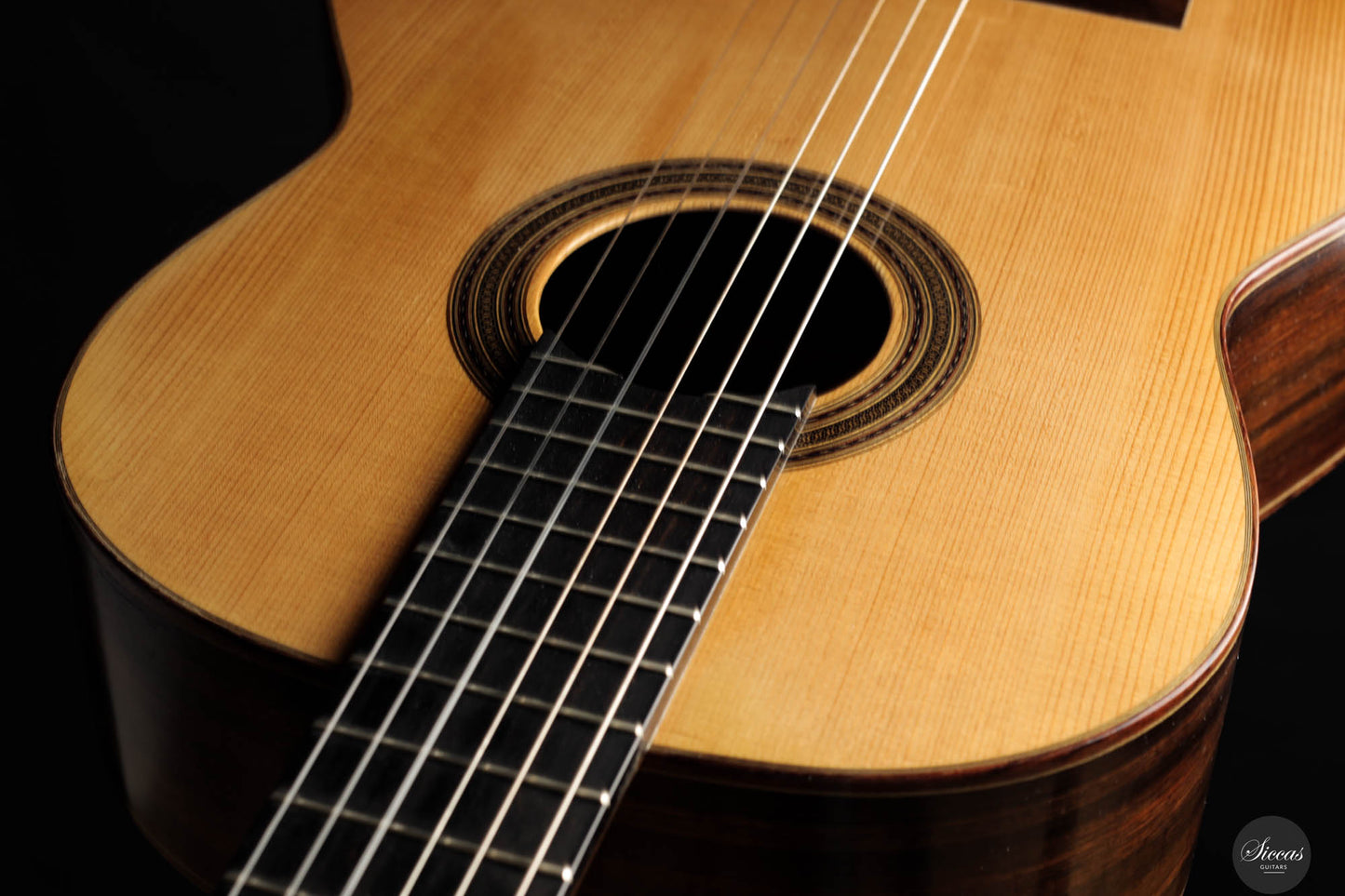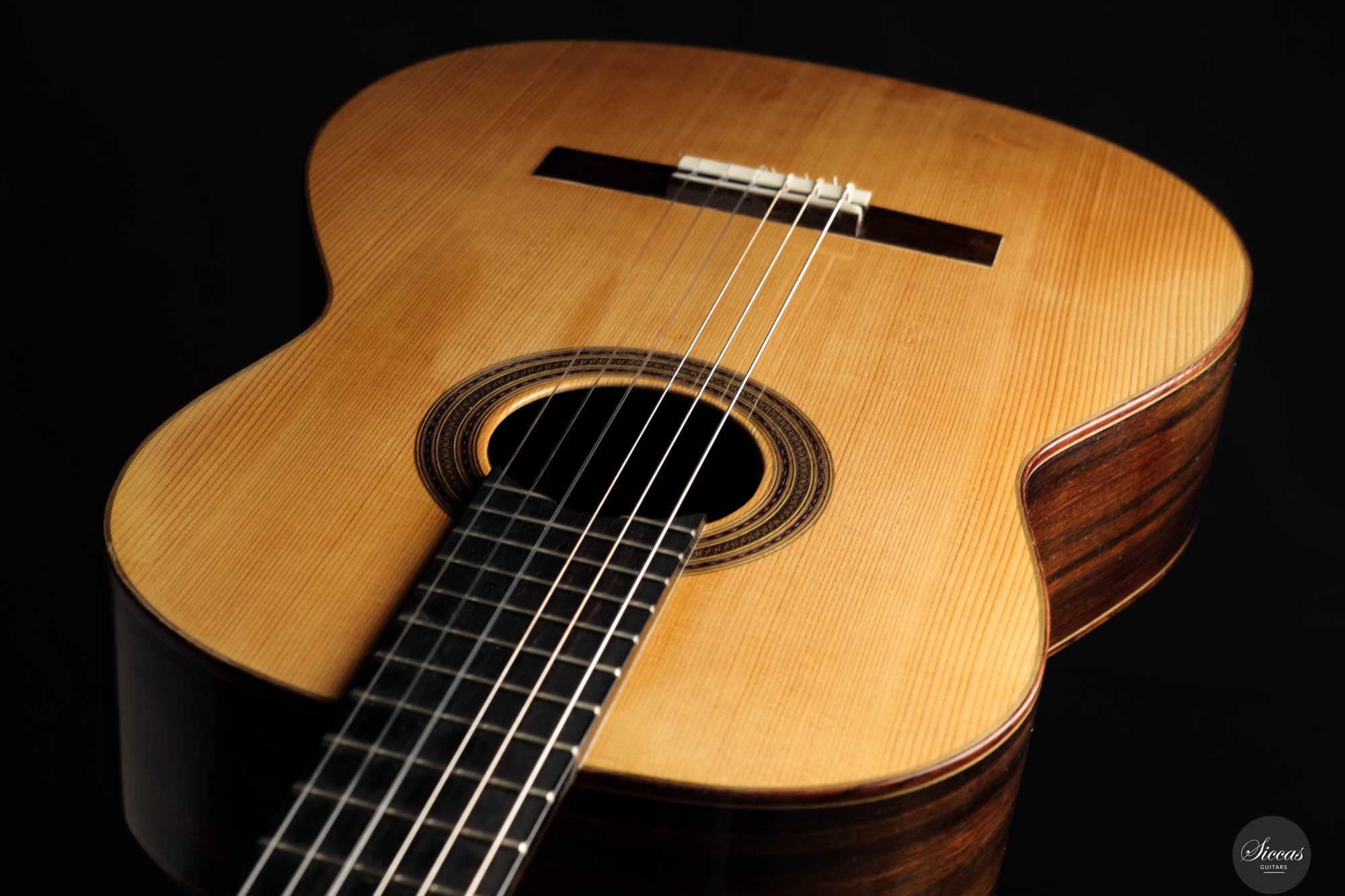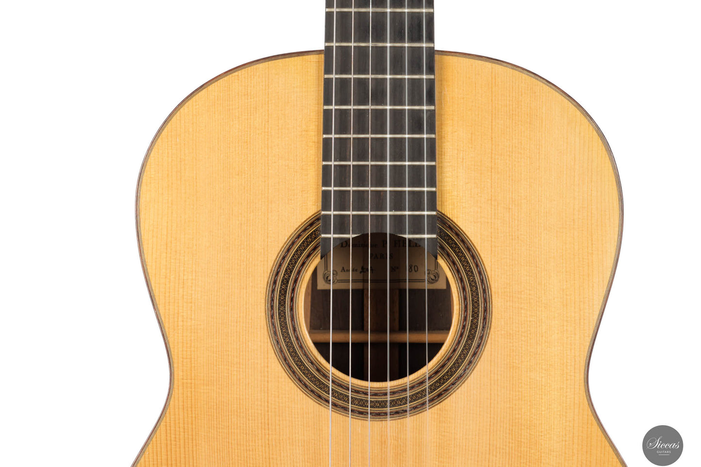 Dominique Field is one of the best guitar makers worldwide today. He builds guitars in the French guitar-making tradition with extraordinary artistry and a strong sound ideal. Due to the great demand, there is now a waiting period of 17 years for a guitar from Dominique Field. Especially current models are very rare to find and are played by leading international artists such as the 2018 Guitar Foundation of America competition winner Rafael Feuillatre.