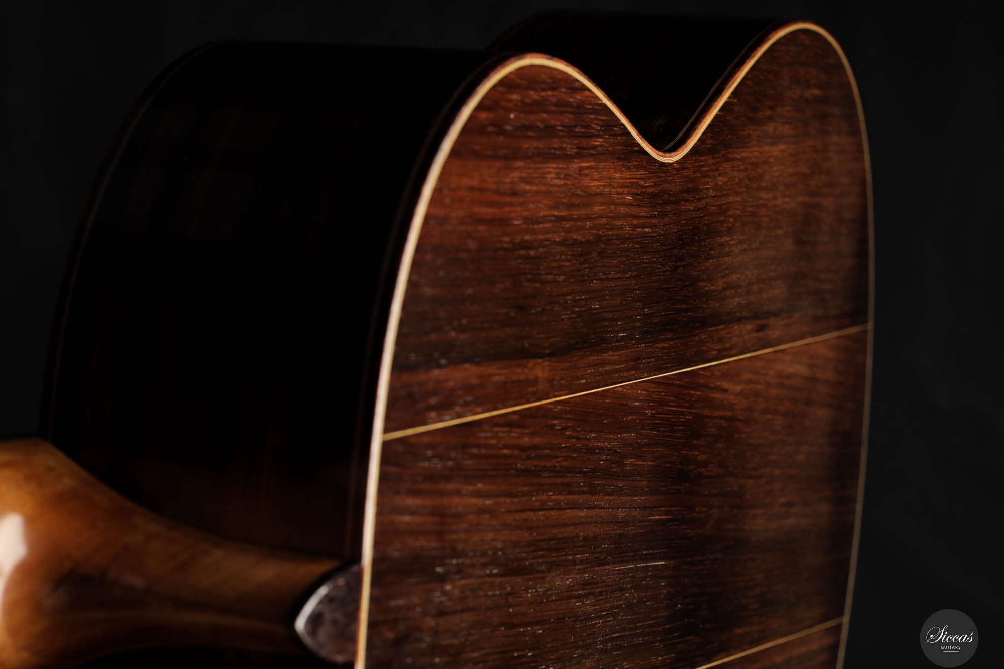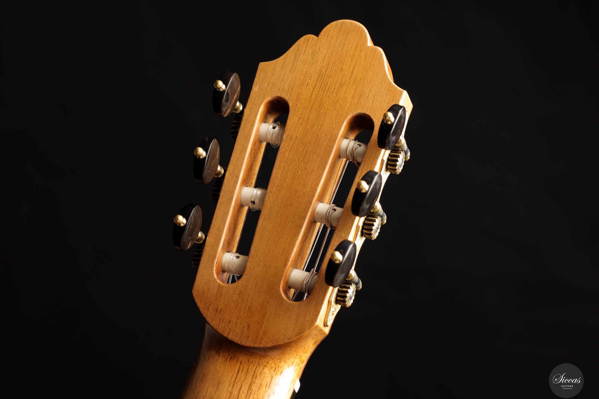 In terms of sound, this guitar embodies the excellence expected from a high-quality instrument. It produces an expressive sound with rich, resonant basses and sweet, melodious trebles, a combination that offers a delightful auditory experience. The playability of this guitar is outstanding, matched by its impressive responsiveness, making it clear that it was created by one of the most renowned guitar makers in the world. The craftsmanship is exceptionally fine and meticulous, reflecting a keen attention to detail, while its aesthetics are understated yet elegant, appealing to those who appreciate subtlety in design. This Dominique Field guitar is more than just an instrument; it is a remarkable piece that promises to bring joy and inspiration to any aficionado, blending superb playability with a timeless, elegant appearance.