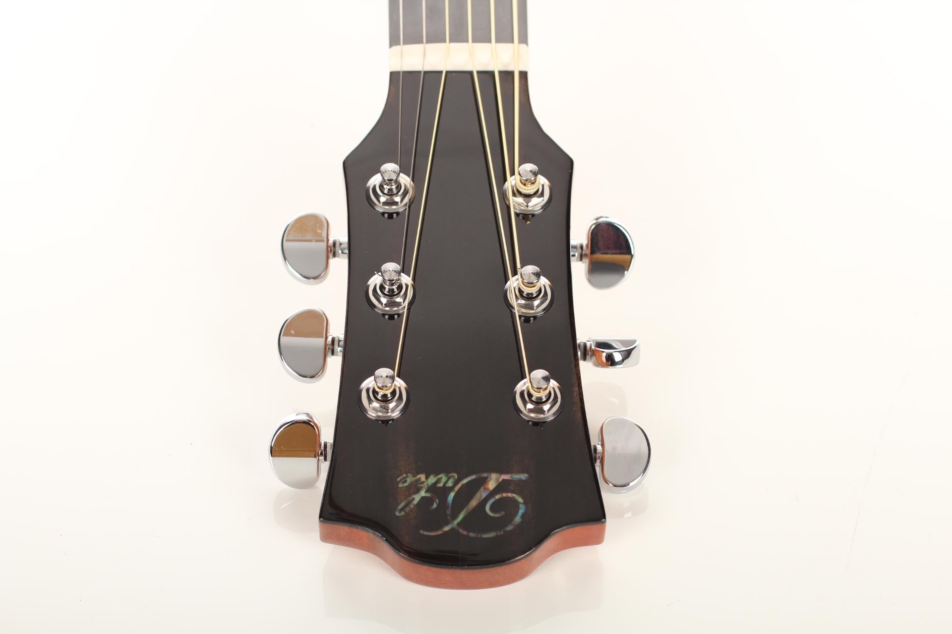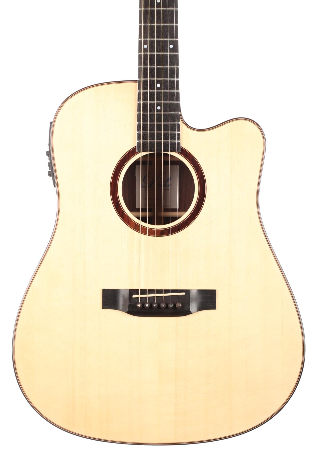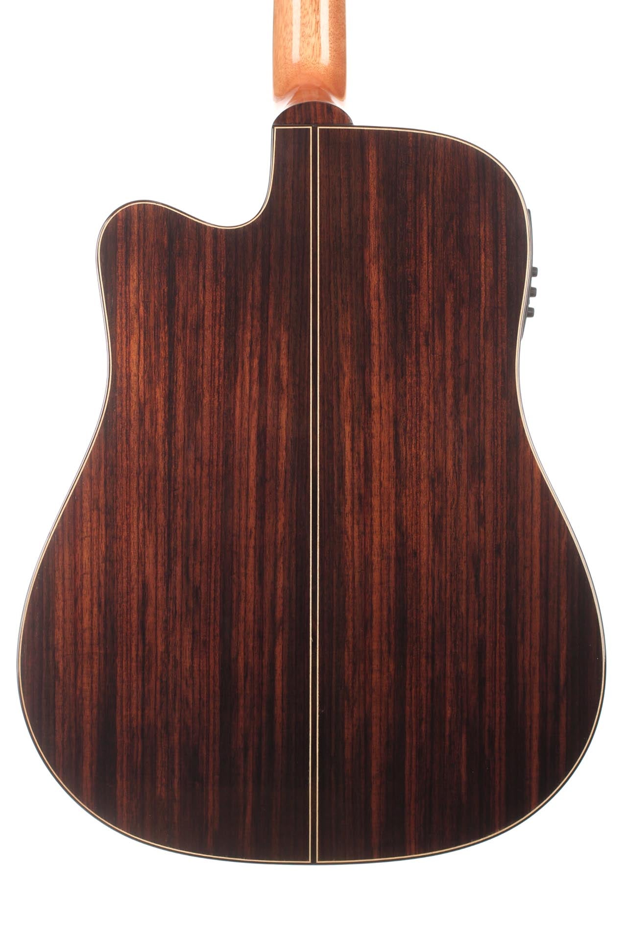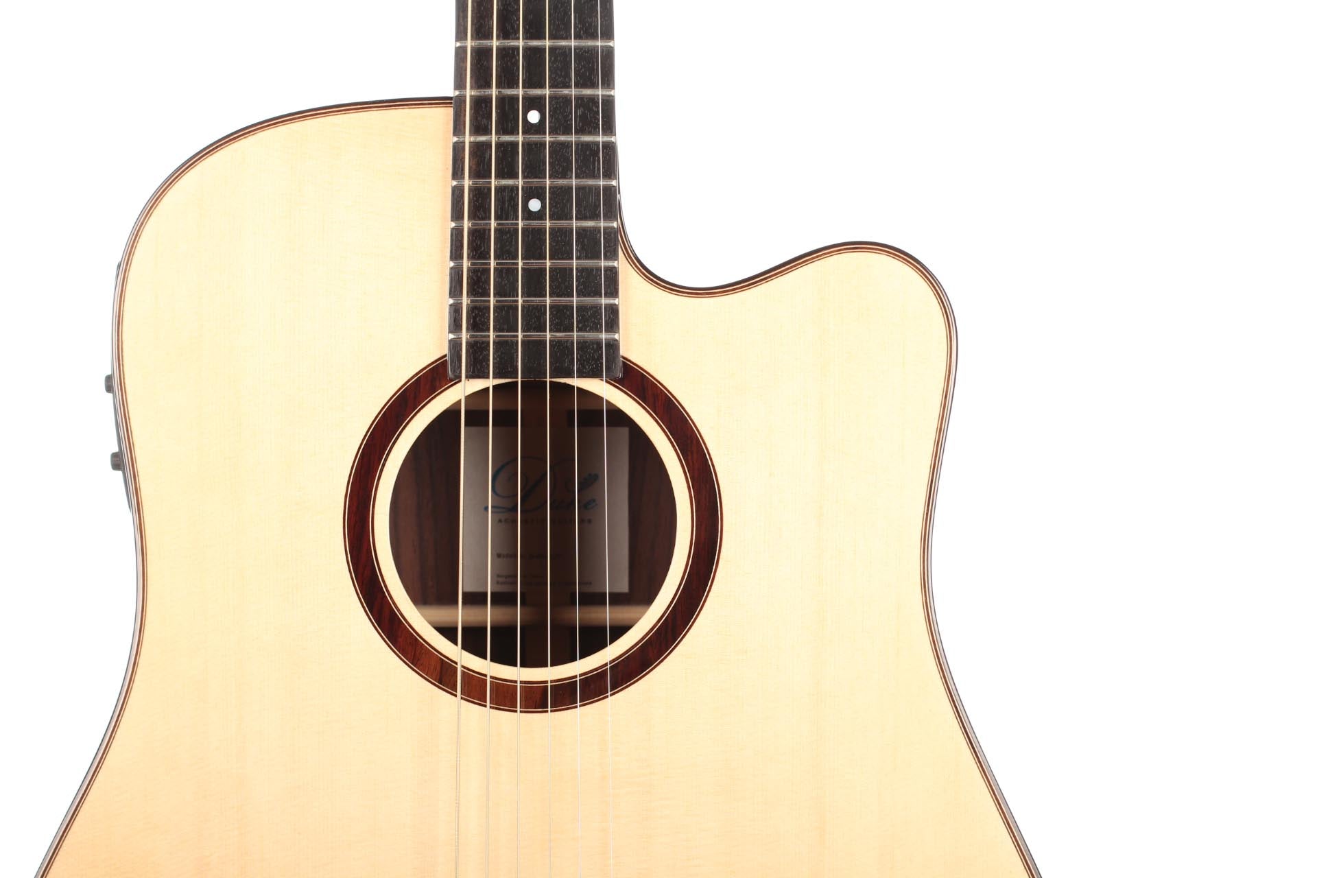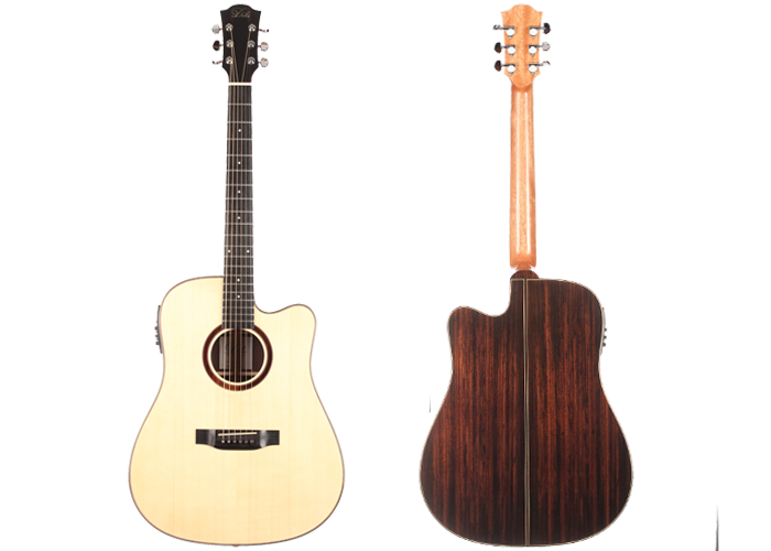 This Duke Dreadnought has an exceptional quality. It has a very powerful and equilibrated sound. This guitar is perfect for beginners and also professional players. The Duke D-PF-Cut has as solid spruce top and back and sides that are made of Indian rosewood. The guitars are refined with a high gloss finish. Included is a gig-bag by Duke.