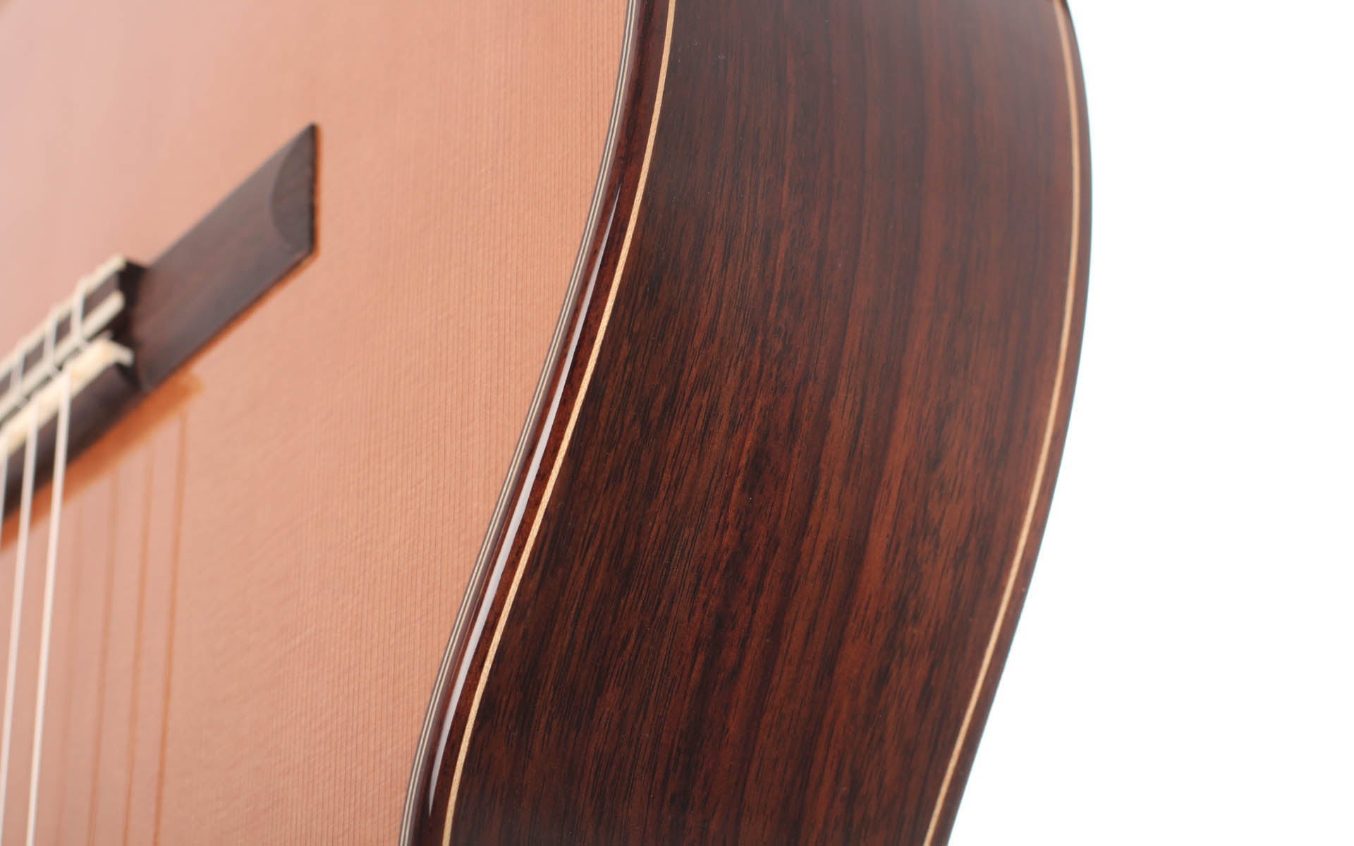 The classical guitar, with its soft nylon strings and characteristic timbre, has become a symbol of chamber music, Spanish tradition, and concert repertoire. Its modern form was shaped by Antonio de Torres in the 19th century, setting the standard for the body, fan bracing, and the 65-centimeter scale length that are still used today. Instruments in this category open up a rich palette from the refined Romantic miniatures of Tárrega to the majestic concertos of Rodrigo. Here you will find guitars that preserve historical continuity and at the same time inspire new interpretations.Look all products of the collection -
