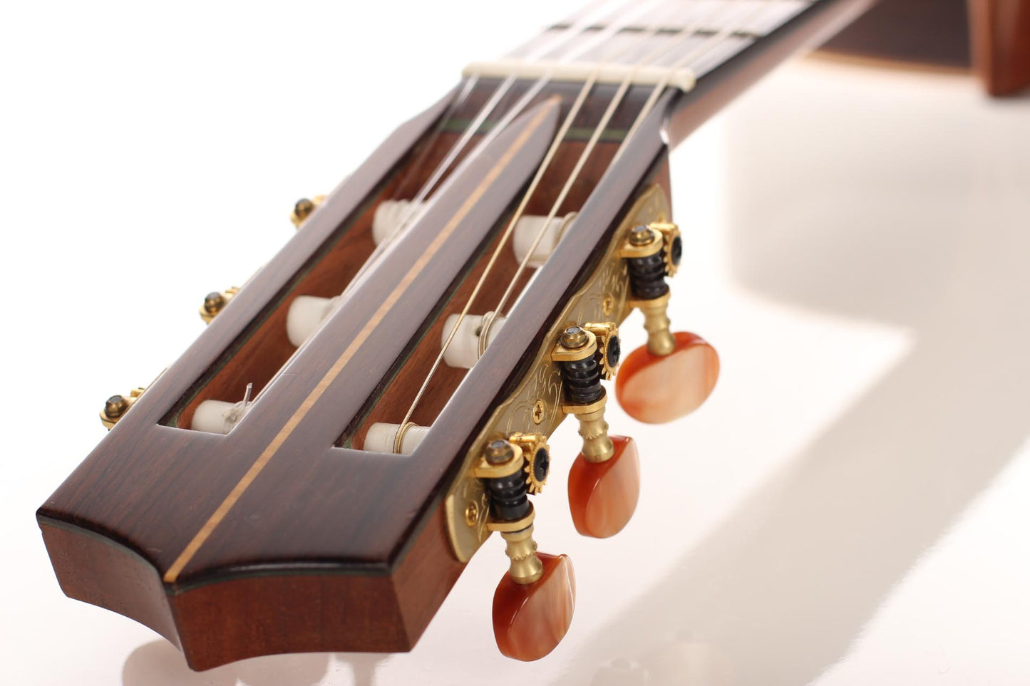Price on requestSaleLuthier: Hermann Hauser IIConstruction Year: 1956Construction Type: TraditionalTop: SpruceBack and Sides: Brazilian rosewood (CITES certified)Soundboard Finish: French polishBody Finish: French polishAir Body Frequency: F sharp / GWeight (g): 1440Tuner: LandstorferCondition: Excellent -
