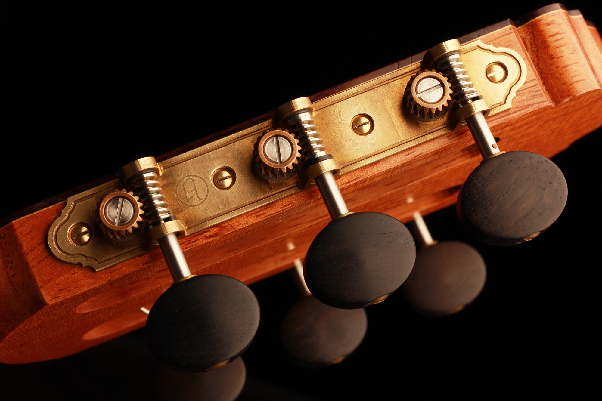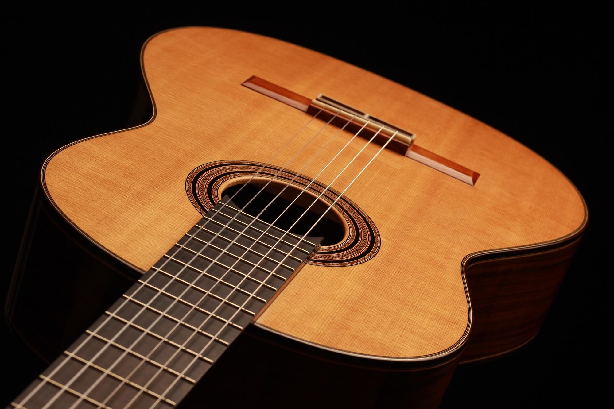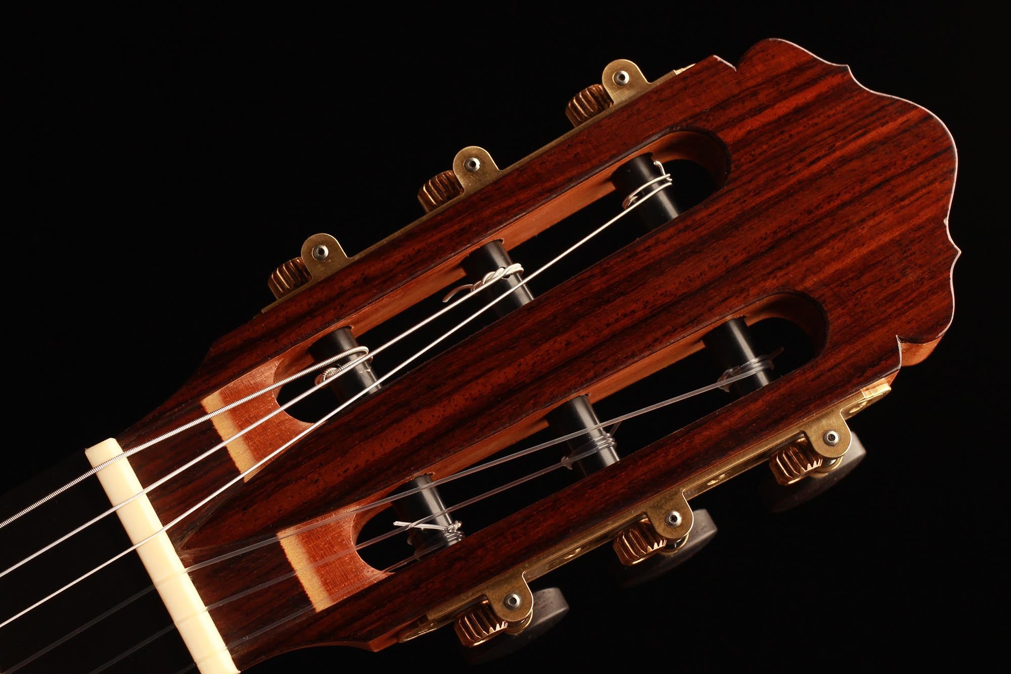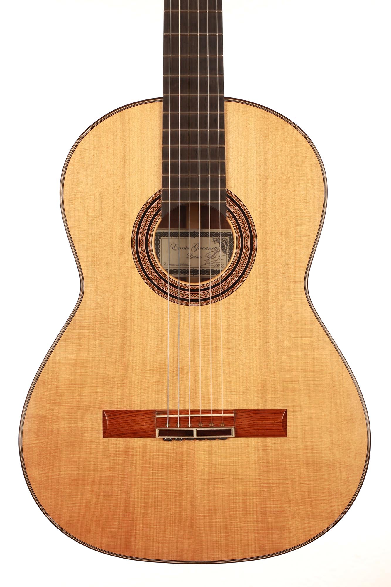 Ennio Giovanetti has been building guitars since 1998 and has his workshop in Sariano di Gropparello, near Piacenza (Italy). He studied guitar making in Milan with Enrico Bottelli, where he had the opportunity to get to know many guitars by Antonio de Torres, Simplicio, Garcia and many others. His guitars are built in the traditional way, but recognizable by their own elements. For example, behind the knotting block, a part was excavated to optimize the angle of the strings and thus promote vibrations.