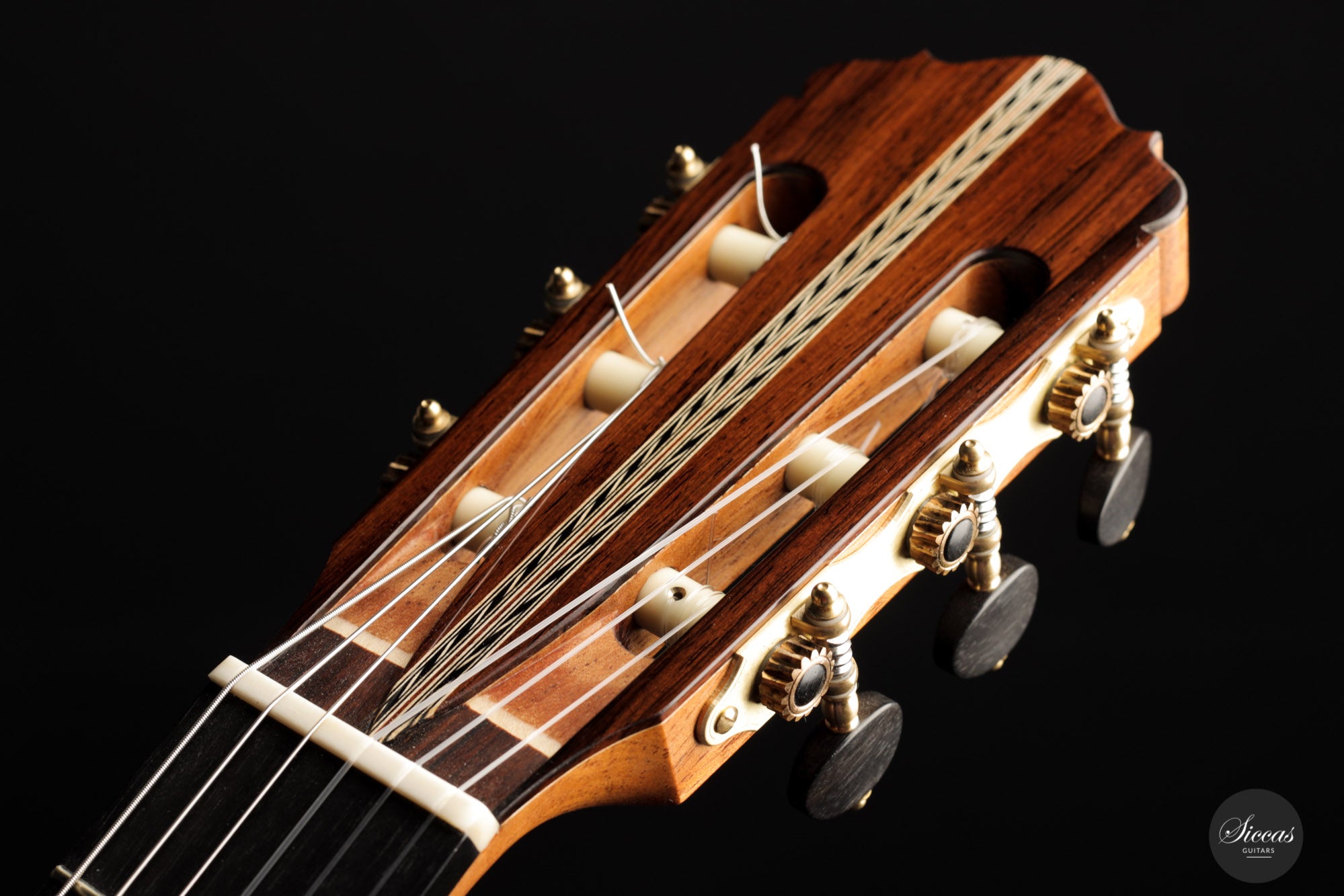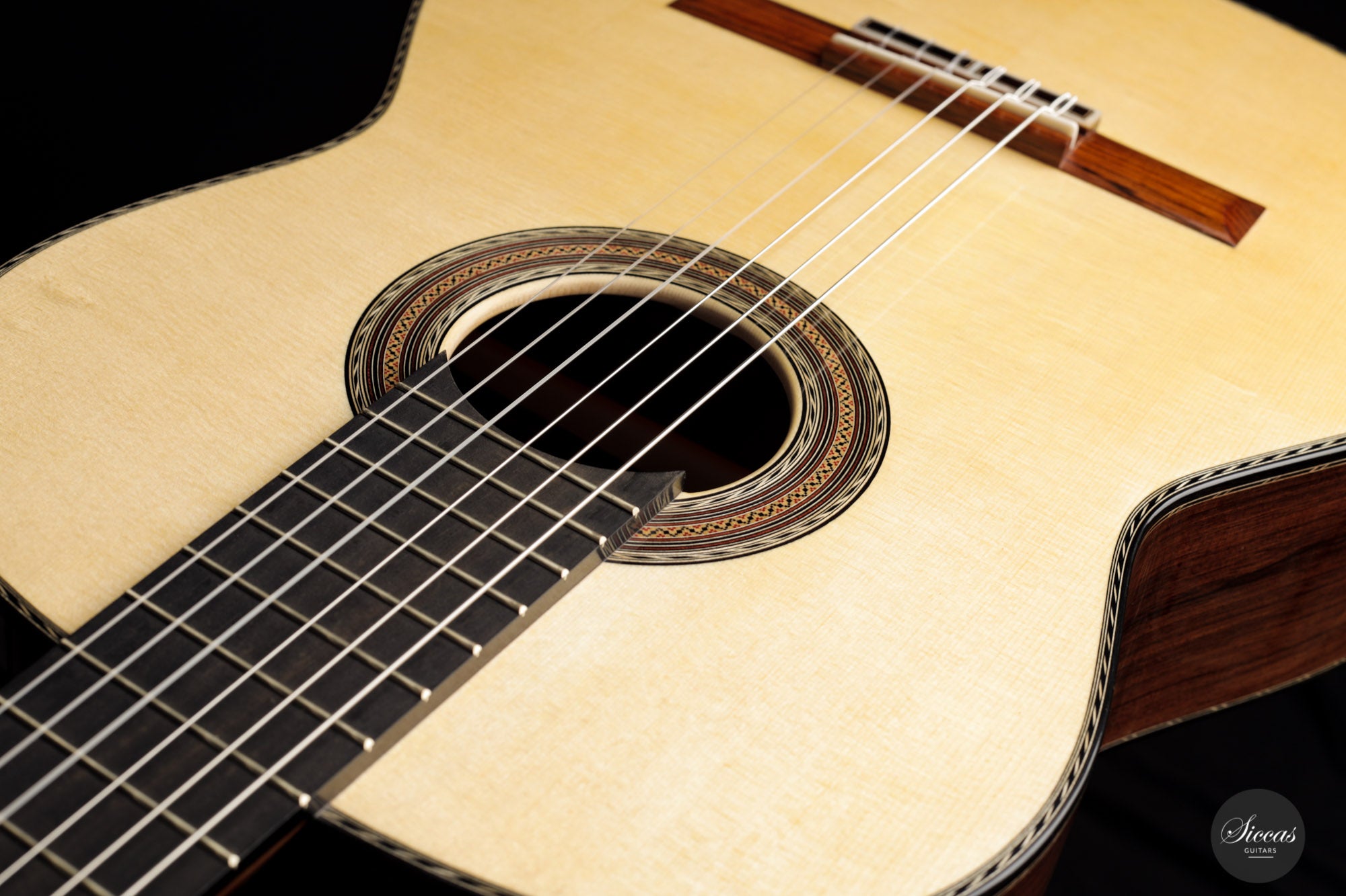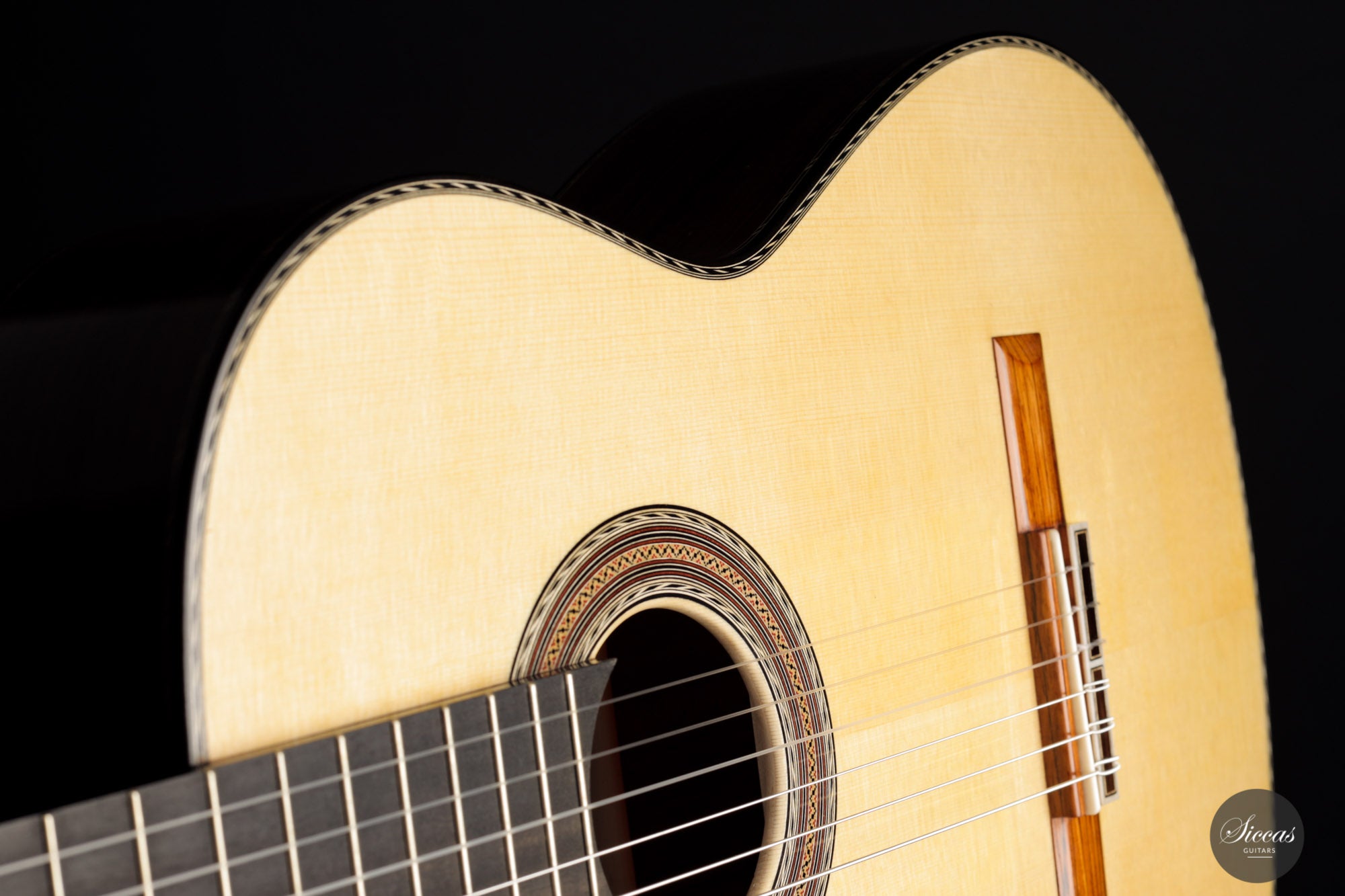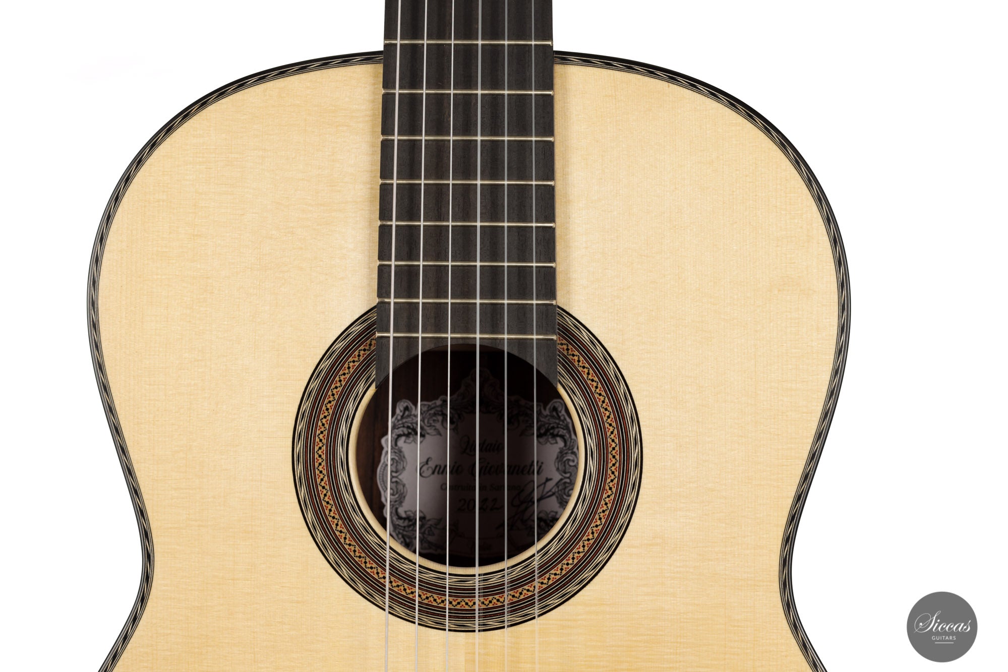Ennio Giovanetti has been building guitars since 1998 in his workshop in Sariano di Gropparello, near Piacenza (Italy). He studied guitar making in Milan with Enrico Bottelli, where he had the opportunity to get to know many guitars by Antonio de Torres, Simplicio, Garcia, and many others. His guitars are built in the traditional way but are well recognizable by their own elements. Behind the tie block, for example, a part of the bridge was excavated to optimize the angle of the strings and thus promote vibrations.