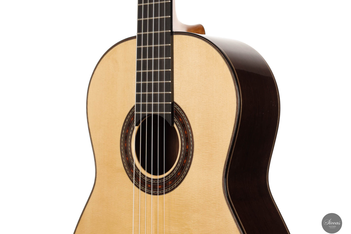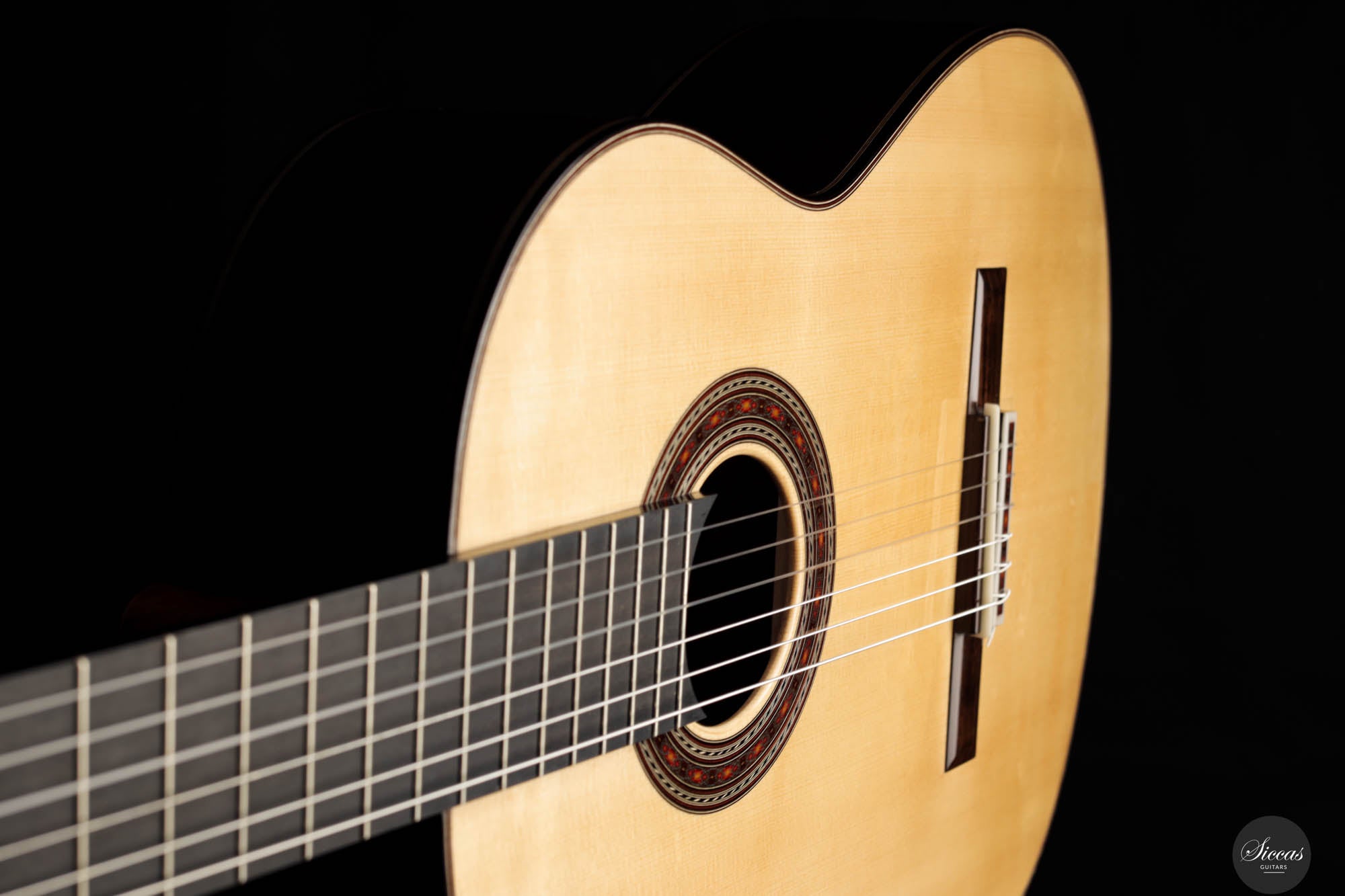 The classical guitar, with its soft nylon strings and characteristic timbre, has become a symbol of chamber music, Spanish tradition, and concert repertoire. Its modern form was shaped by Antonio de Torres in the 19th century, setting the standard for the body, fan bracing, and the 65-centimeter scale length that are still used today. Instruments in this category open up a rich palette from the refined Romantic miniatures of Tárrega to the majestic concertos of Rodrigo. Here you will find guitars that preserve historical continuity and at the same time inspire new interpretations.