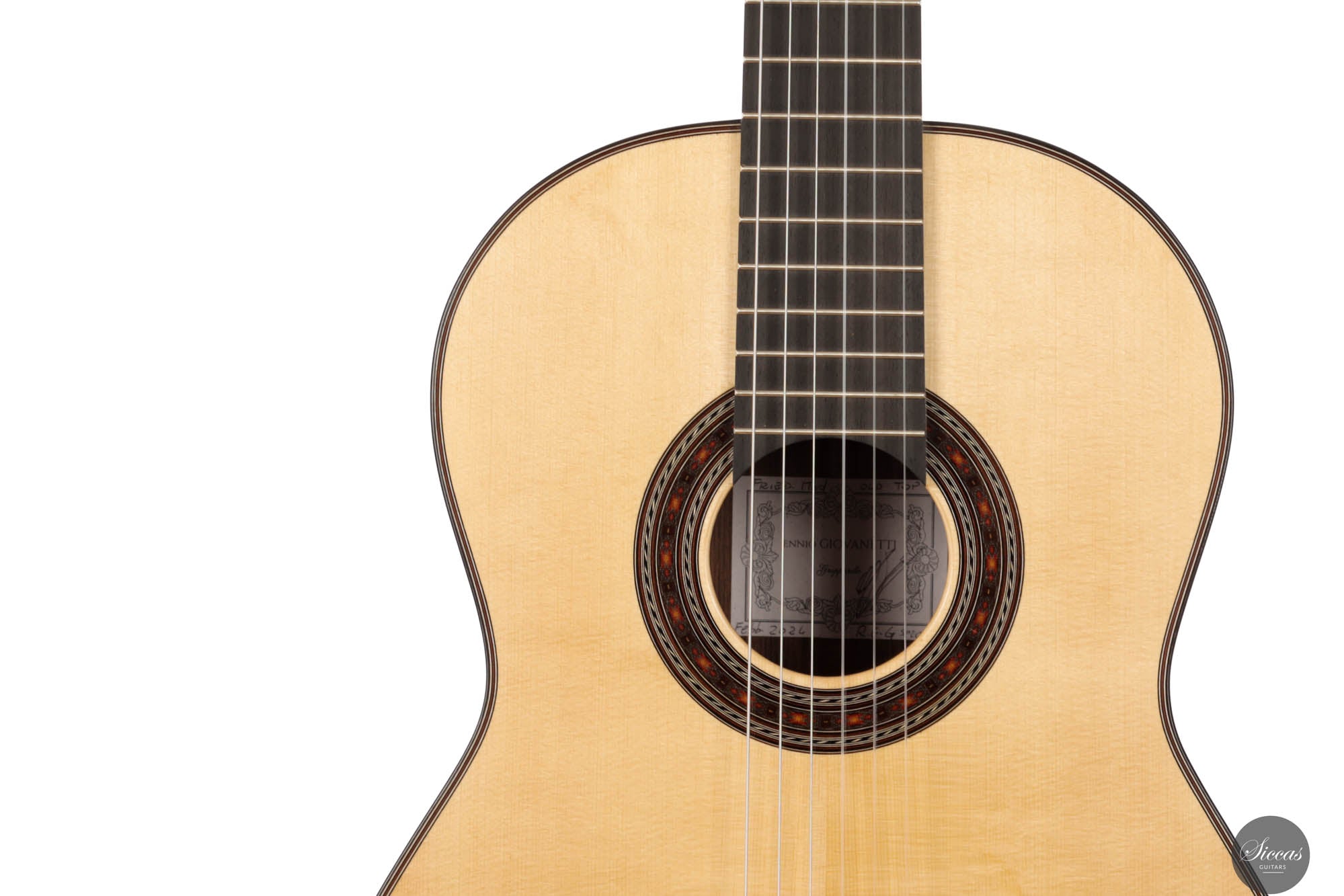 Ennio Giovanetti has been building guitars since 1998 in his Sariano di Gropparello workshop near Piacenza (Italy). He studied guitar making in Milan with Enrico Bottelli, where he got to know many guitars by Antonio de Torres, Simplicio, Garcia, and many others. His guitars are built traditionally but are well recognizable by their own elements.
