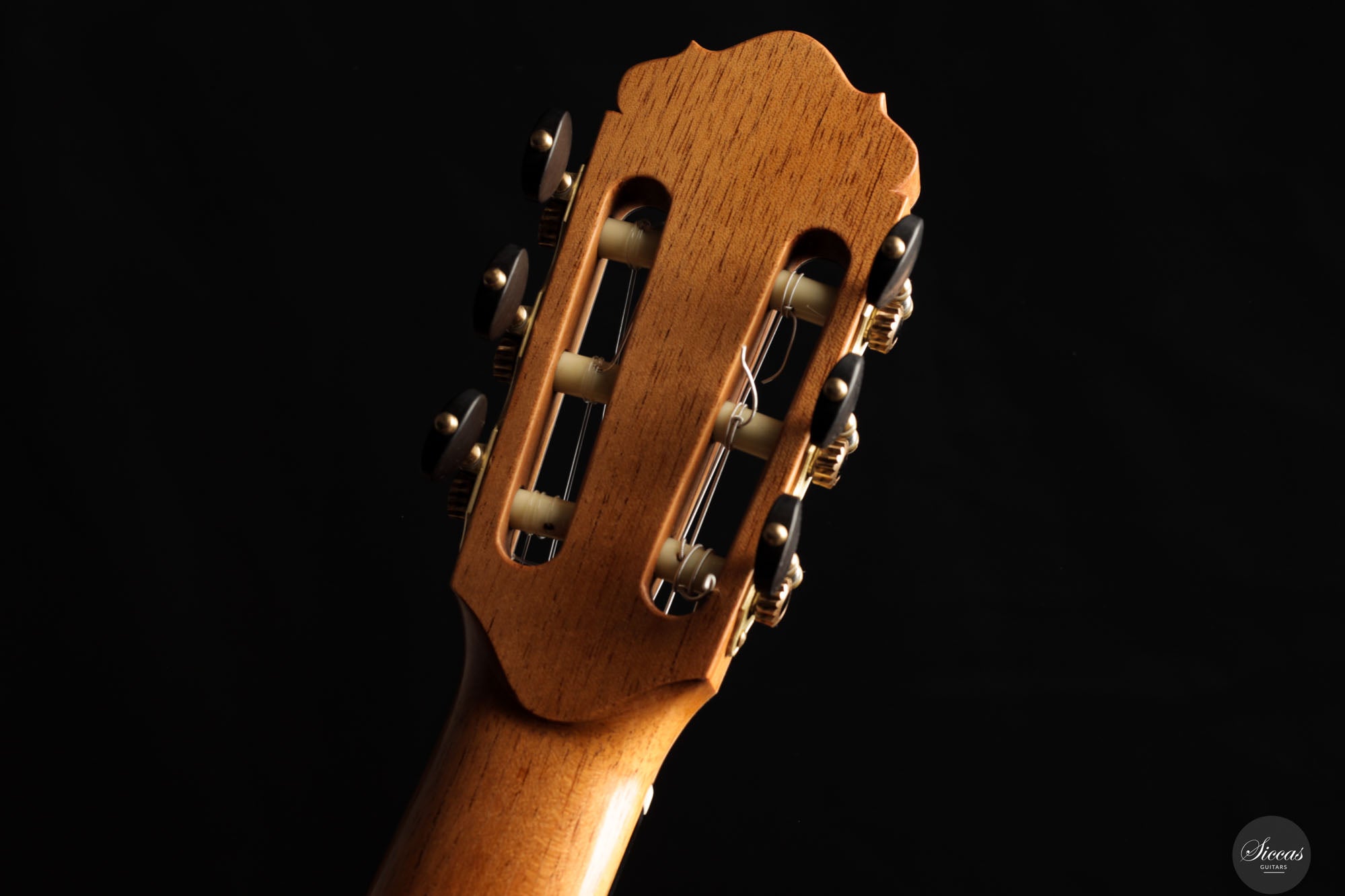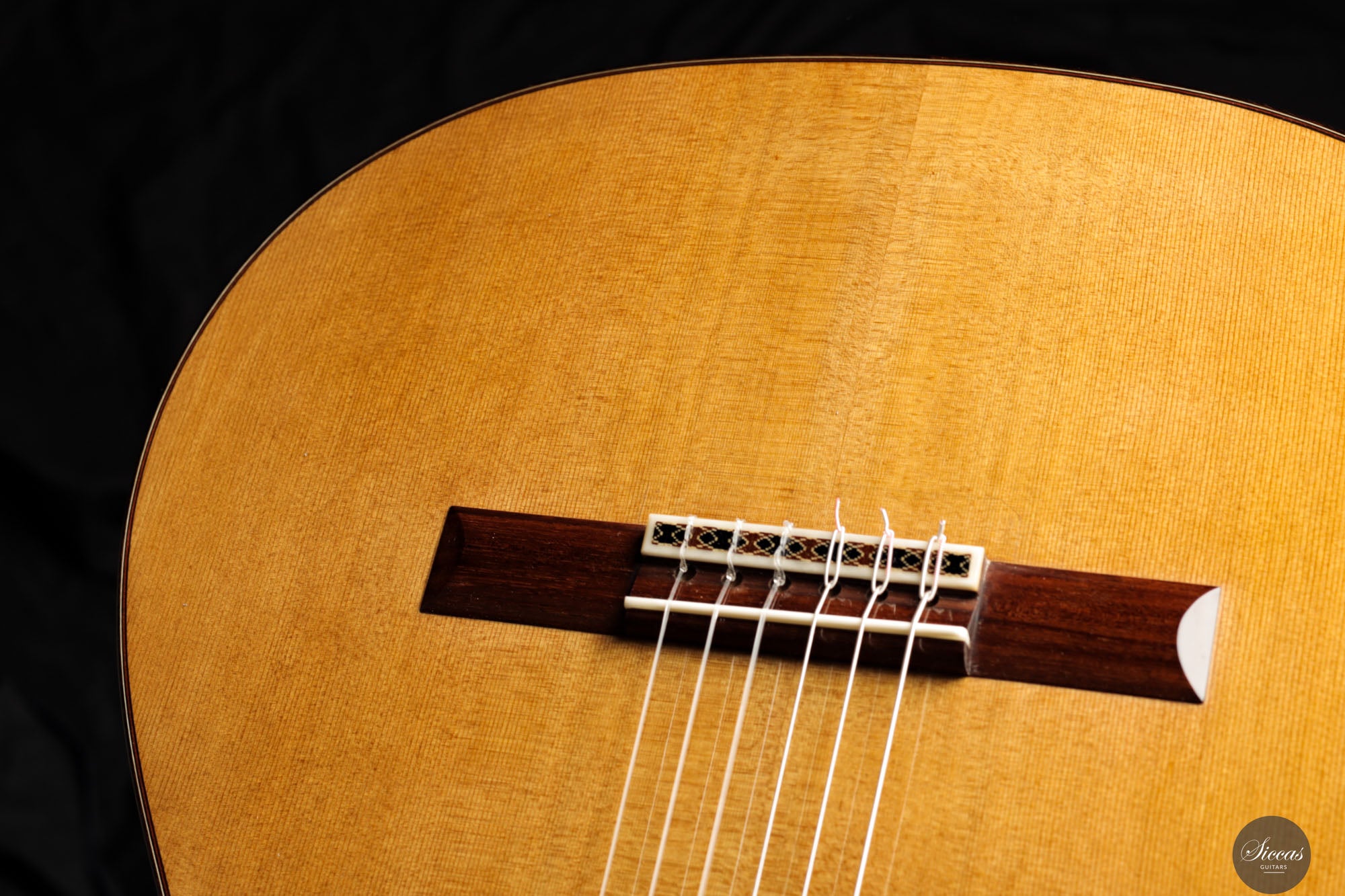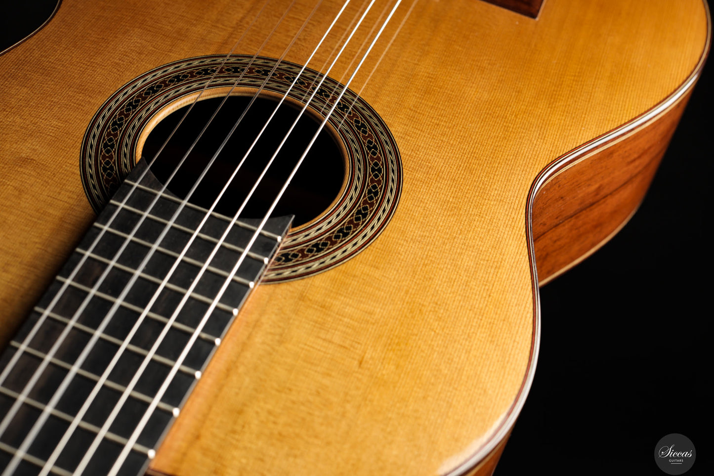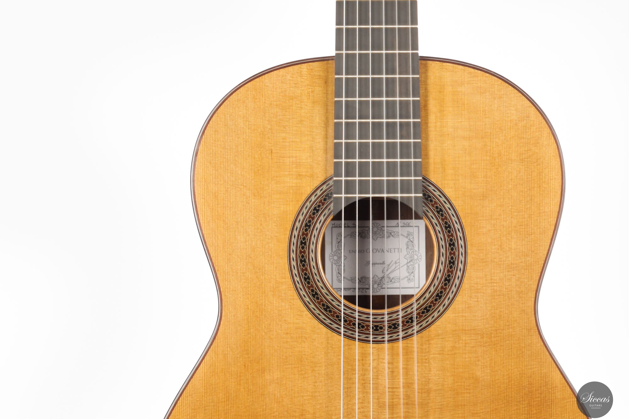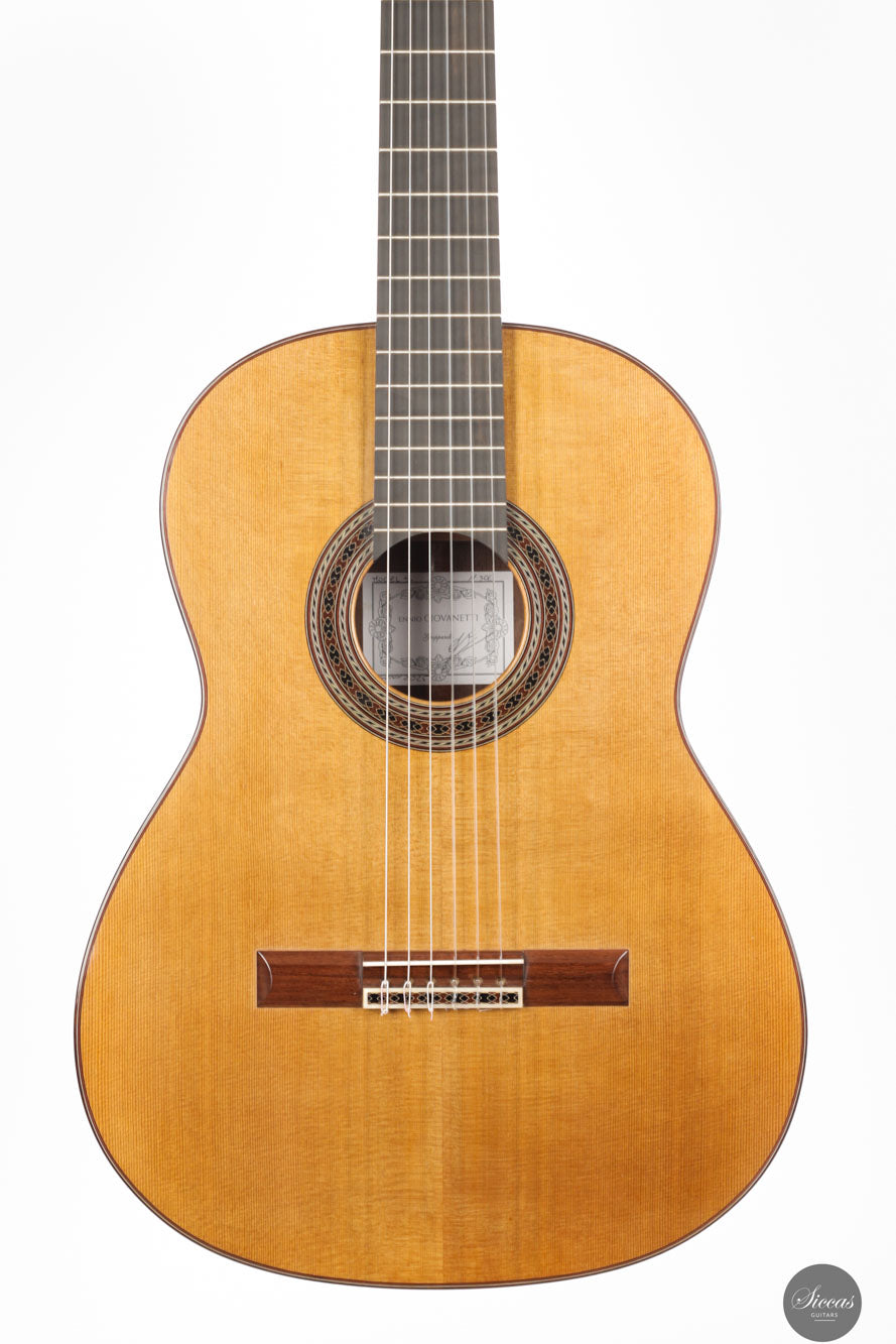 Ennio Giovanetti has been building guitars since 1998 in his workshop in Sariano di Gropparello, near Piacenza (Italy). He studied guitar making in Milan with Enrico Bottelli, where he got to know many guitars by Antonio de Torres, Simplicio, Garcia, and many others. His guitars are built traditionally but are well recognizable by their elements. Behind the tie block, for example, a part of the bridge was excavated to optimize the angle of the strings and thus promote vibrations.