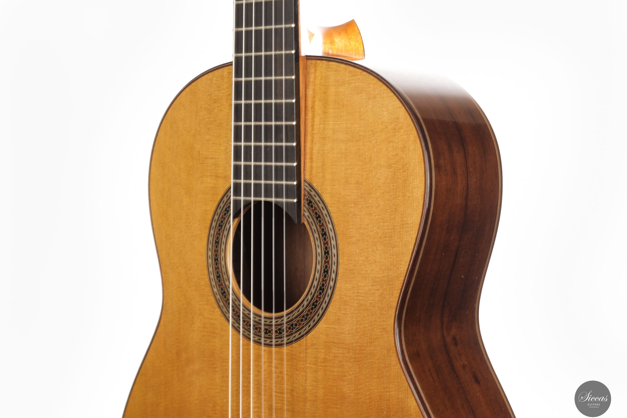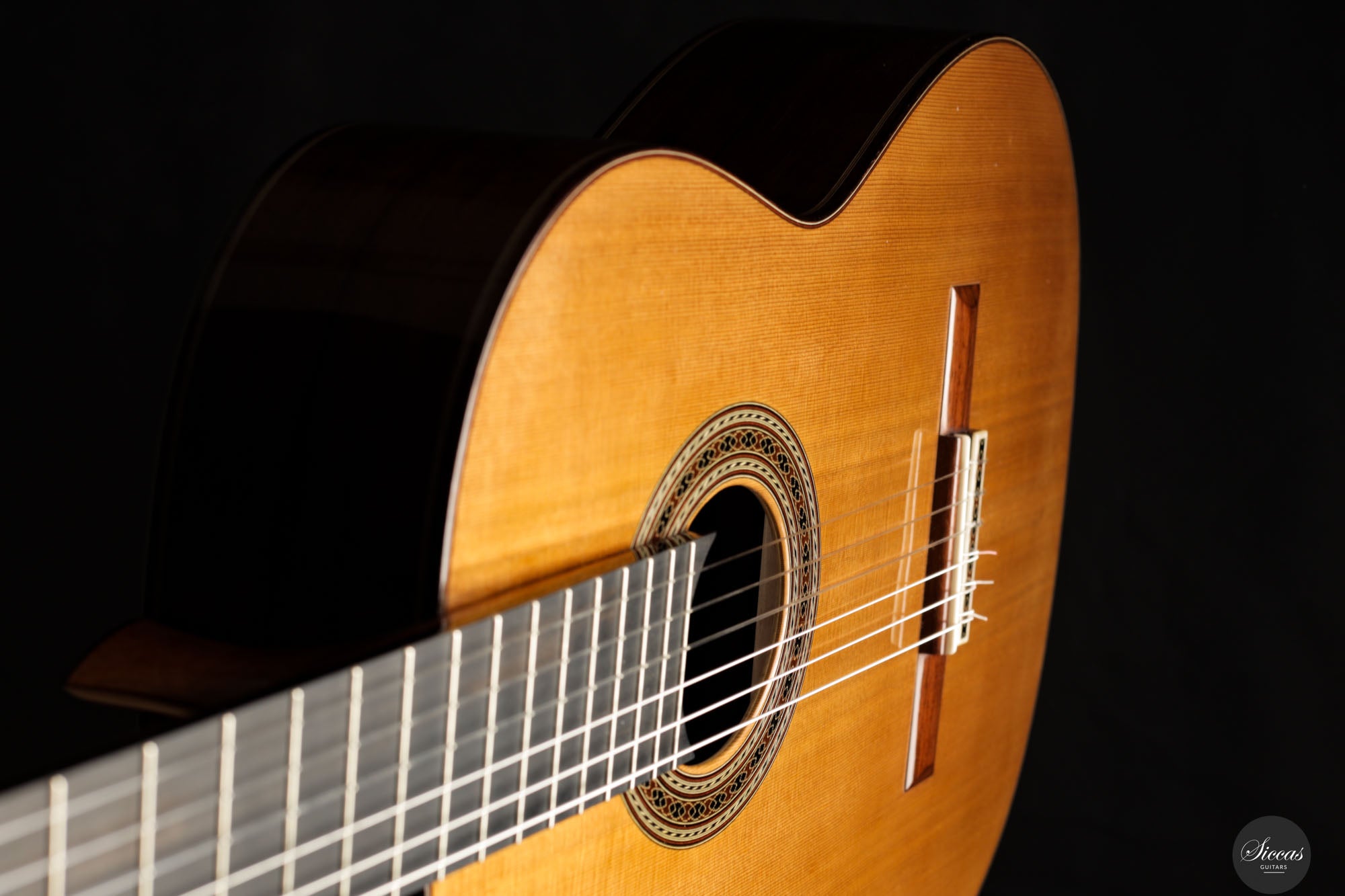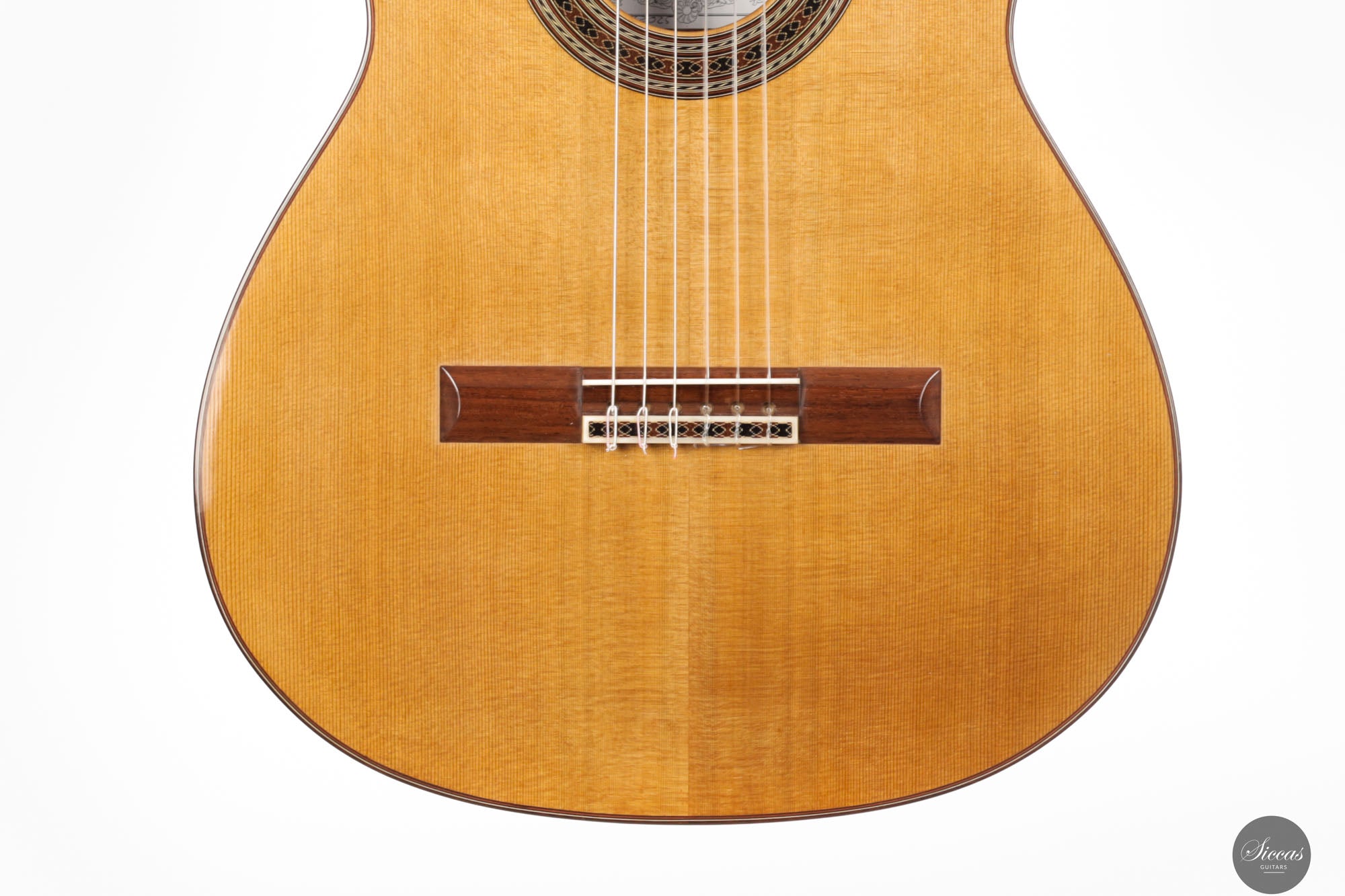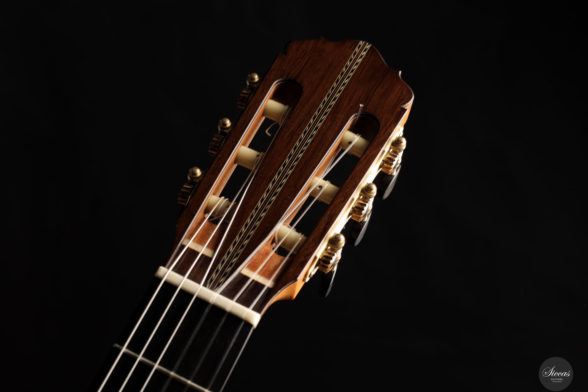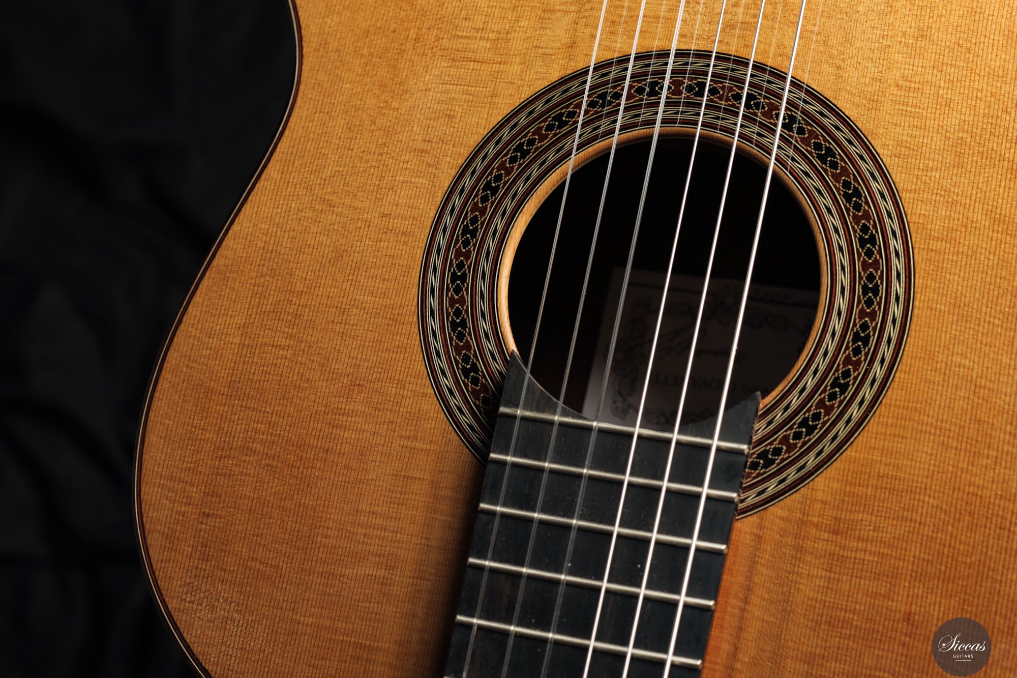 Ennio Giovanetti has been building guitars since 1998 in his workshop in Sariano di Gropparello, near Piacenza (Italy). He studied guitar making in Milan with Enrico Bottelli, where he got to know many guitars by Antonio de Torres, Simplicio, Garcia, and many others. His guitars are built traditionally but are well recognizable by their elements. Behind the tie block, for example, a part of the bridge was excavated to optimize the angle of the strings and thus promote vibrations.
