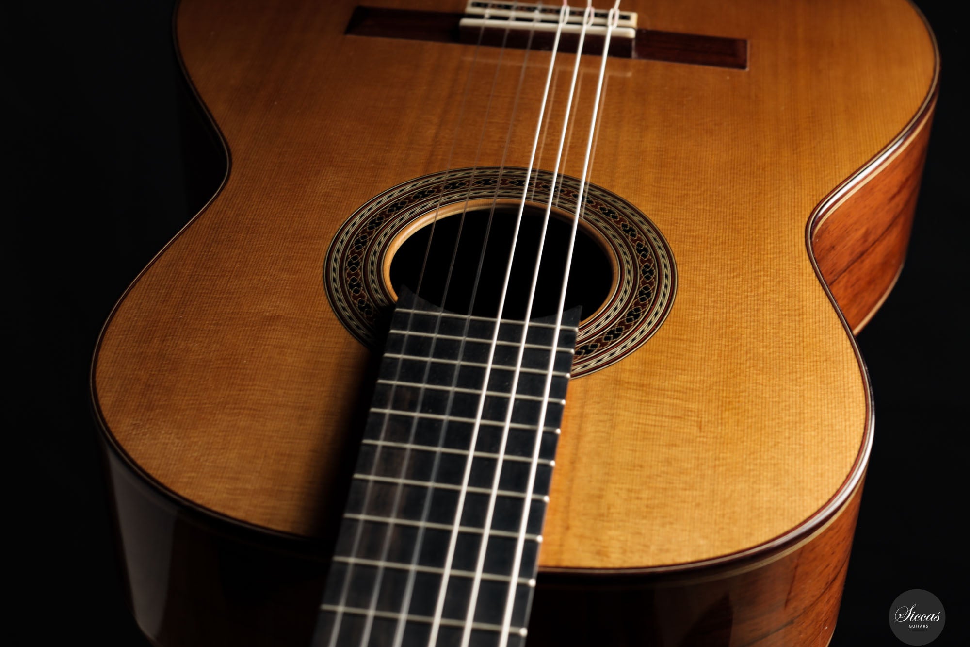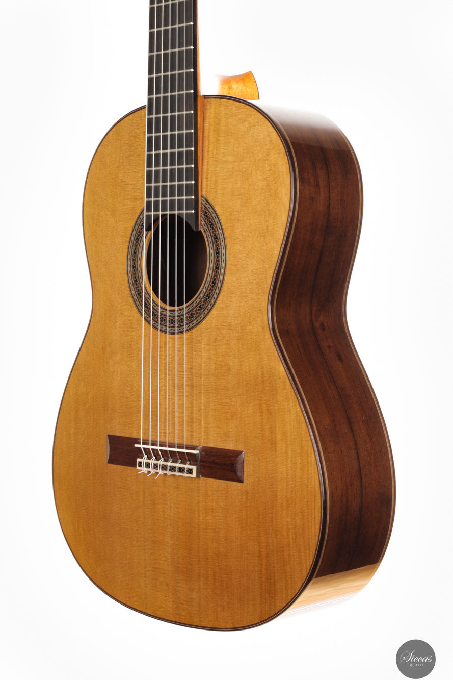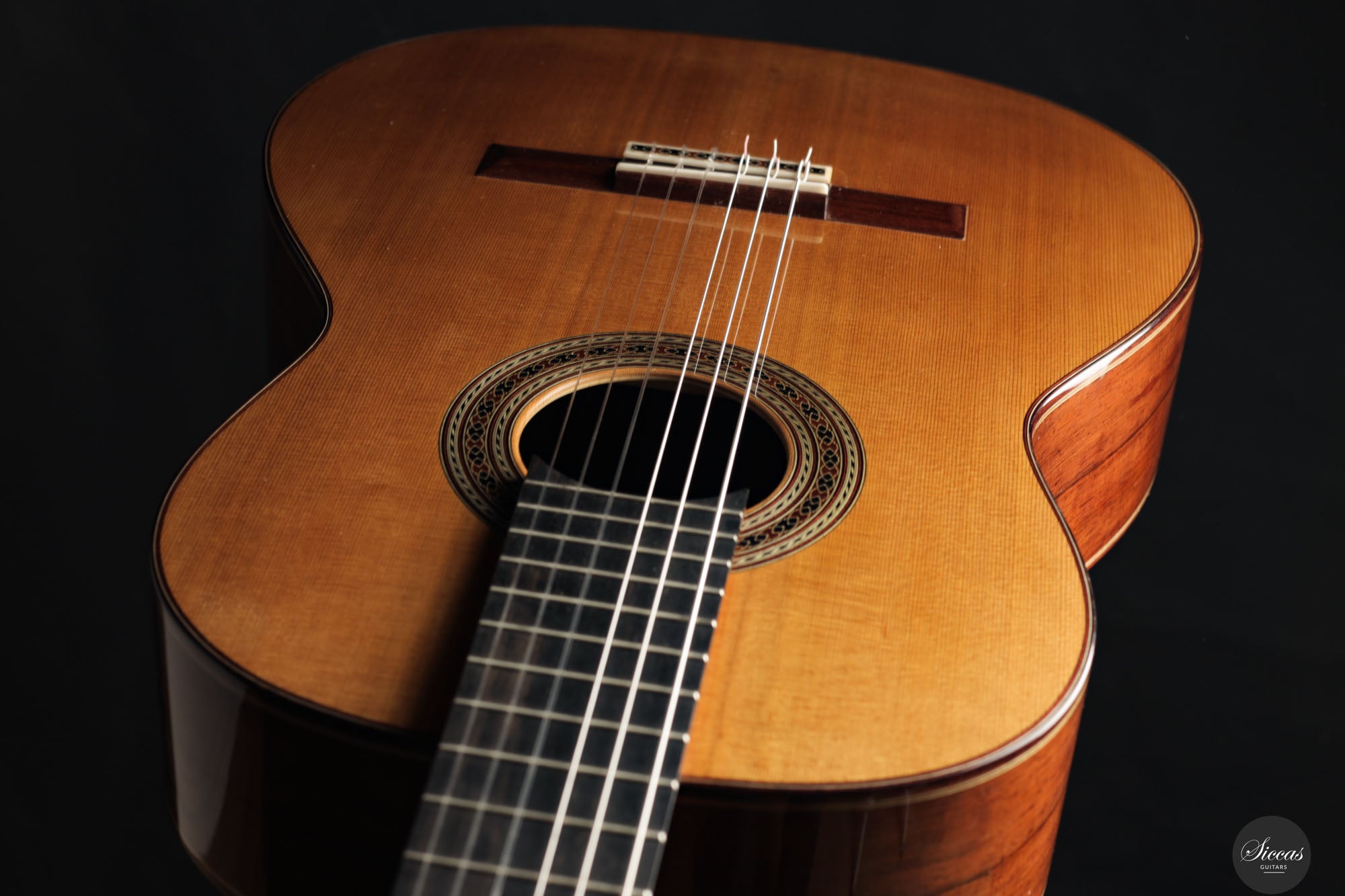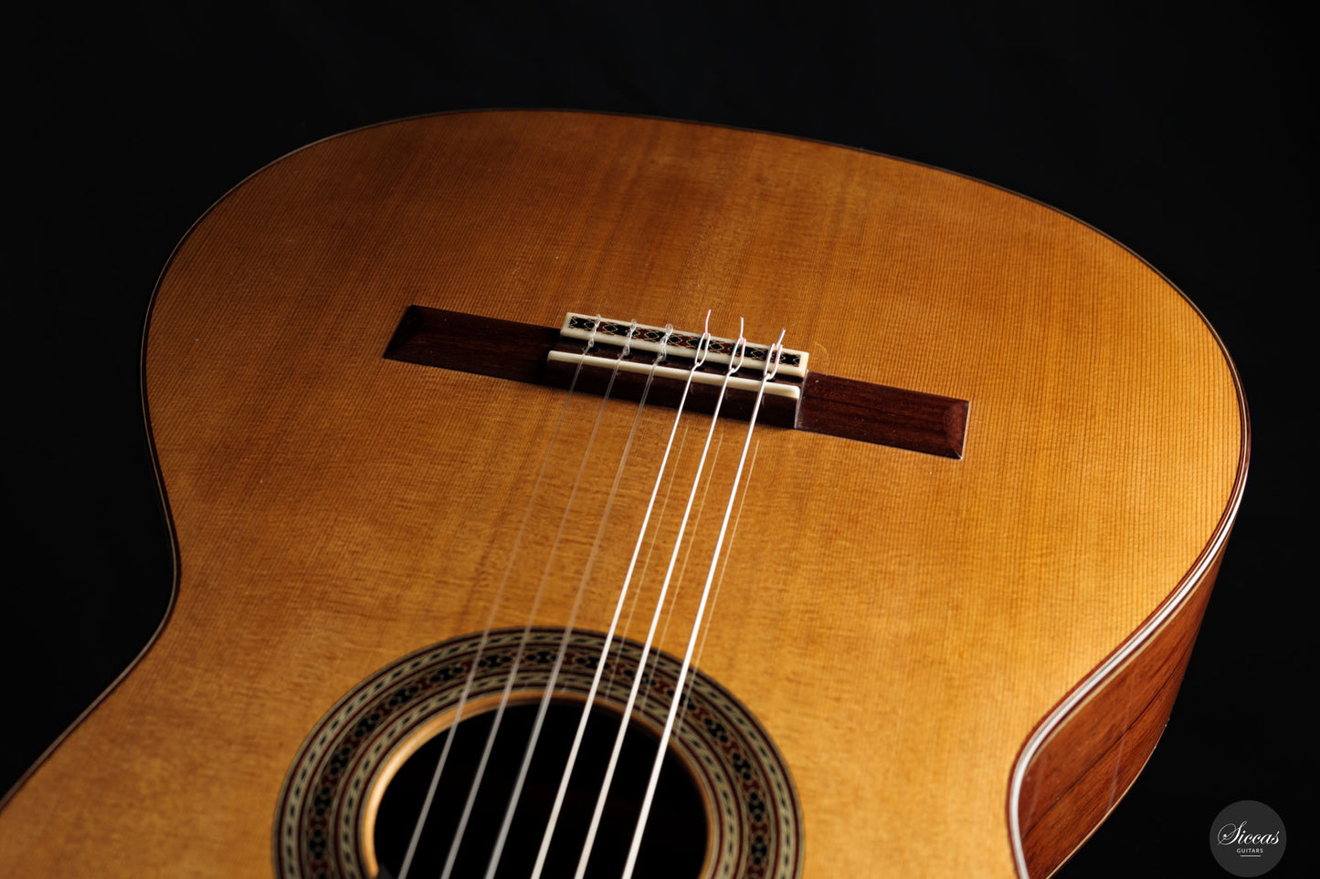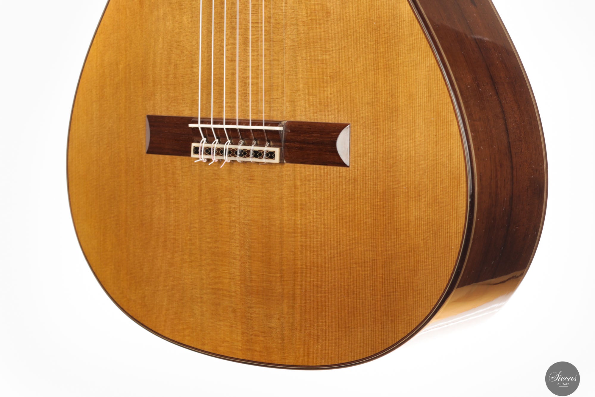 Ennio Giovanetti has been building guitars since 1998 in his workshop in Sariano di Gropparello, near Piacenza (Italy). He studied guitar making in Milan with Enrico Bottelli, where he got to know many guitars by Antonio de Torres, Simplicio, Garcia, and many others. His guitars are built traditionally but are well recognizable by their elements. Behind the tie block, for example, a part of the bridge was excavated to optimize the angle of the strings and thus promote vibrations.
