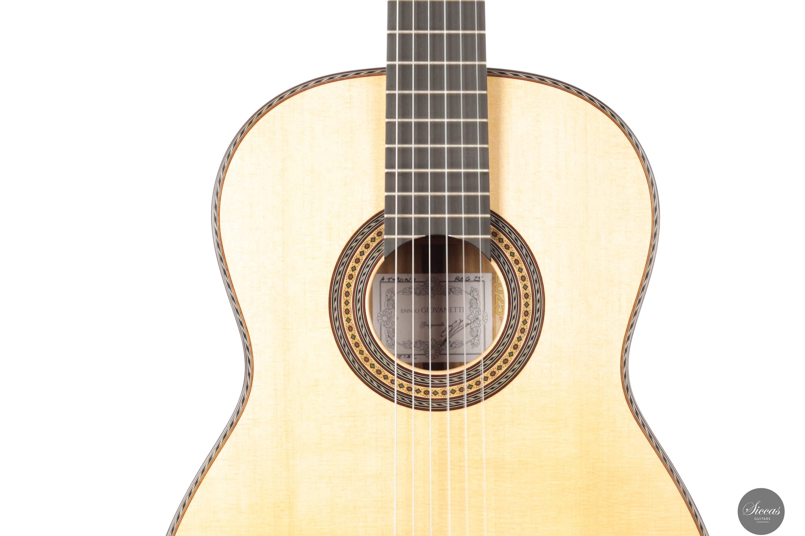Italian luthier Ennio Giovanetti studied violin making in Milan, but eventually turned his focus to building classical concert guitars after discovering the unique expressive and tonal depth that the instrument offers. He began exploring the works of Antonio de Torres, Hermann Hauser, Enrique Garcia, and Francisco Simplicio, while also applying the craftsmanship ideals of historic violin making to his guitars. He studied under Enrico Bottelli and had the opportunity to examine many important historical guitars during his formative years.