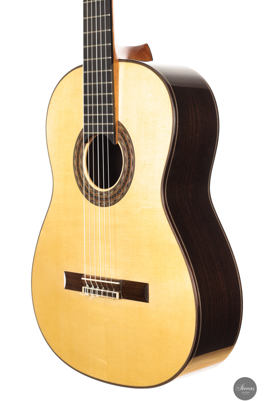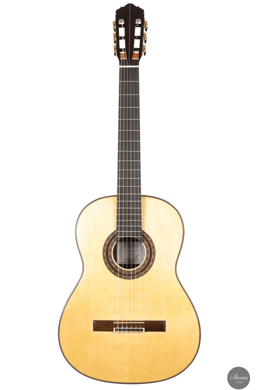 A new 2025 Ennio Giovanetti with spruce and Indian rosewood offering a sweet smiling tone, powerful projection and long sustain. Responsive and colour rich, it encourages expressive phrasing and effortless musical flow.