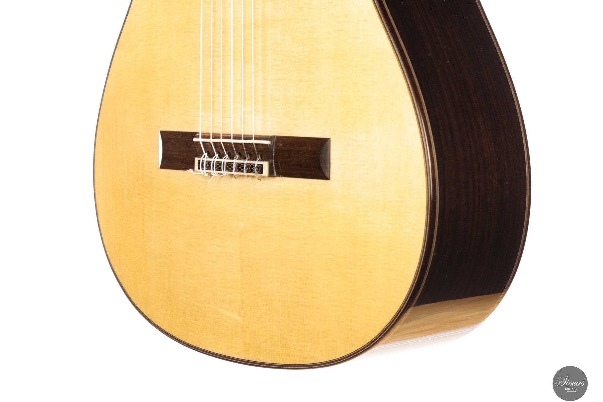The sound presents a sweet and smiling quality with an immediate sense of charm. The guitar is powerful yet never aggressive. It projects freely and maintains a warm presence that makes playing feel natural and intuitive. The balance across registers is excellent and the instrument speaks with clarity that supports both polyphonic transparency and lyrical single line playing. The sustain is long and the guitar offers many possibilities for shaping lines and guiding the different layers of a piece. It responds quickly, allows colours to appear with very little right hand movement and creates a musical texture that feels both open and expressive. This is a guitar that rewards the player with a sense of freedom and encourages personal interpretation.