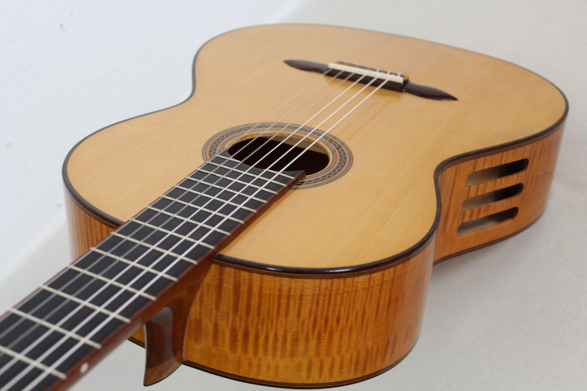 The classical guitar, with its soft nylon strings and characteristic timbre, has become a symbol of chamber music, Spanish tradition, and concert repertoire. Its modern form was shaped by Antonio de Torres in the 19th century, setting the standard for the body, fan bracing, and the 65-centimeter scale length that are still used today. Instruments in this category open up a rich palette from the refined Romantic miniatures of Tárrega to the majestic concertos of Rodrigo. Here you will find guitars that preserve historical continuity and at the same time inspire new interpretations.Look all products of the collection -