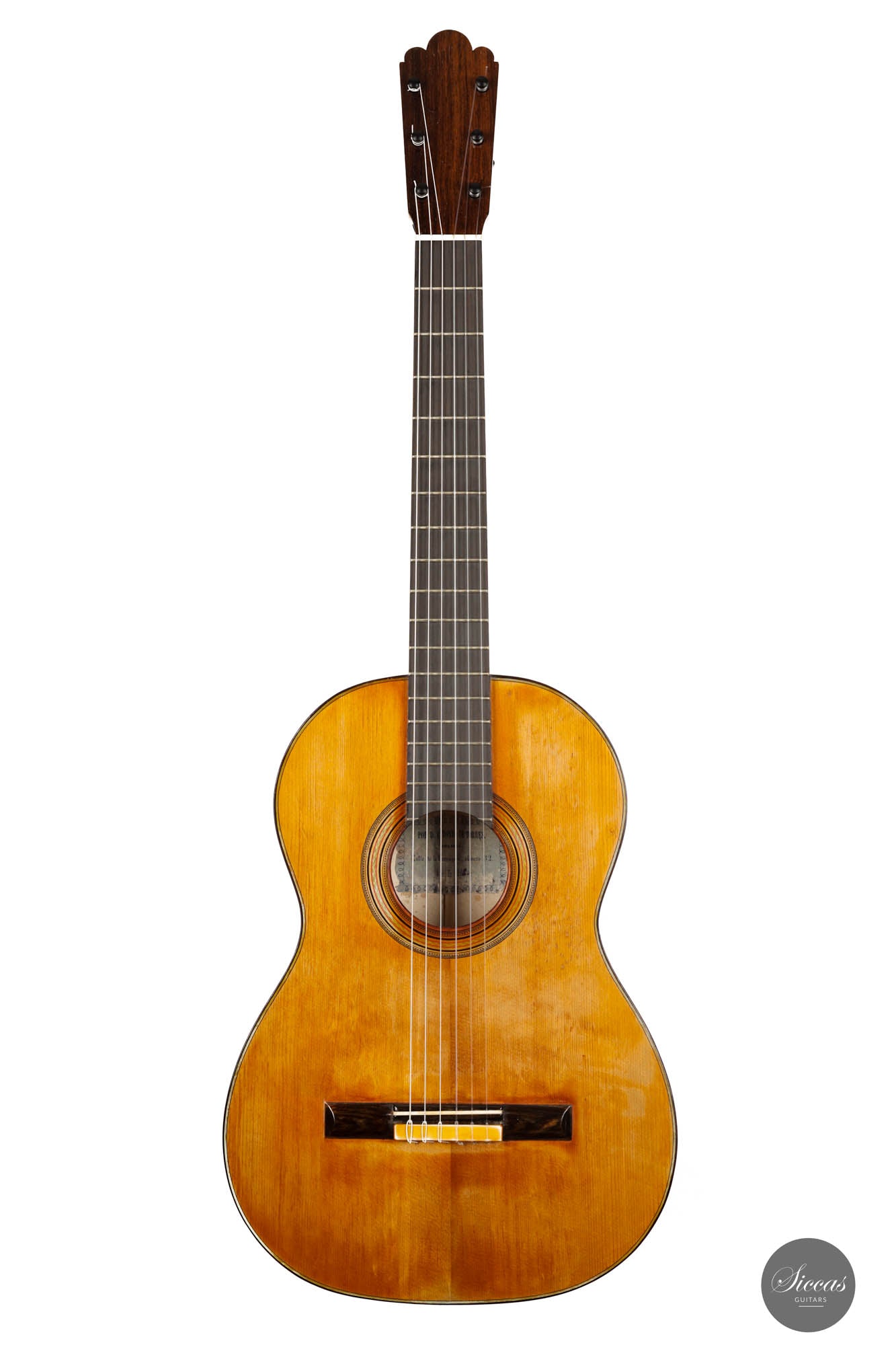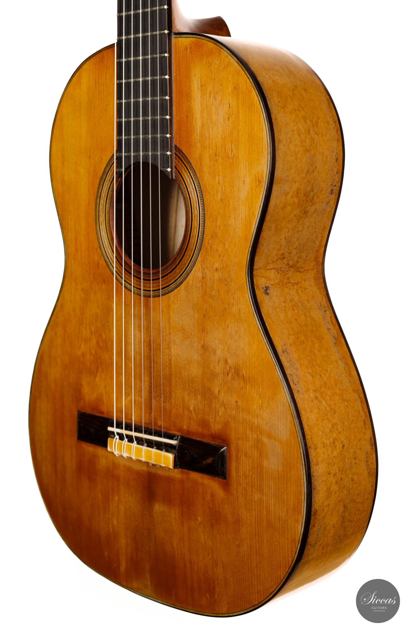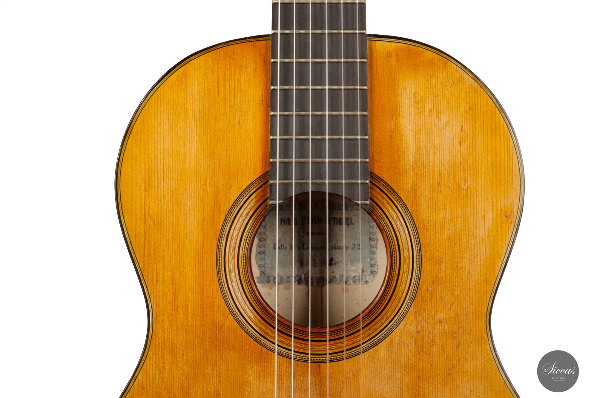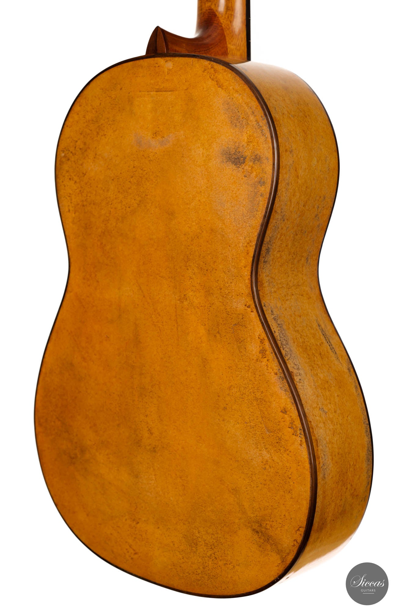 Fabio Zontini initiated the production of this replica back in 2005, meticulously shaping it to echo the design and feel of the original Torres FE14. Ideal for aficionados of delicate Spanish music like Tarrega, this guitar stands out as an intimate instrument offering an unrivaled acoustic experience. This Fabio Zontini "Antonio de Torres Papier Mache FE14" guitar is a tribute to musical history and a testament to Zontini's exceptional craftsmanship.