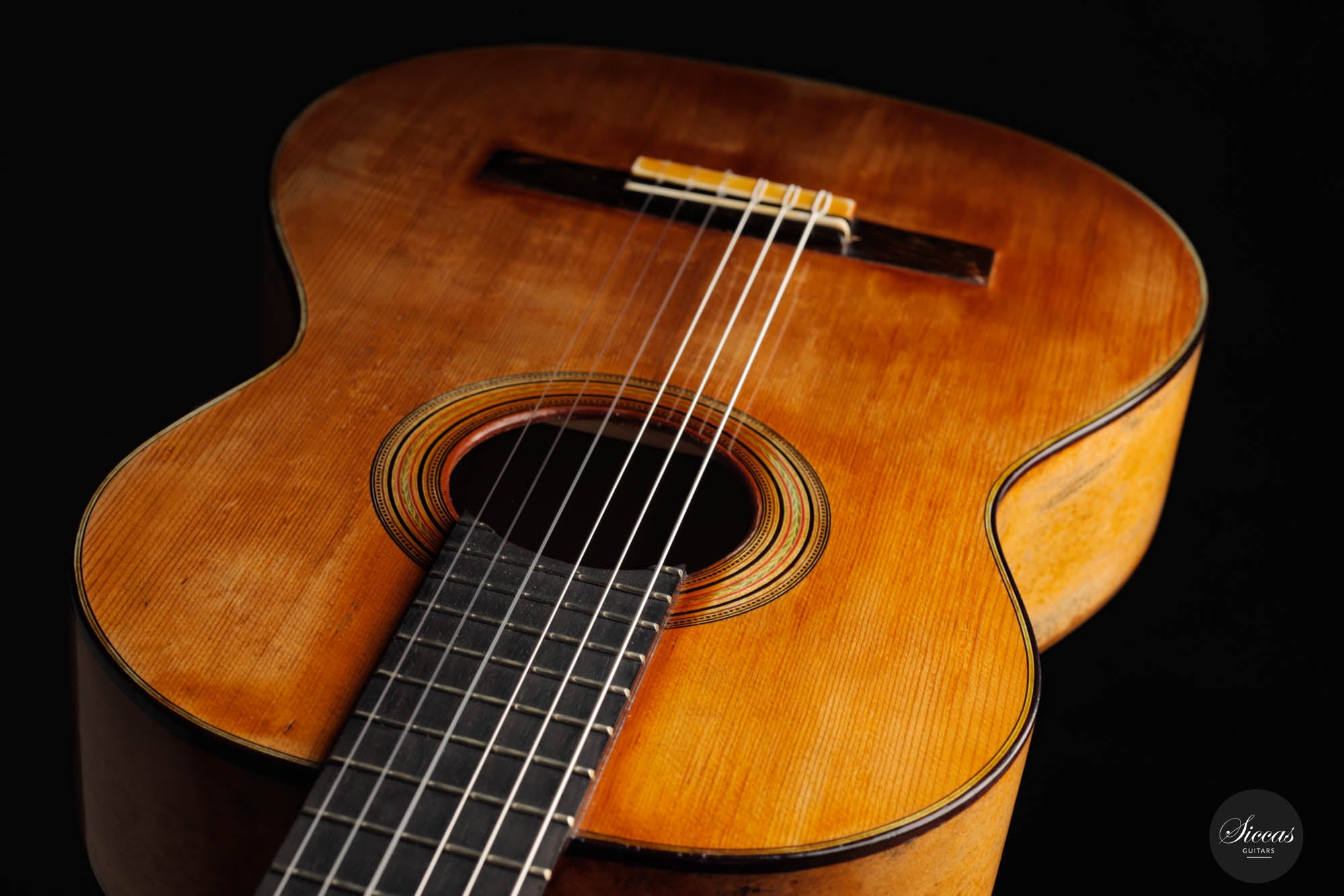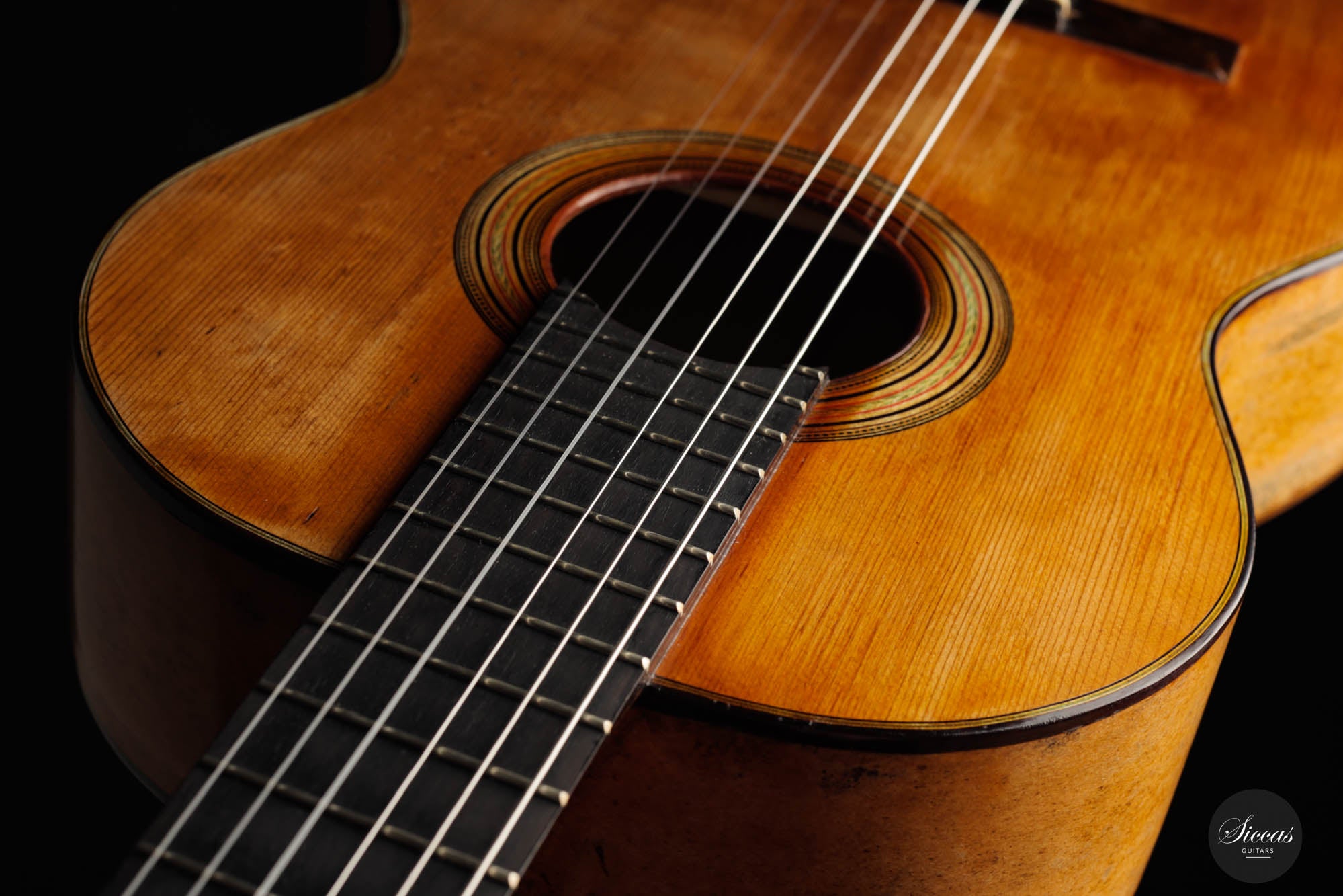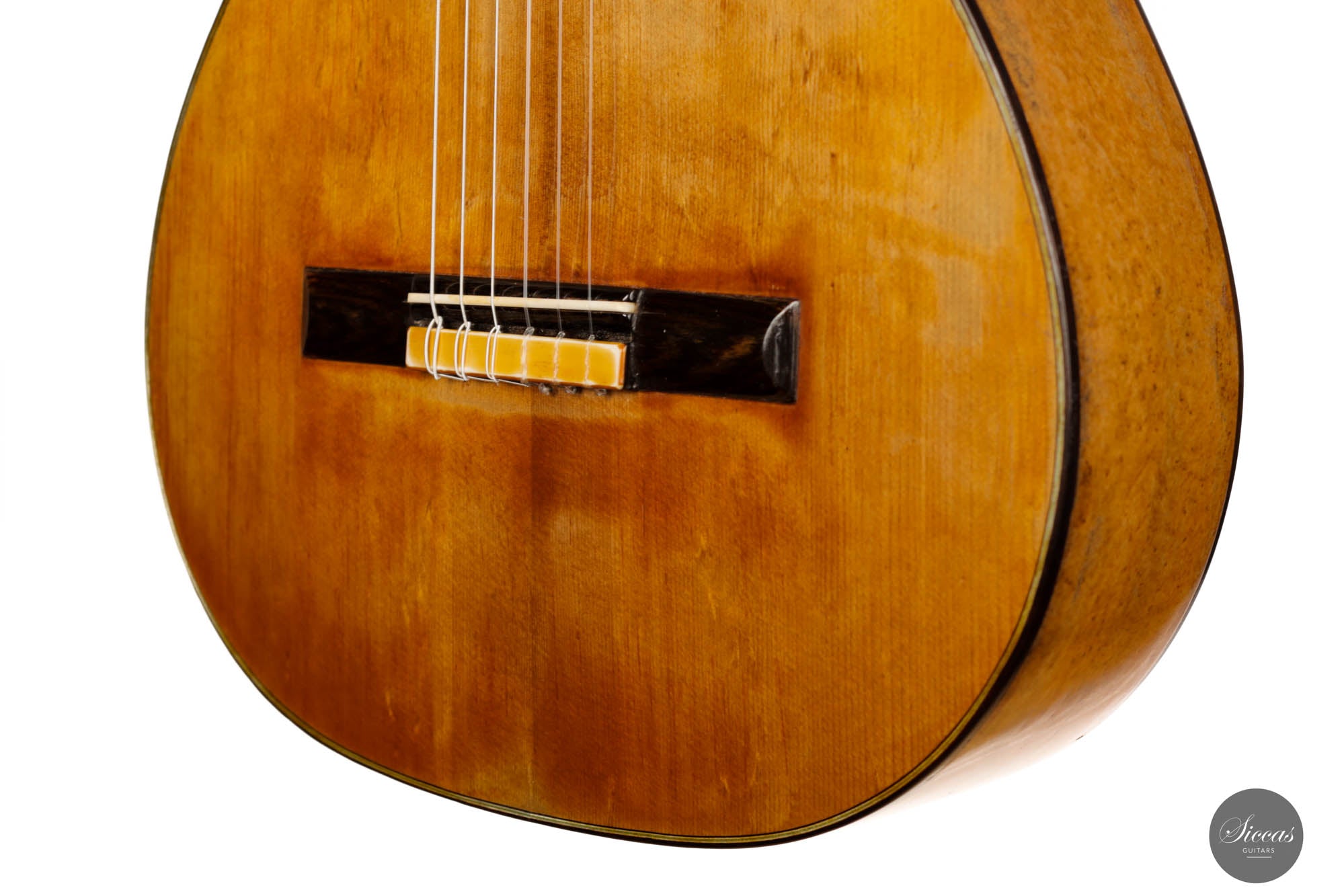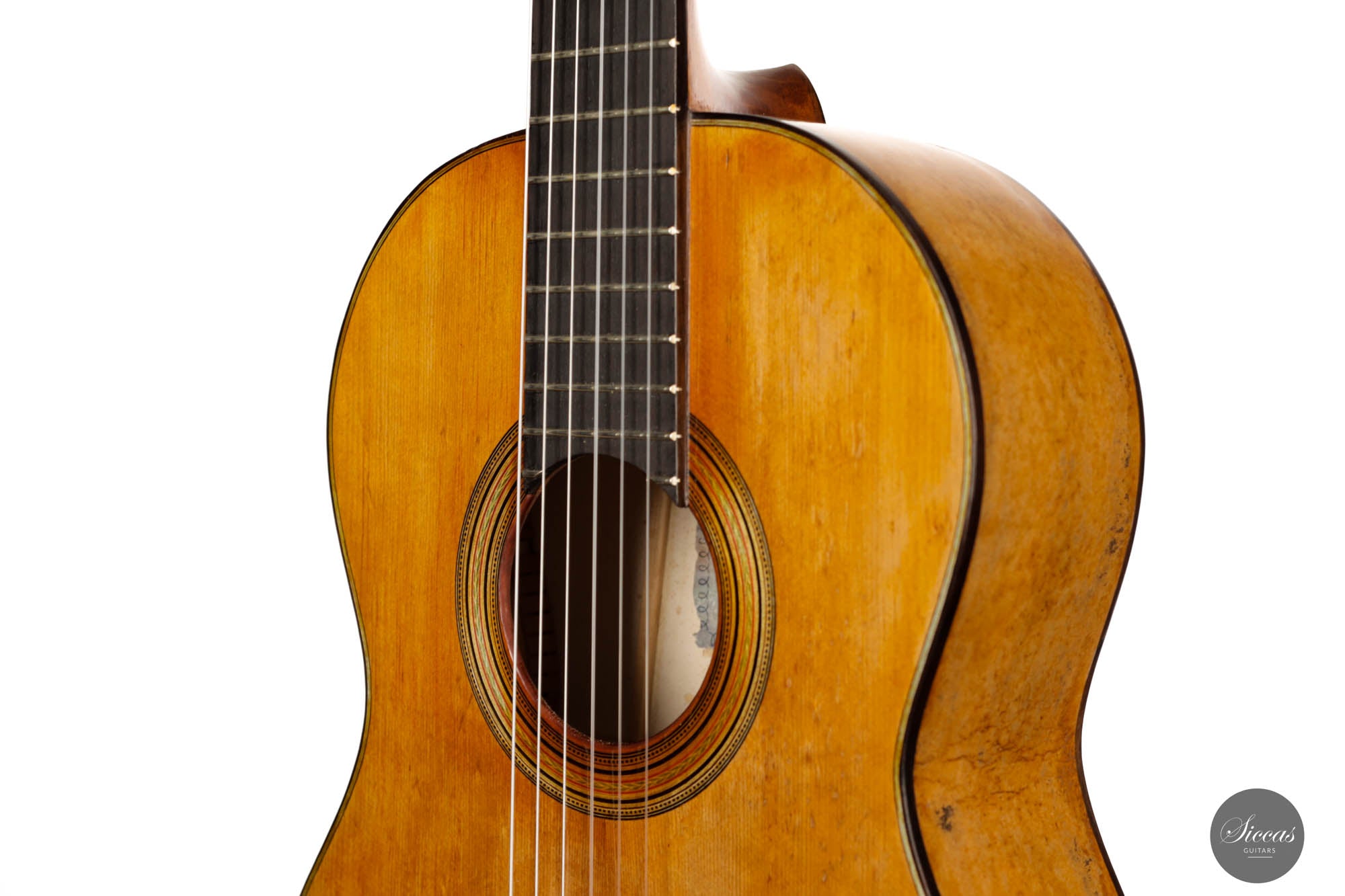 Fabio Zontini initiated the production of this replica back in 2005, meticulously shaping it to echo the design and feel of the original Torres FE14. Ideal for aficionados of delicate Spanish music like Tarrega, this guitar stands out as an intimate instrument offering an unrivaled acoustic experience. This Fabio Zontini "Antonio de Torres Papier Mache FE14" guitar is a tribute to musical history and a testament to Zontini's exceptional craftsmanship.