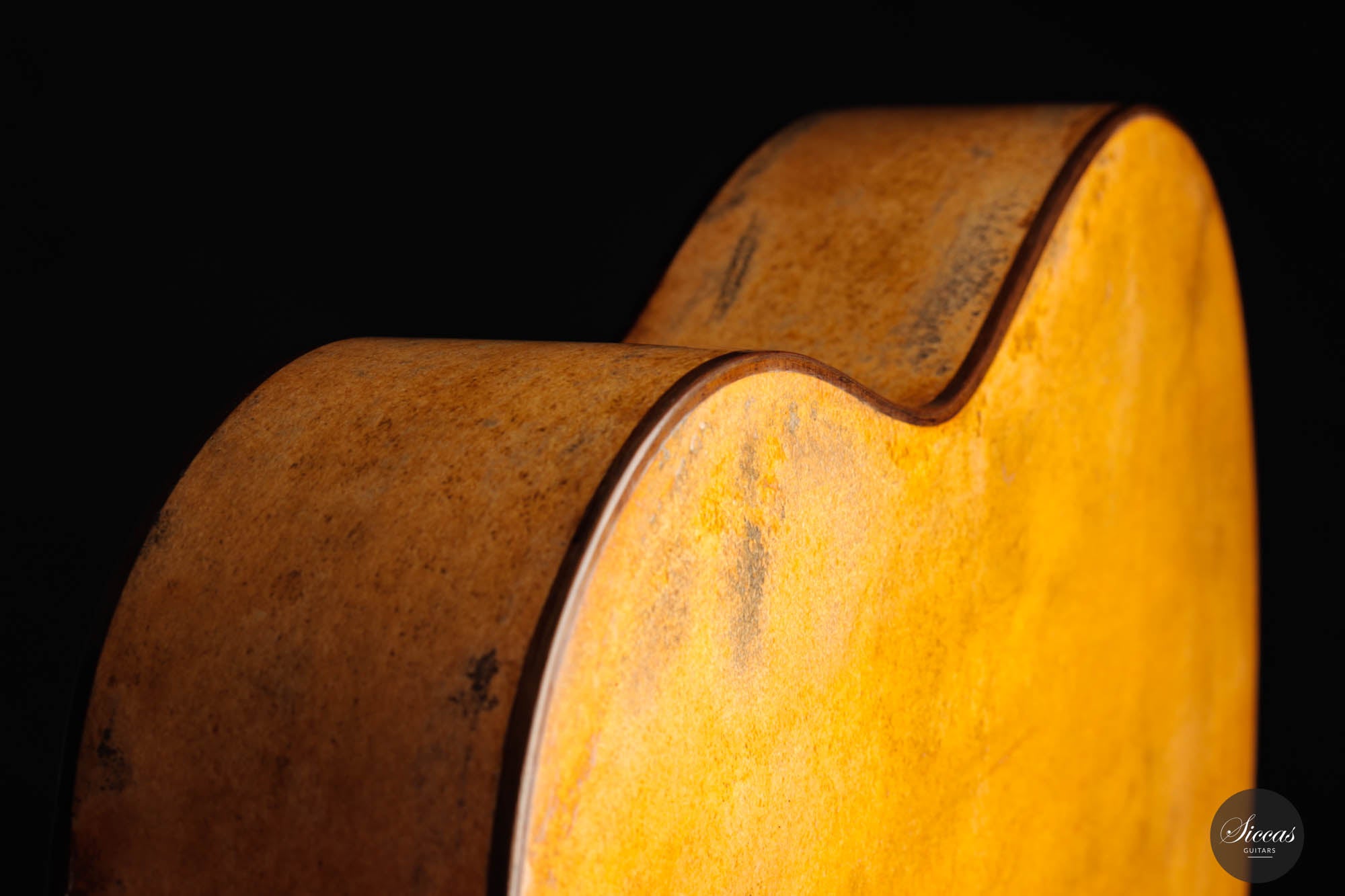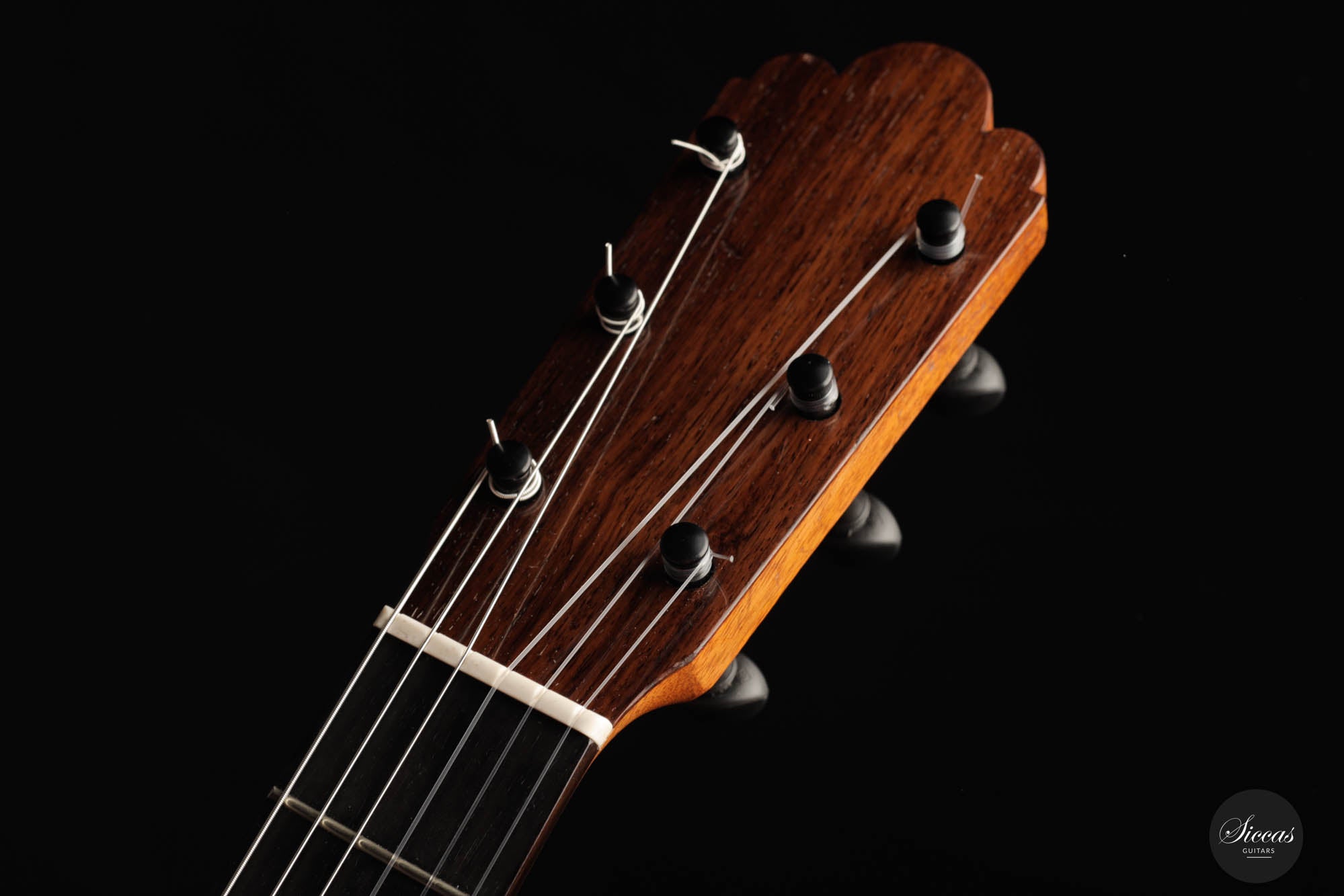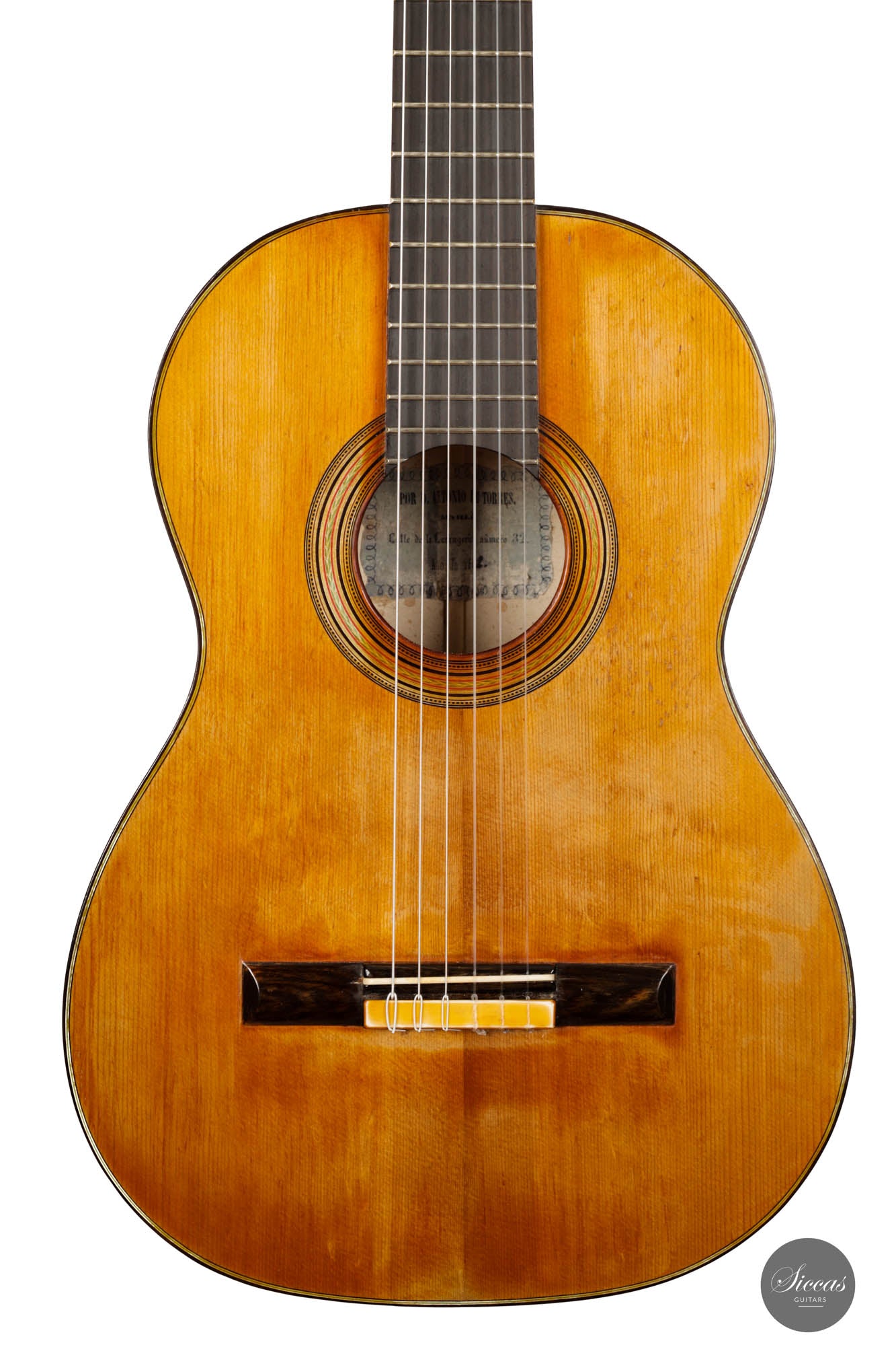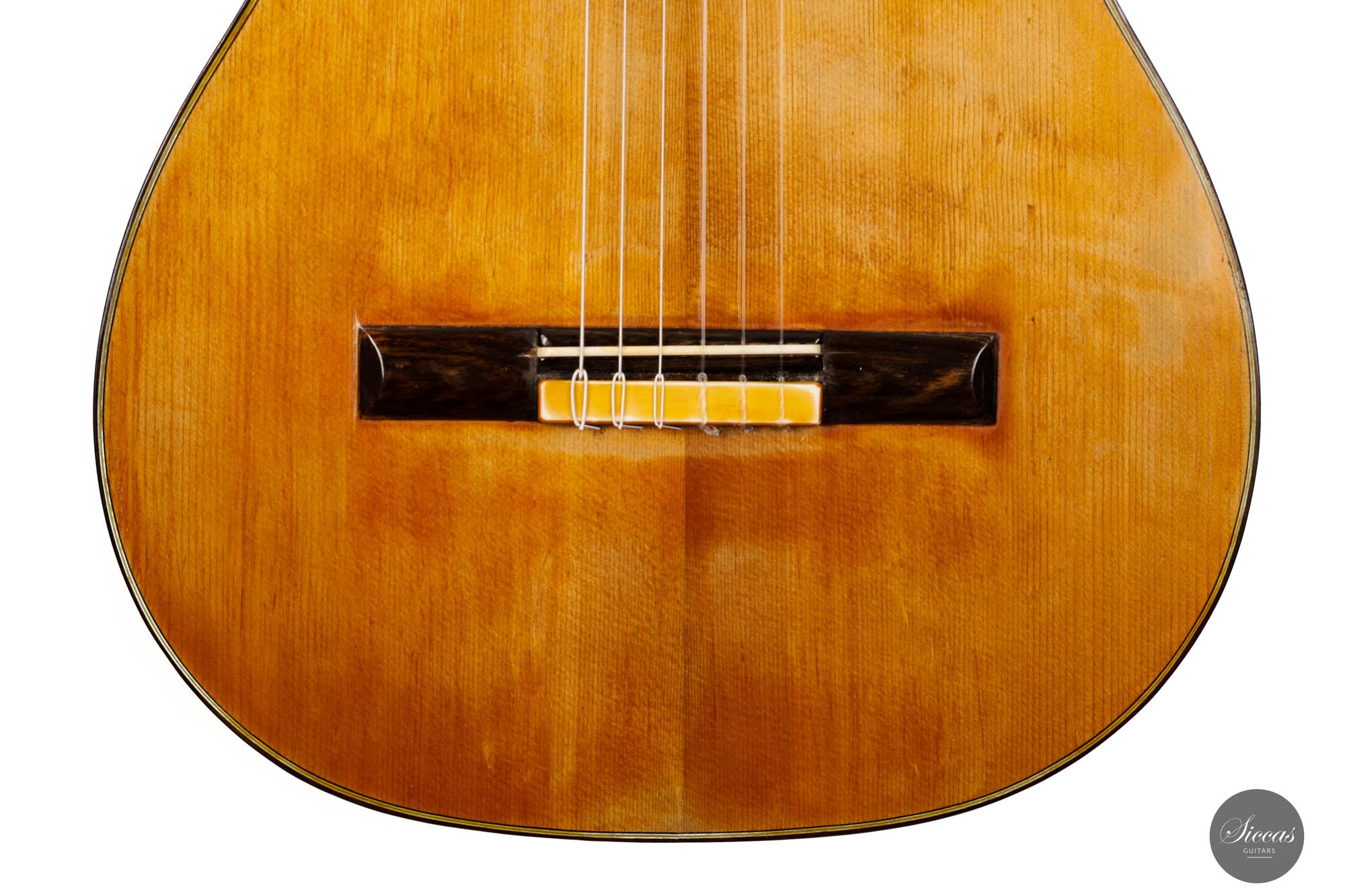 Fabio Zontini initiated the production of this replica back in 2005, meticulously shaping it to echo the design and feel of the original Torres FE14. Ideal for aficionados of delicate Spanish music like Tarrega, this guitar stands out as an intimate instrument offering an unrivaled acoustic experience. This Fabio Zontini "Antonio de Torres Papier Mache FE14" guitar is a tribute to musical history and a testament to Zontini's exceptional craftsmanship.