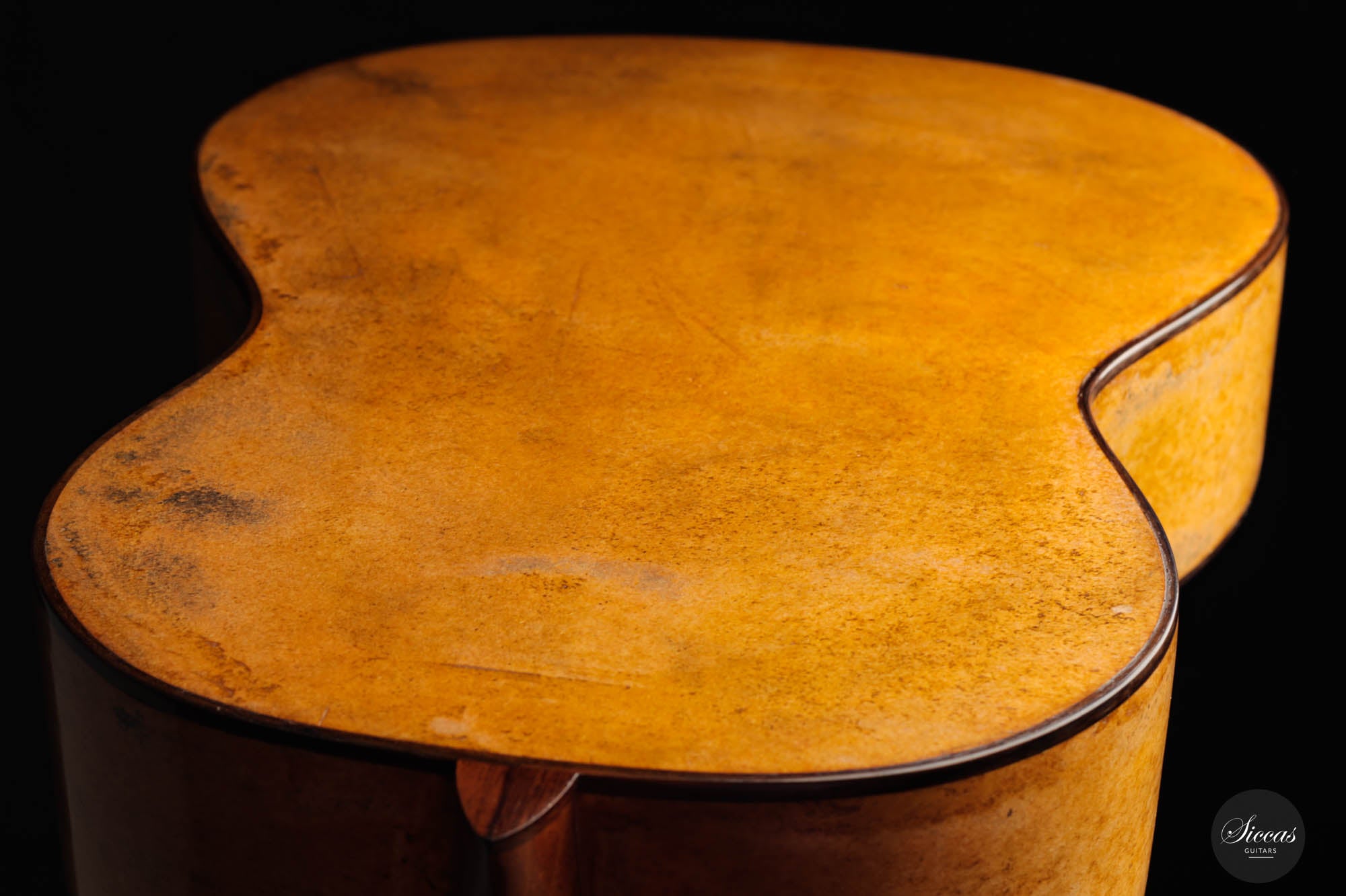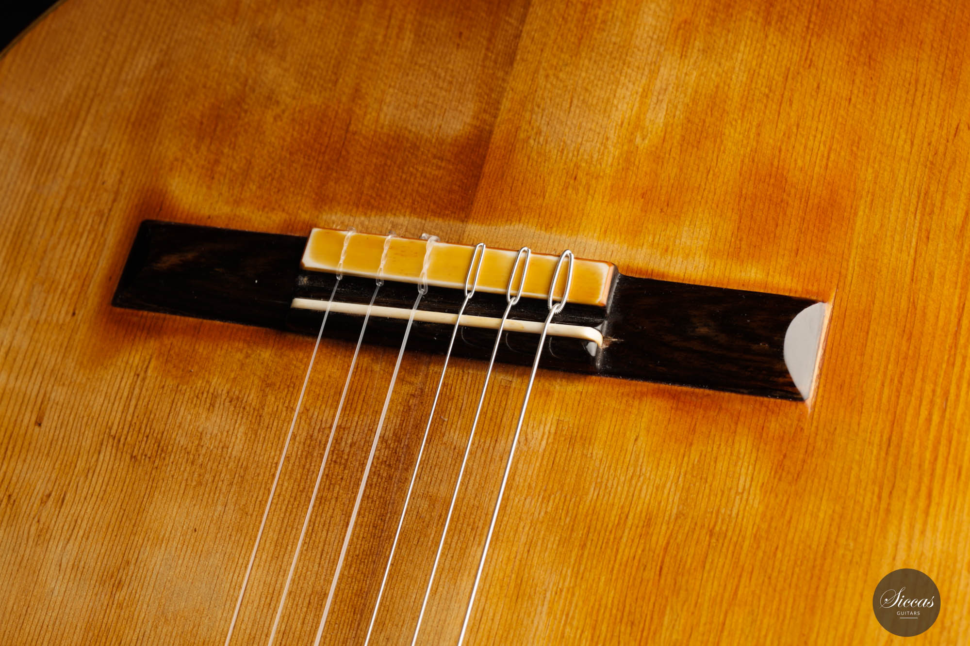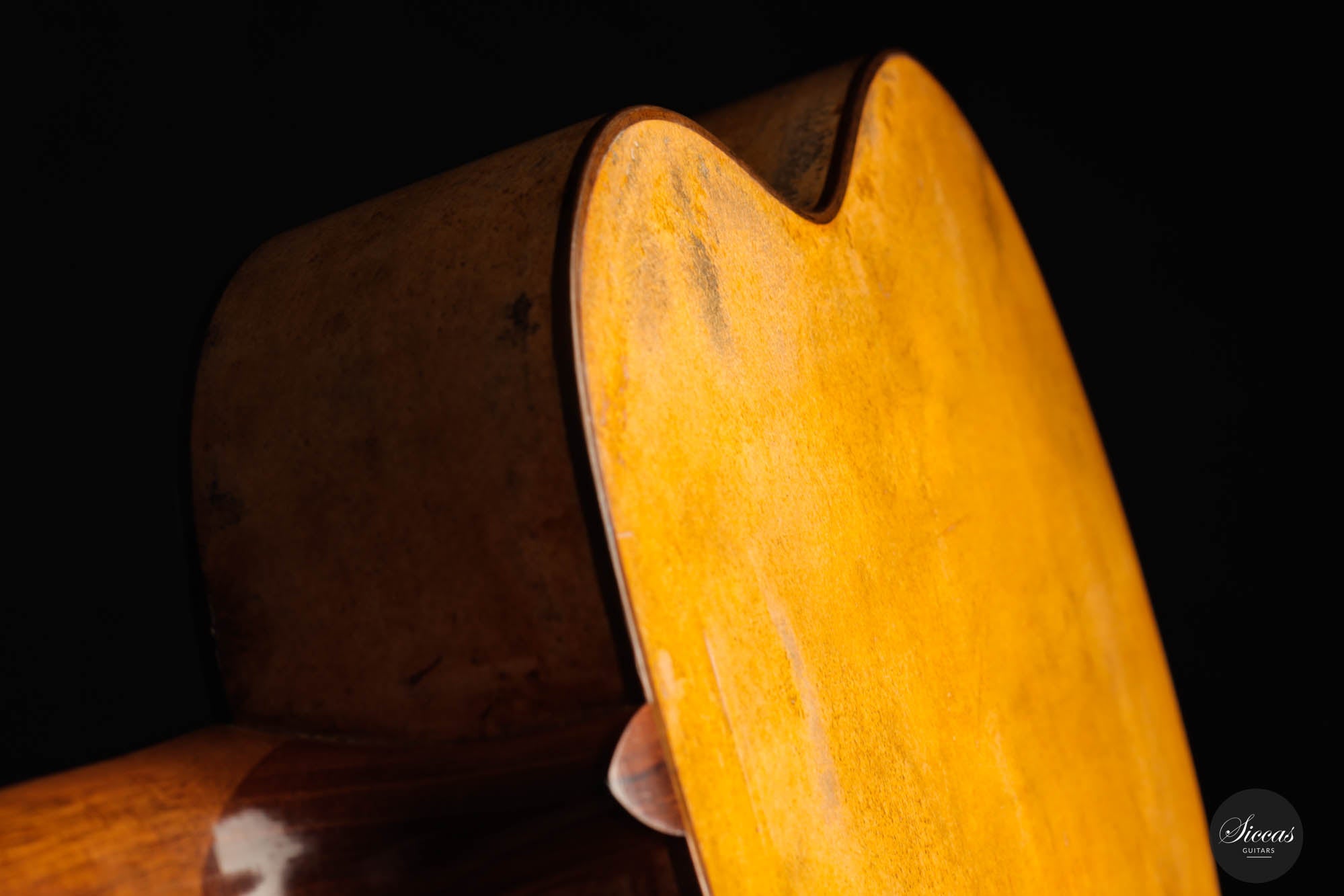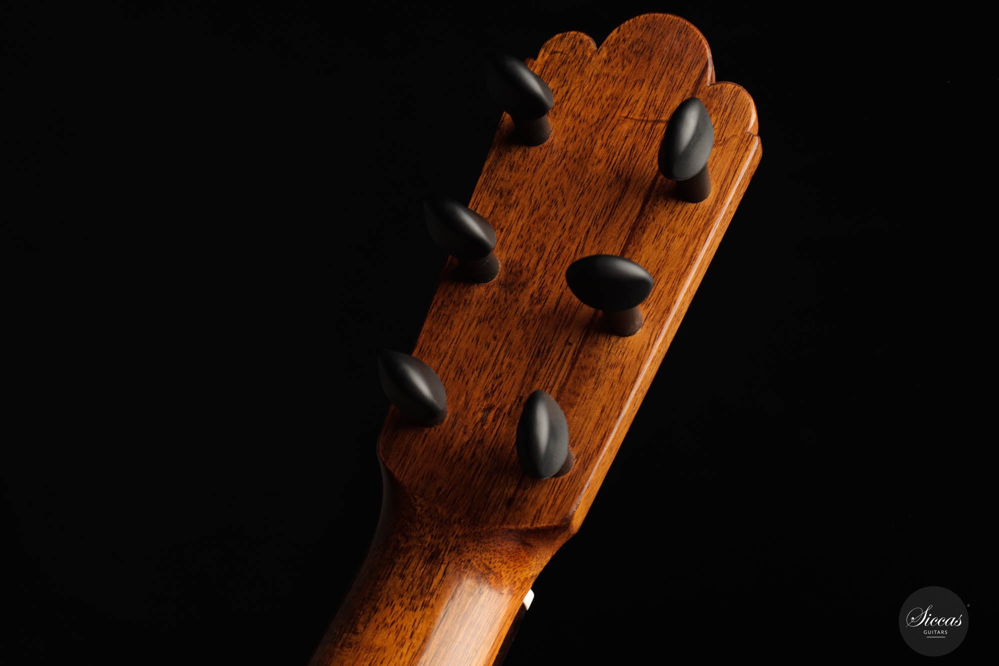 Fabio Zontini initiated the production of this replica back in 2005, meticulously shaping it to echo the design and feel of the original Torres FE14. Ideal for aficionados of delicate Spanish music like Tarrega, this guitar stands out as an intimate instrument offering an unrivaled acoustic experience. This Fabio Zontini "Antonio de Torres Papier Mache FE14" guitar is a tribute to musical history and a testament to Zontini's exceptional craftsmanship.