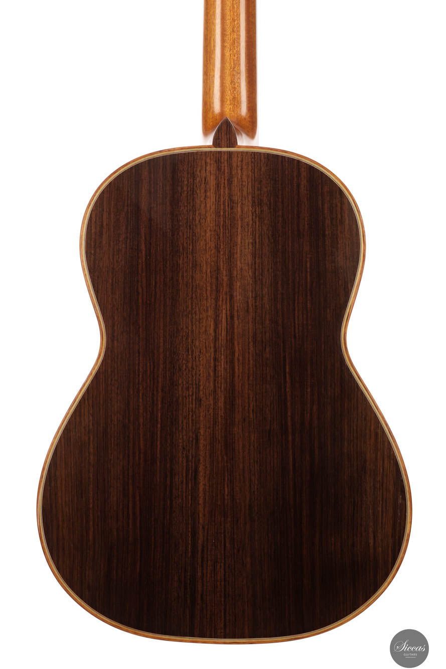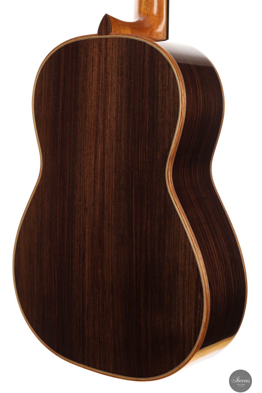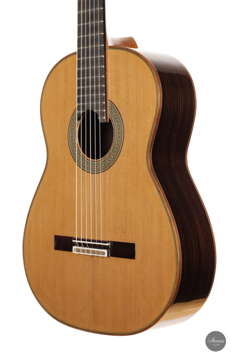 This guitar crafted by the renowned Felix Müller stands as a testament to his position as a leading figure in the world of double-top guitar making, a craft he refined under the tutelage of his father, Antonius Müller. Felix has incorporated the influences of his father’s designs into his own work, while also imprinting his strong personal style on each instrument. This particular guitar exemplifies superb playability, offering exceptional comfort for both the right and left hand, which is a hallmark of Felix’s attention to the ergonomic design of his guitars. The instrument’s phenomenal volume pairs beautifully with its long sustain and orchestral sympathetic resonances, enhancing its lyrical qualities. The sound produced is rich and room-filling, characterized by a warm, dark timbre and excellent separation of voices, ensuring a balanced output across all frequencies.