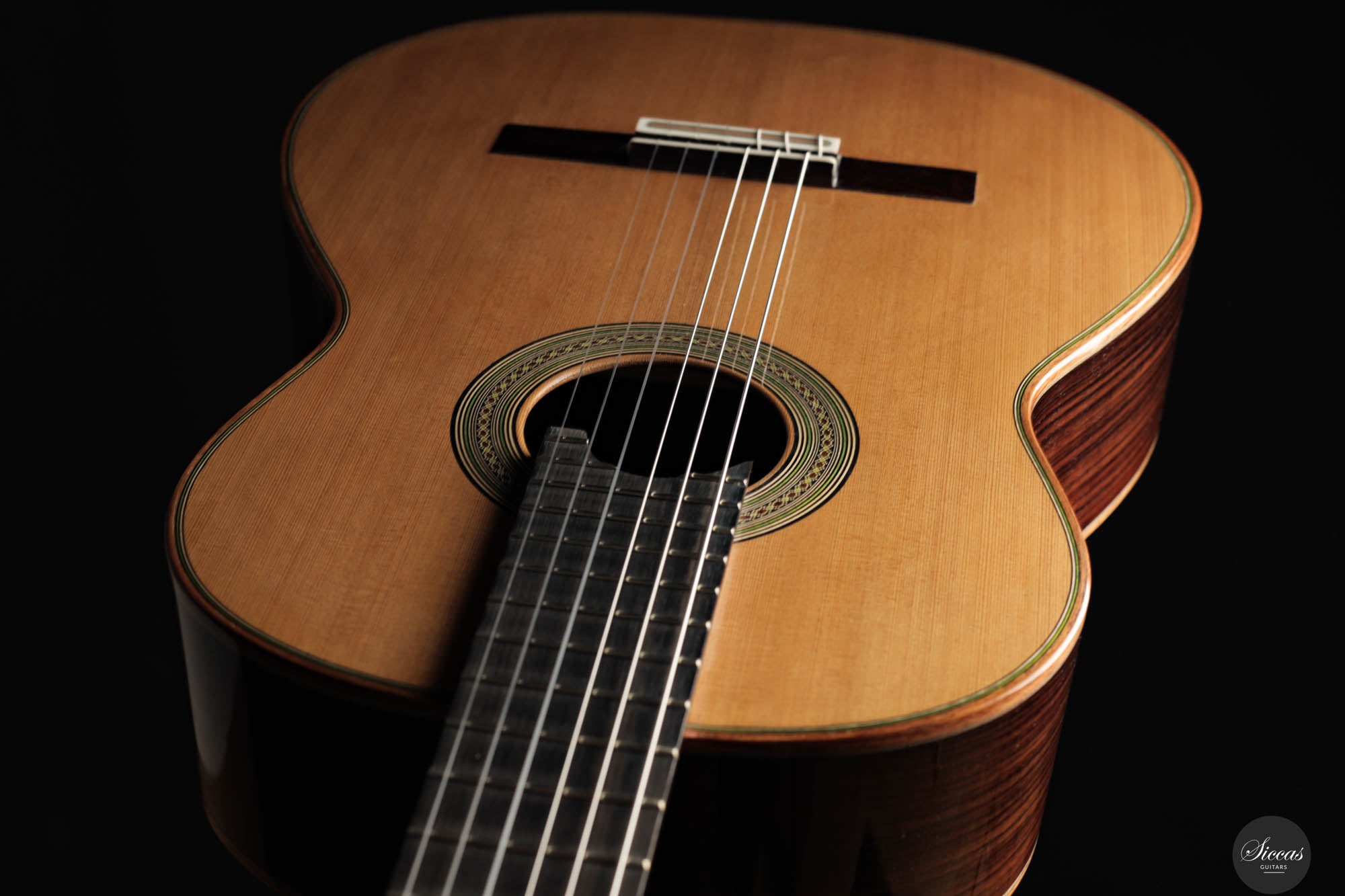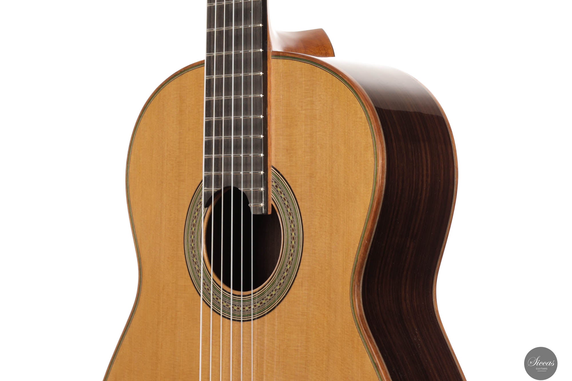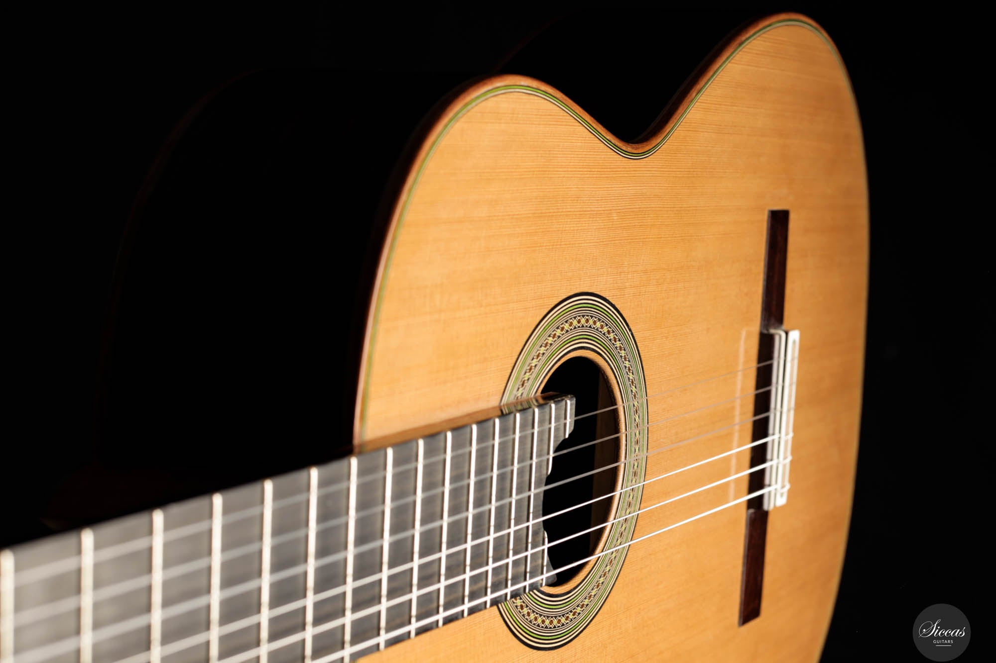This guitar crafted by the renowned Felix Müller stands as a testament to his position as a leading figure in the world of double-top guitar making, a craft he refined under the tutelage of his father, Antonius Müller. Felix has incorporated the influences of his father’s designs into his own work, while also imprinting his strong personal style on each instrument. This particular guitar exemplifies superb playability, offering exceptional comfort for both the right and left hand, which is a hallmark of Felix’s attention to the ergonomic design of his guitars. The instrument’s phenomenal volume pairs beautifully with its long sustain and orchestral sympathetic resonances, enhancing its lyrical qualities. The sound produced is rich and room-filling, characterized by a warm, dark timbre and excellent separation of voices, ensuring a balanced output across all frequencies.
