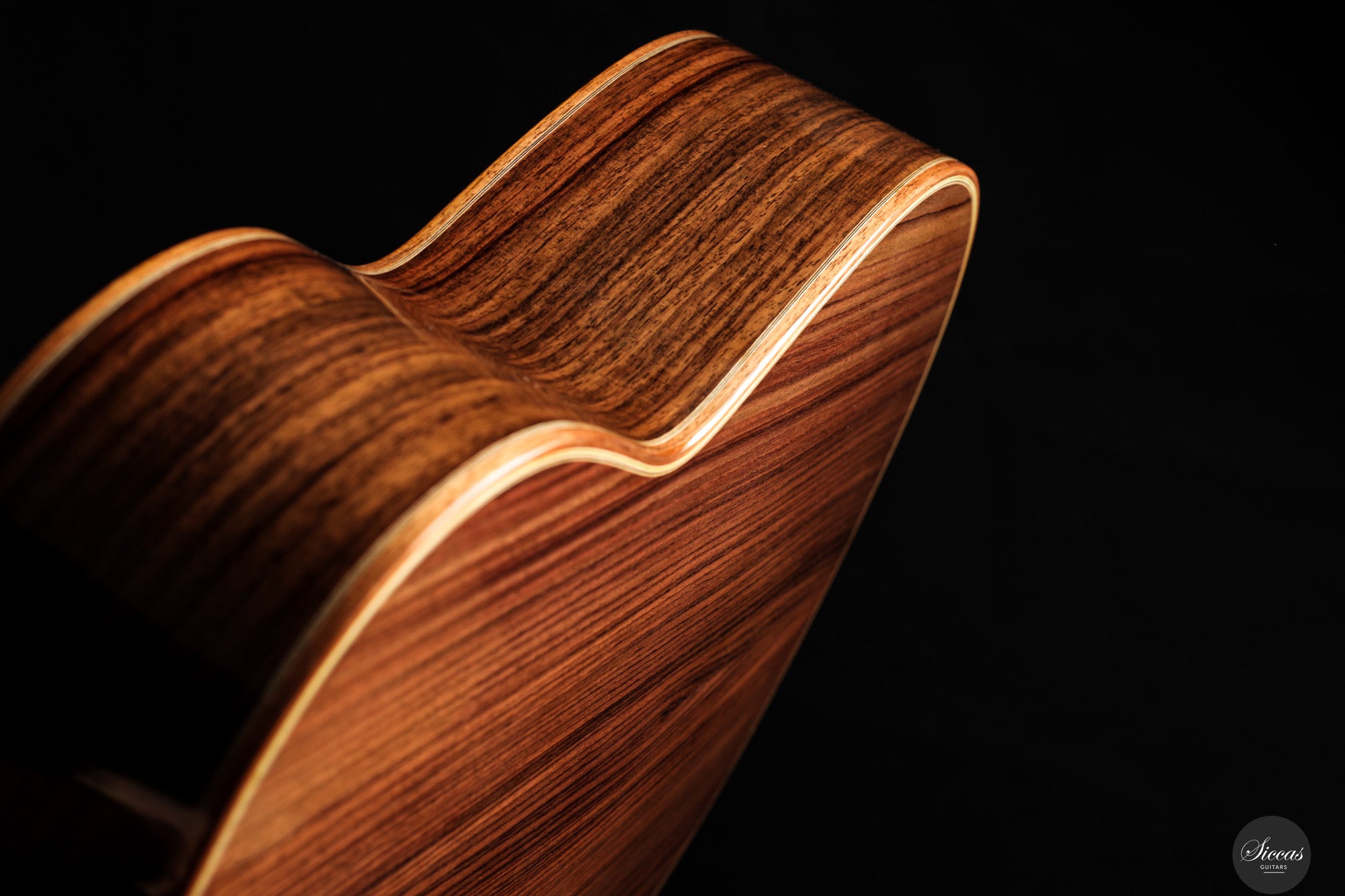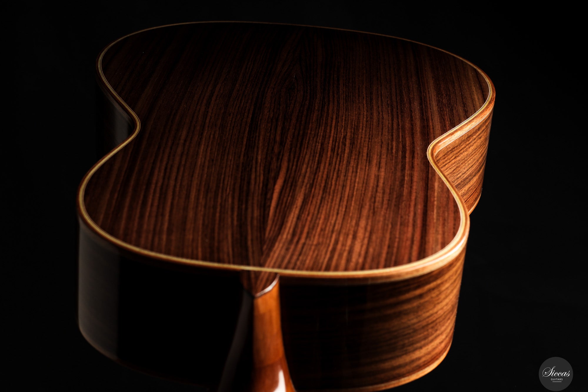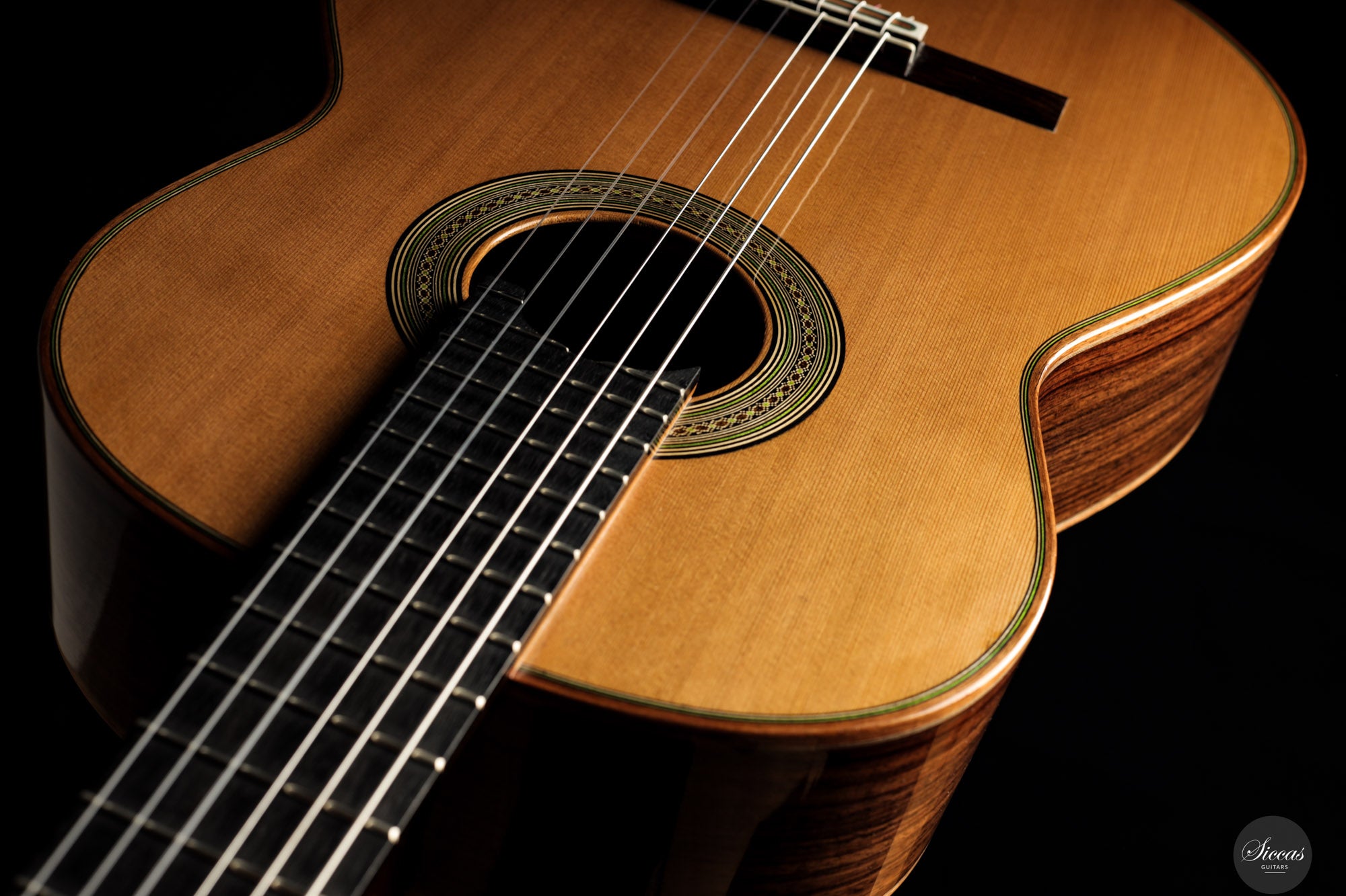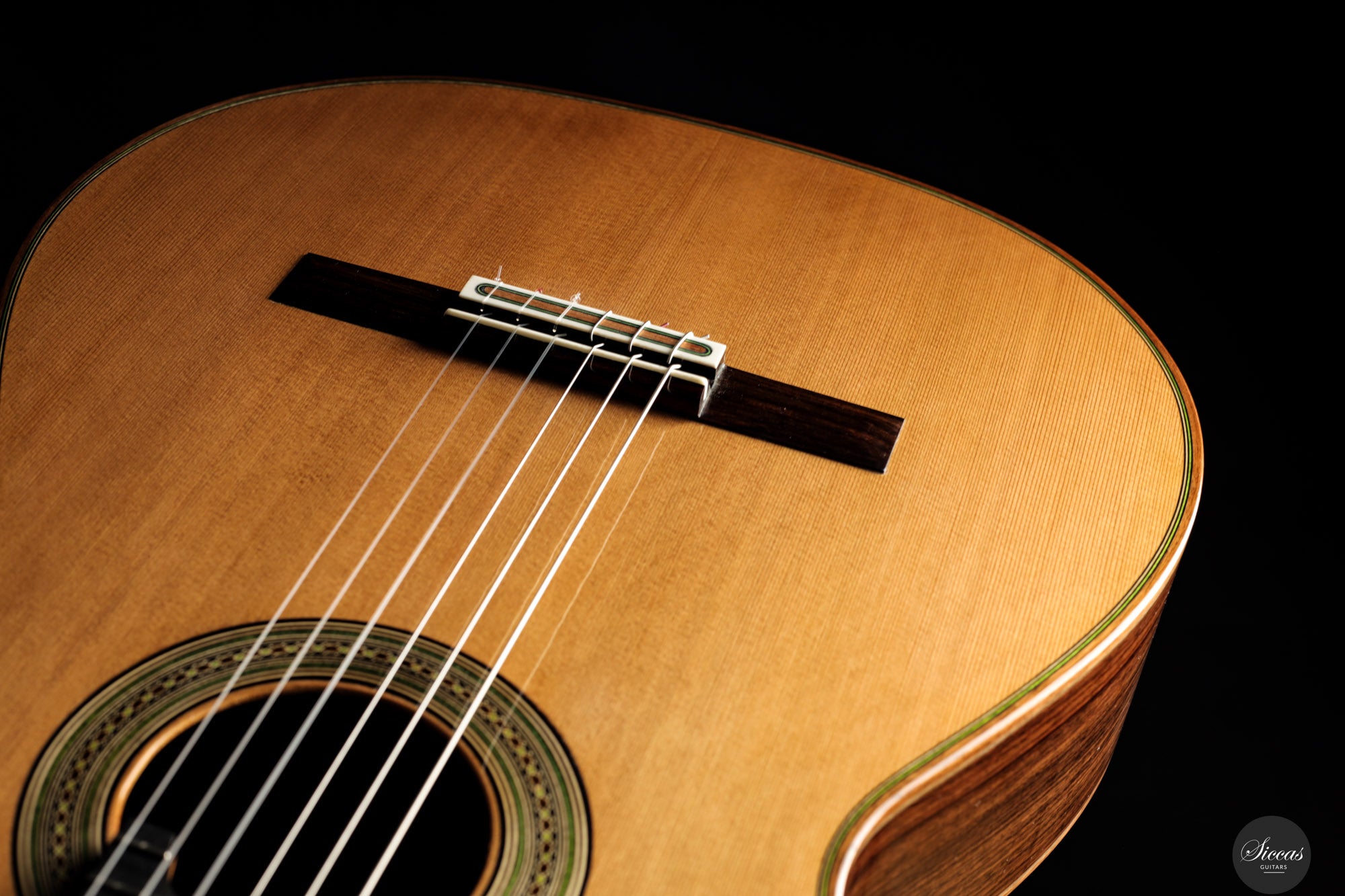 In sound the guitar displays a warm and dark colour with a long and even sustain. The instrument offers a soft and deeply resonant character full of overtones and distinguished by a three dimensional quality. The articulation is fast and controlled and the sympathetic resonances give the tone a natural orchestral breadth. The balance across registers is exemplary. Each voice carries its own clarity without losing the overall cohesion of the musical line. The result is a concert guitar capable of filling a room with ease while maintaining a refined and expressive tone.
