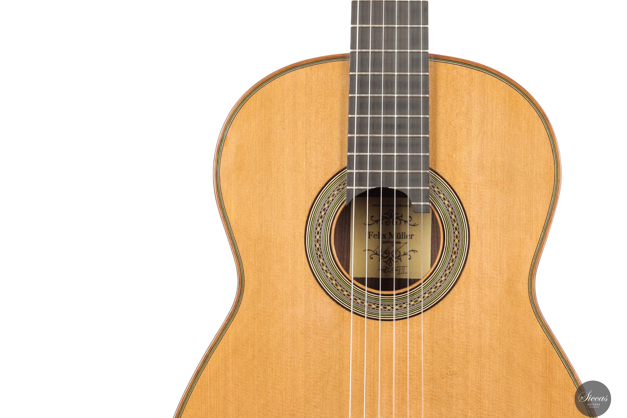 Felix Müller is part of a remarkable lineage of German guitar makers. Trained by his father Antonius Müller he refined the principles of the double top design and gradually developed a strong personal voice within this tradition. His instruments are known for their projection their comfort and their ability to combine structural efficiency with an expressive and versatile tone. Many concert players value the way his guitars offer immediate feedback and a sense of natural ease in both hands.