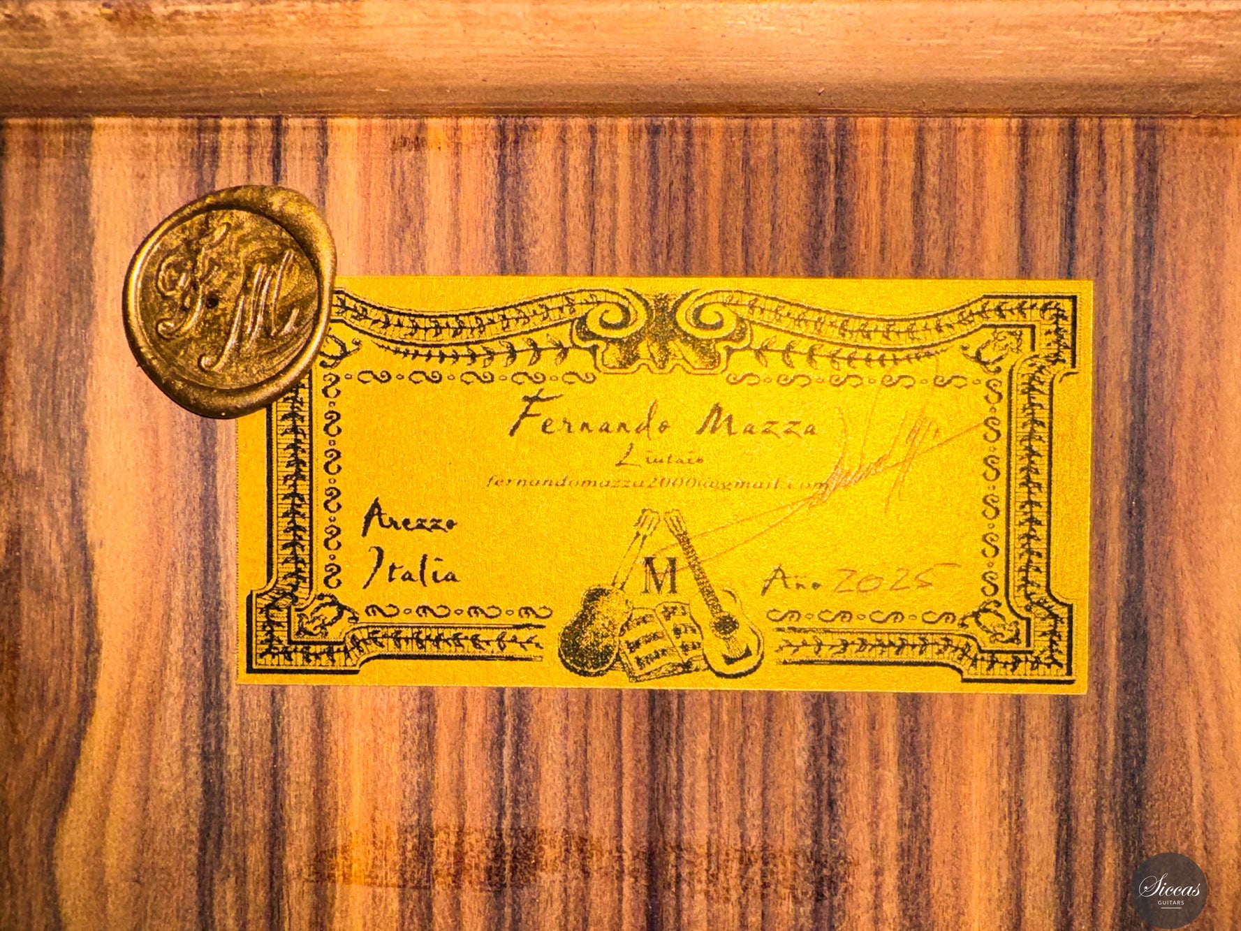 Fernando Mazza is an accomplished luthier originally from Argentina who transitioned from a successful career as a guitarist to become a full-time guitar maker. He established his workshop in Arezzo, Italy, where he produces instruments known for their powerful projection, structural precision, and elegant aesthetics. His guitars often feature a signature rosette inspired by the arches of the Palazzo Ducale in Venice. Working within the Australian lattice tradition, Fernando Mazza crafts guitars that balance modern construction techniques with a rich, expressive tonal character. Alongside his lattice-top instruments, he also offers Nomex double top guitars, extending the possibilities of responsiveness and projection.