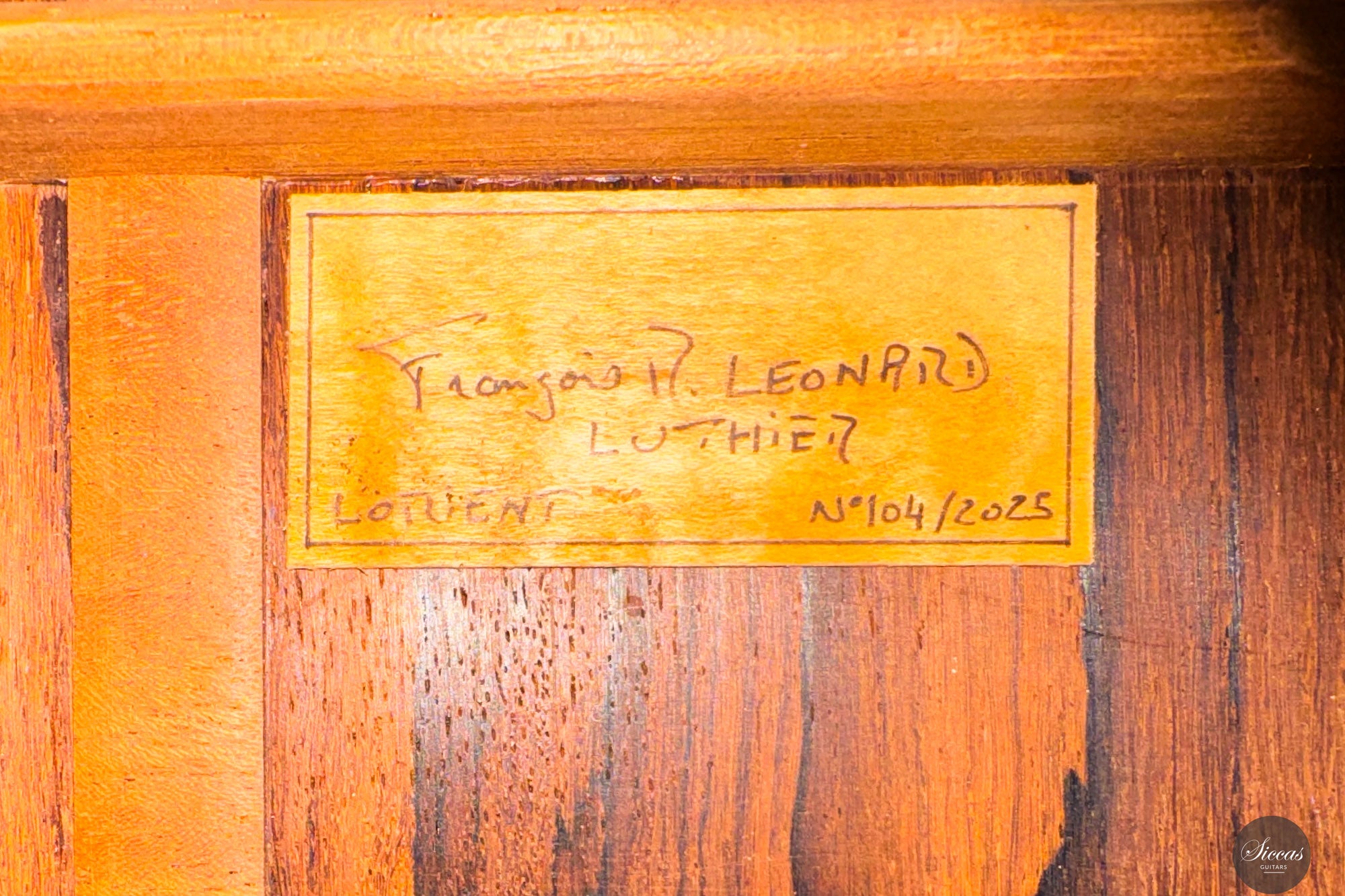François Leonard baut seit fast zwanzig Jahren klassische Gitarren in seiner Werkstatt in Lorient, Frankreich. Seine Ausbildung wurde durch die Zusammenarbeit mit verschiedenen englischen Gitarrenbauern und durch seine Tätigkeit in der Lakewood-Werkstatt in Deutschland geprägt. Besondere Impulse erhielt er durch die gelegentliche Unterstützung von Dominique Field, wodurch sich eine enge Verbindung zur französischen Gitarrenbautradition entwickelte. Leonards Instrumente zeichnen sich durch ihre klangliche Klarheit, Wärme und Präzision aus und stehen in der Tradition französischer Meister wie Daniel Friederich und Dominique Field.