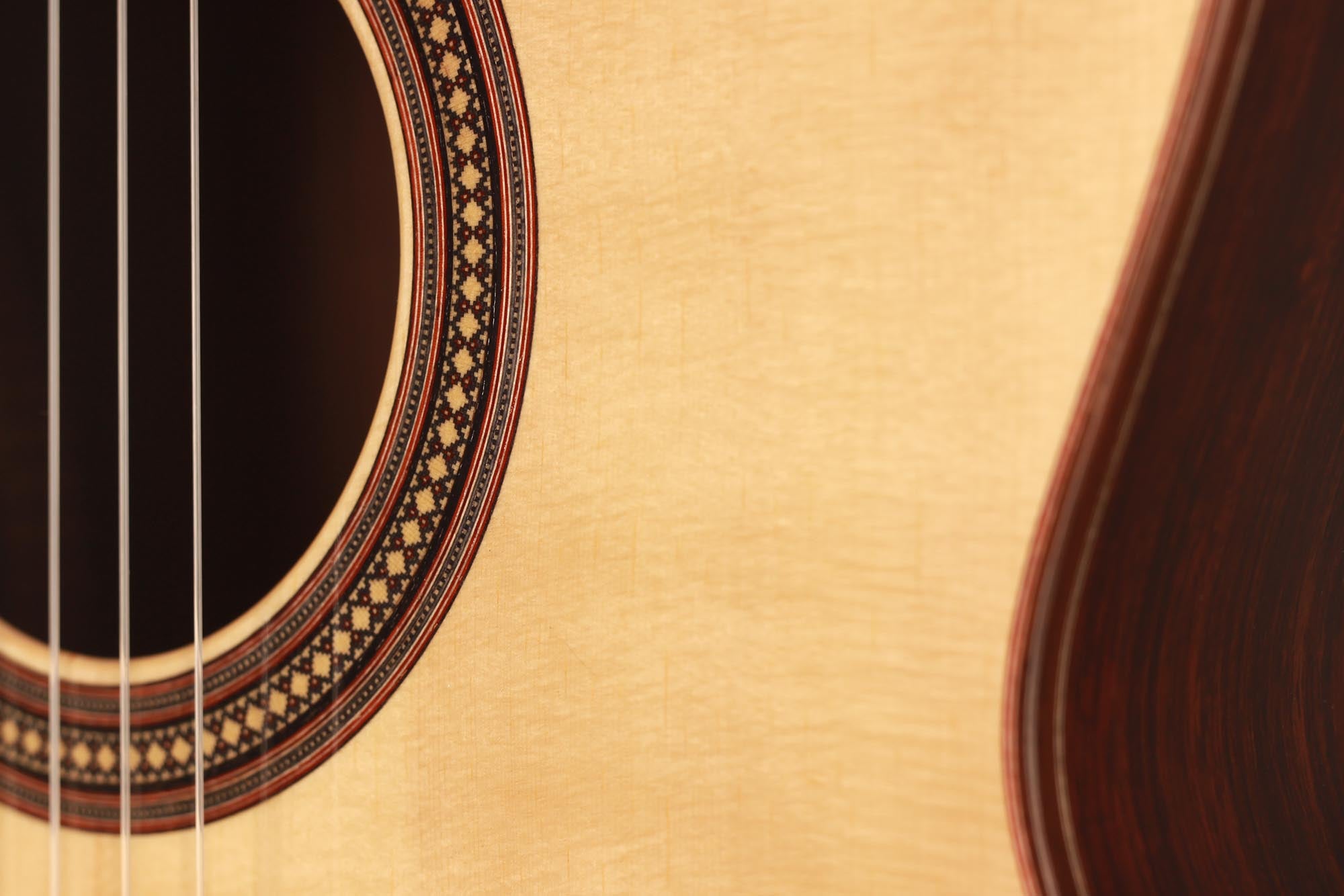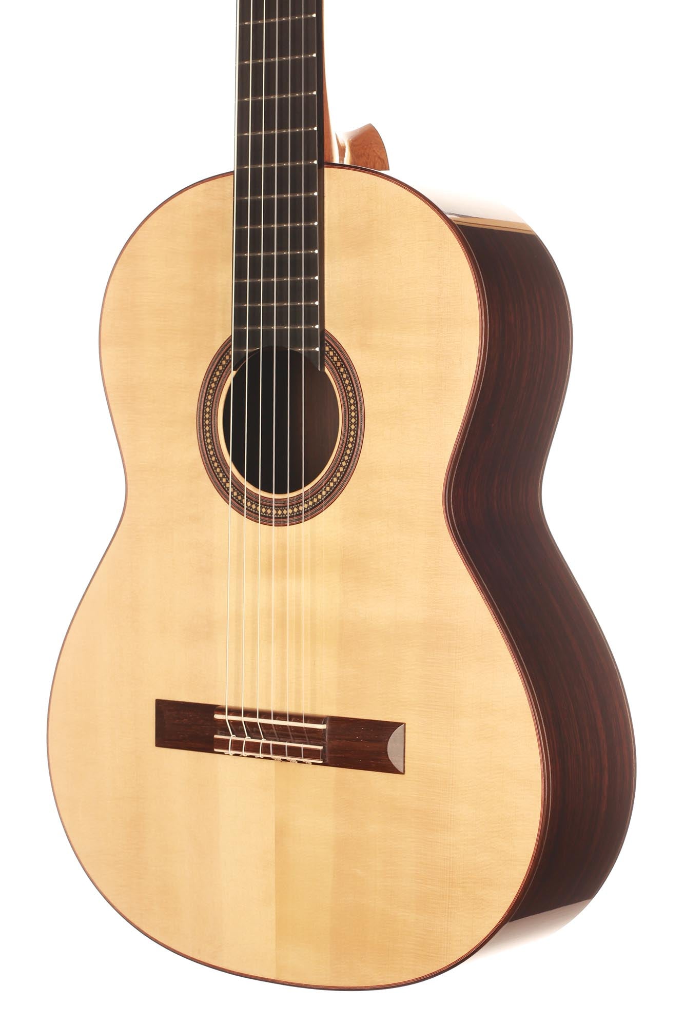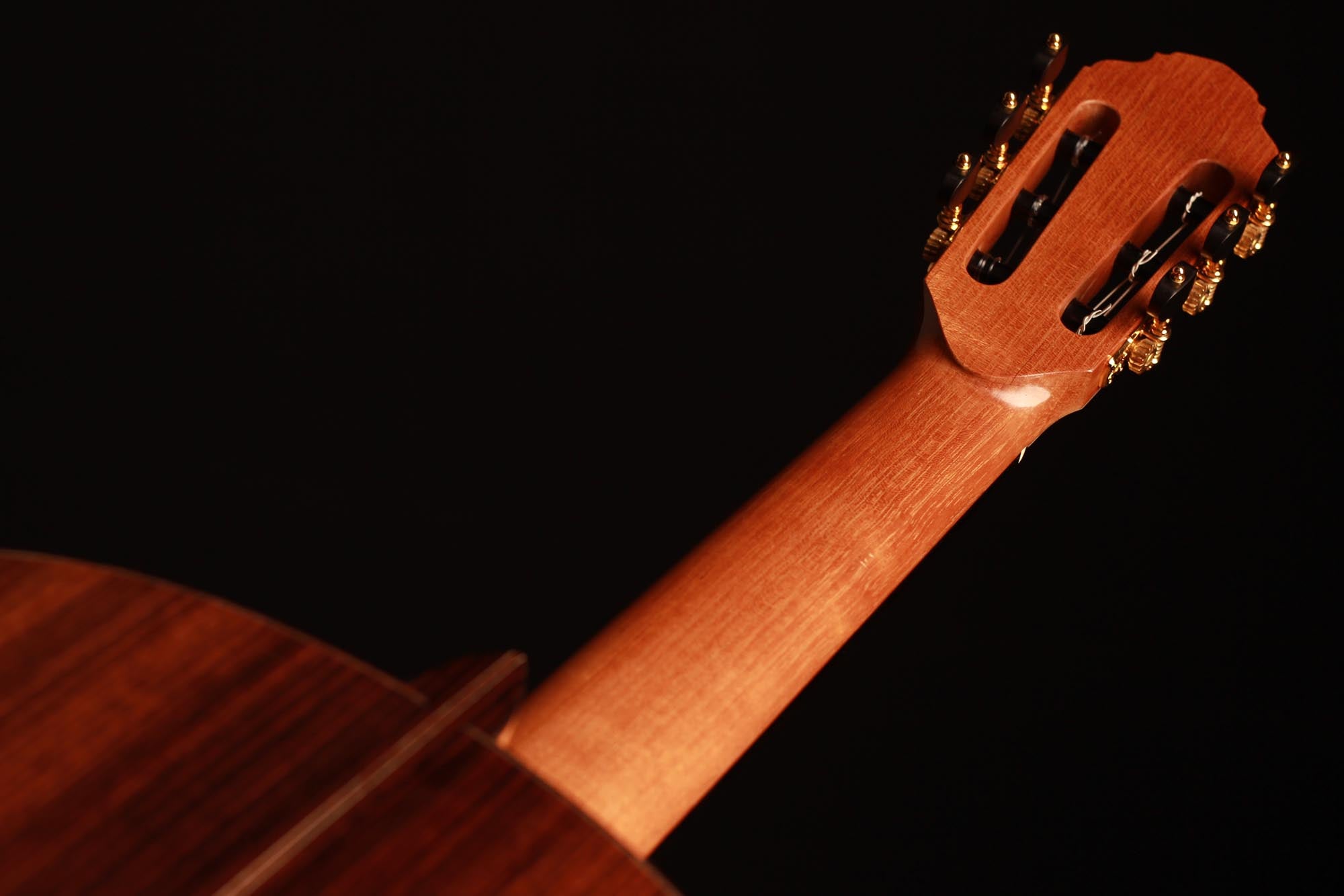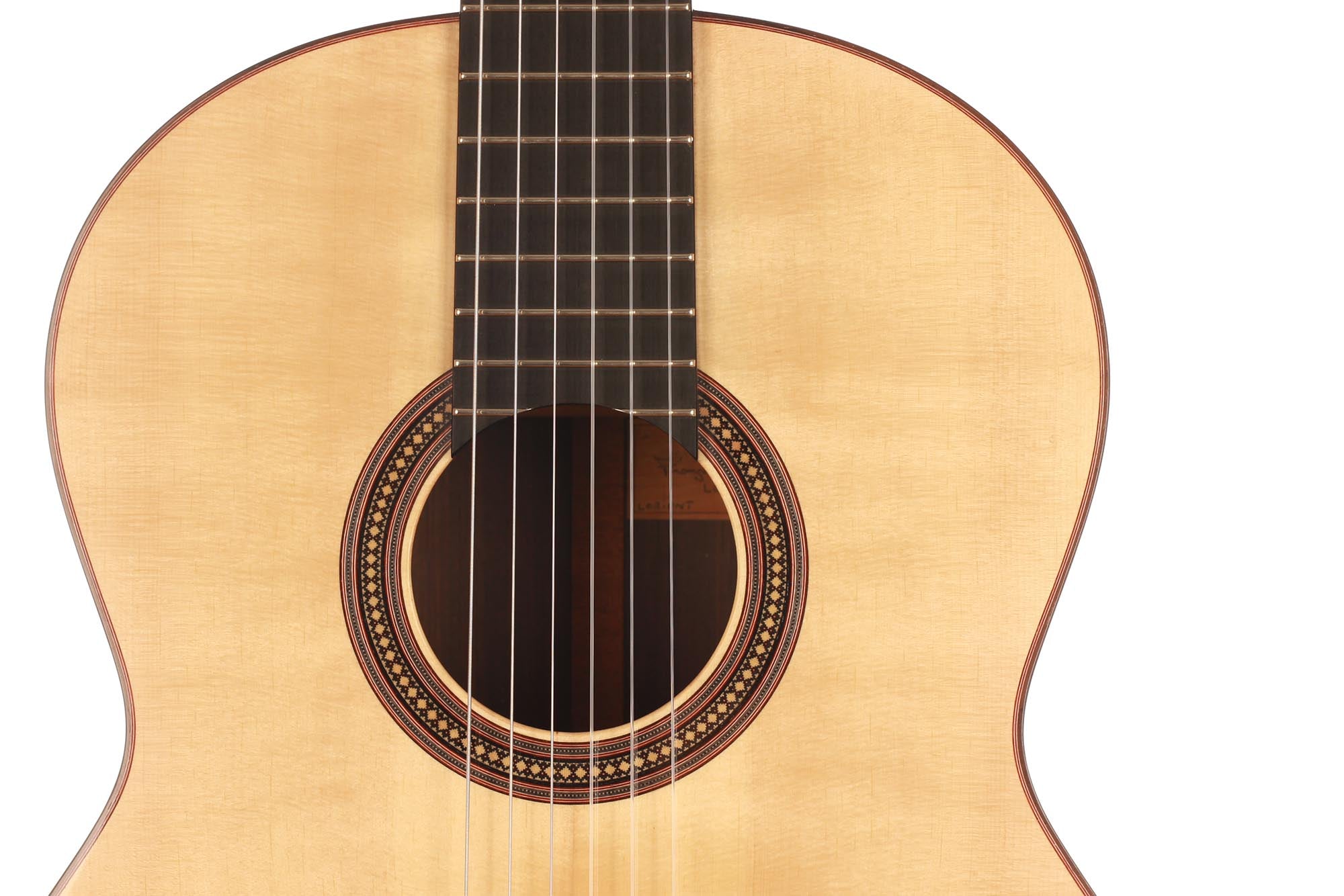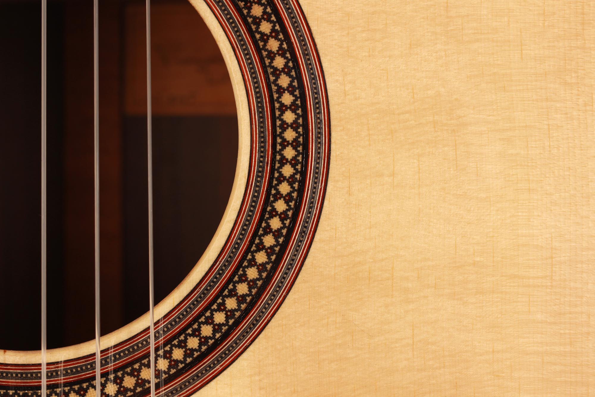 This new guitar was brought personally by Francois Leonard to our shop. It is a refined guitar with an impressively quick response as well as bold volume and a clear rich timbre. This guitar is very comfortable to play for both left and right hand. Such a dynamic instrument can be a real source of inspiration for any guitarist.